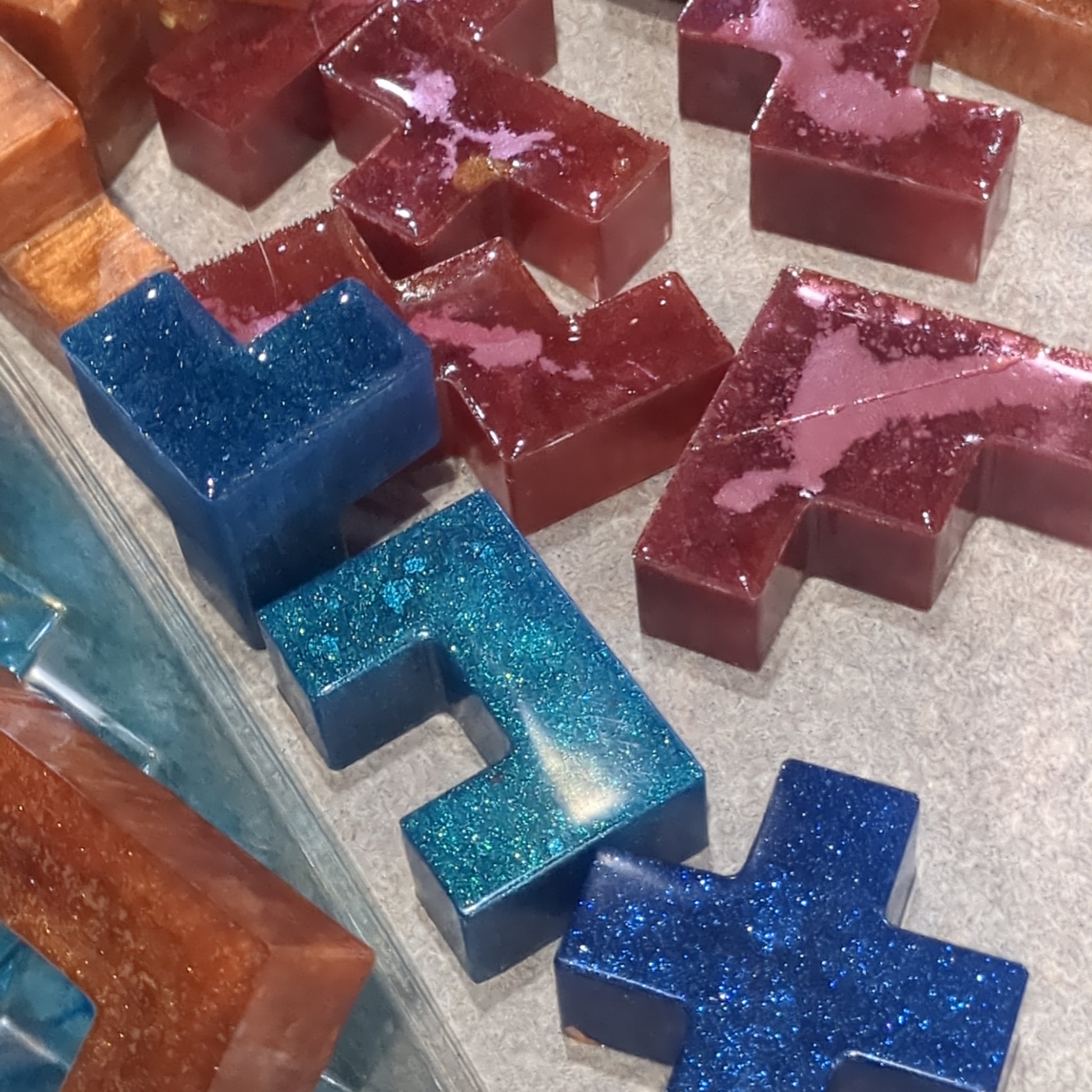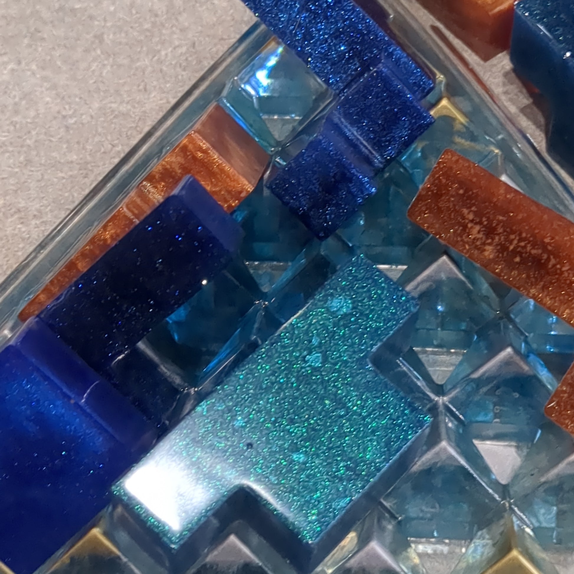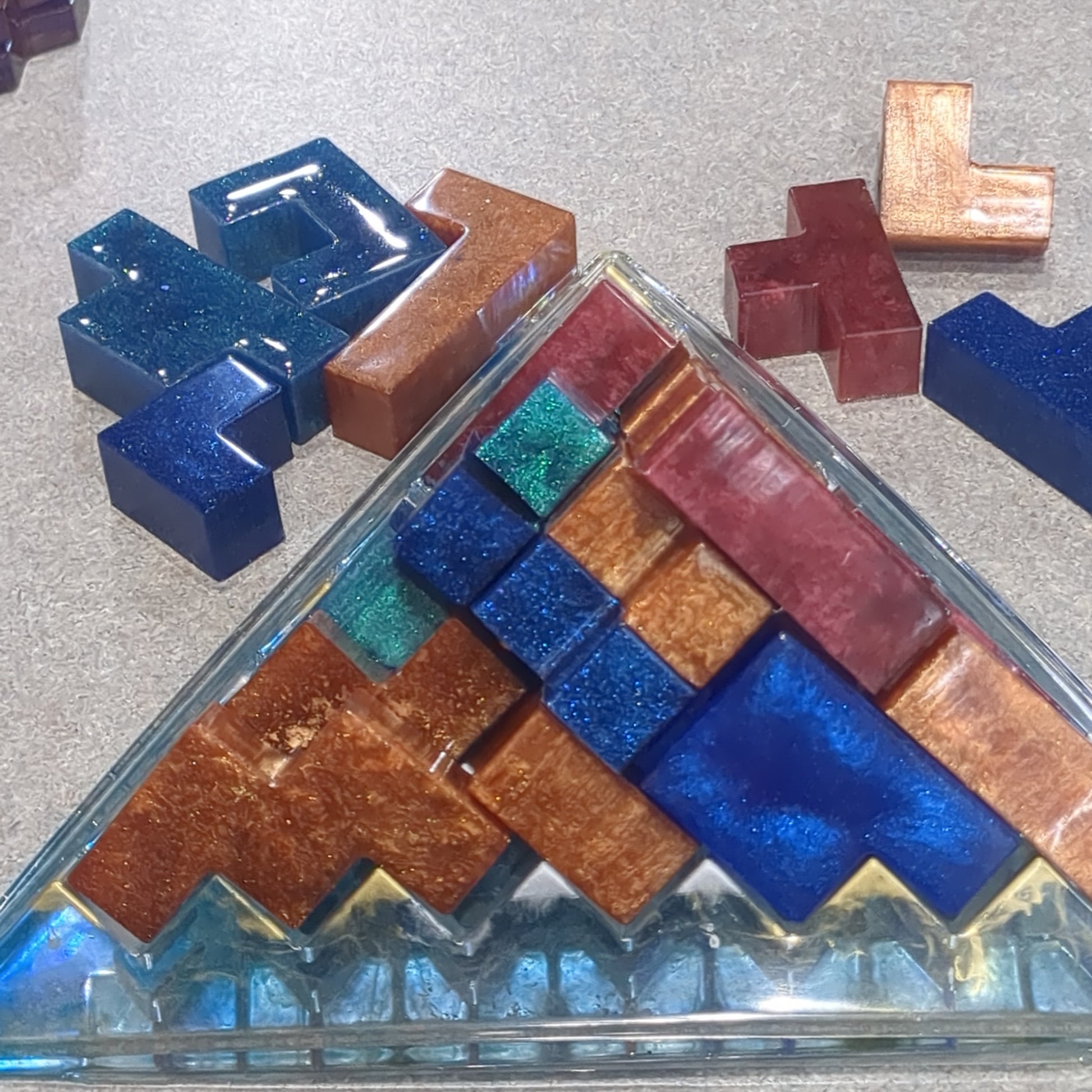 If out of stock we can make a special order, must give me 10 days to make due to resin needing to cure. This is a handcrafted game made out of resin. This game has a base. Since they are handmade there may be variations to colors and spots of other color, mixed in which makes it more beautiful. The goal of the game is to build a pyramid. There’s no other rules. There’s no right or wrong. There’s extra pieces so you can find the fit that works for you.