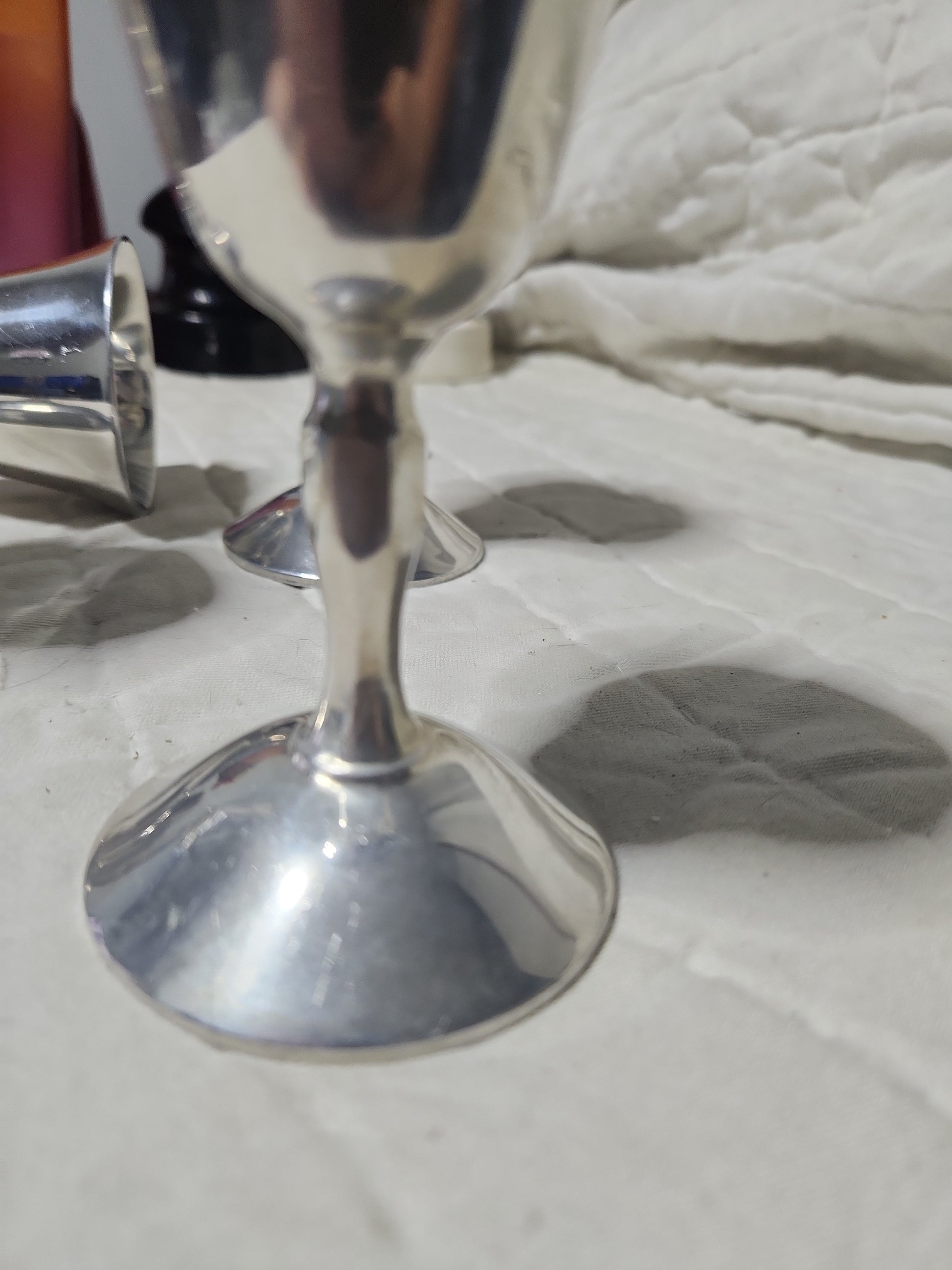 These beautiful silver cups are in vintage condition. There are a few areas of discoloration, scratches and a few deeper scratches. Stamped with Raimond Italy on the bottom. Please see photos as they are also part of my description.