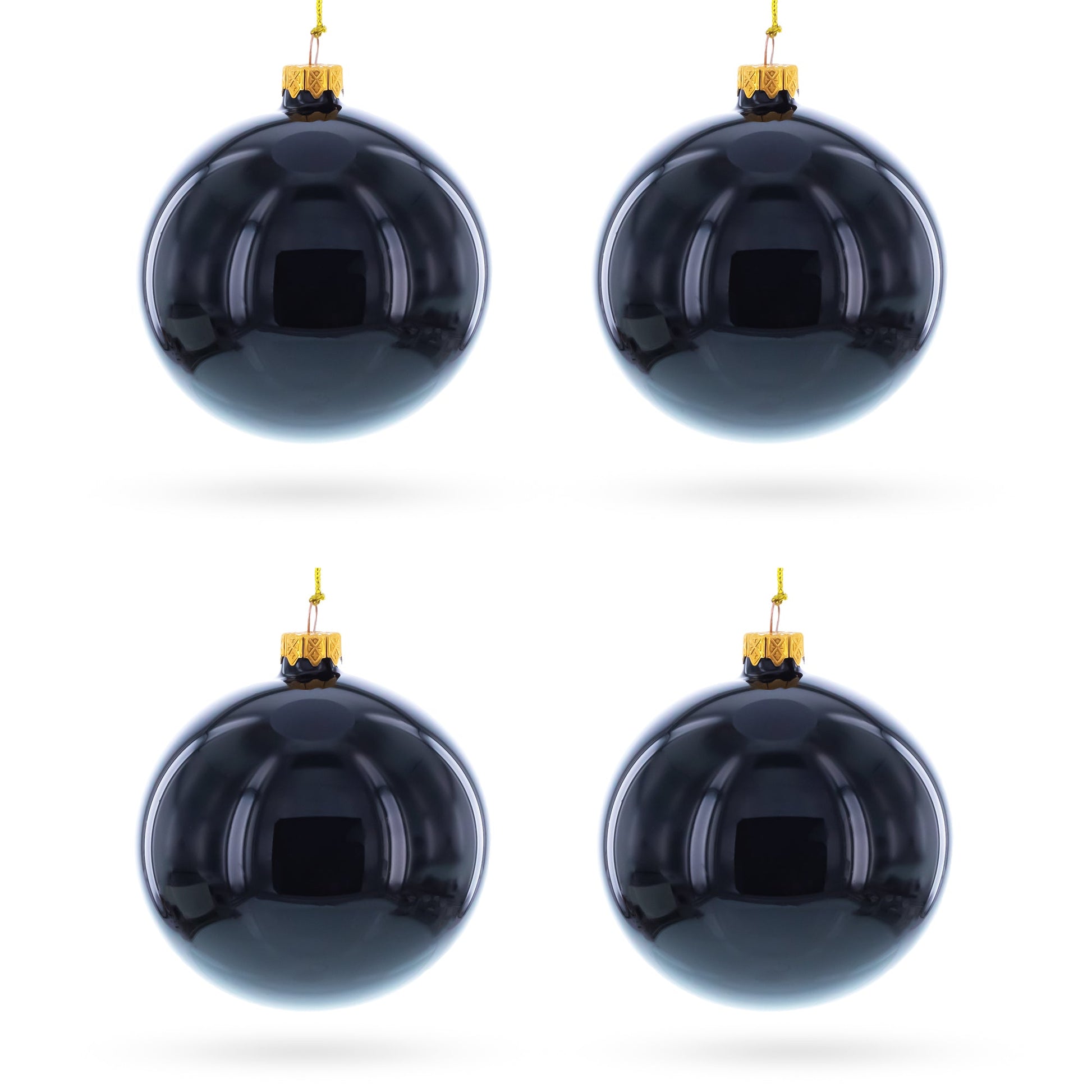 Set of 4 Glossy Black Glass Ball Christmas Ornaments 4 Inches