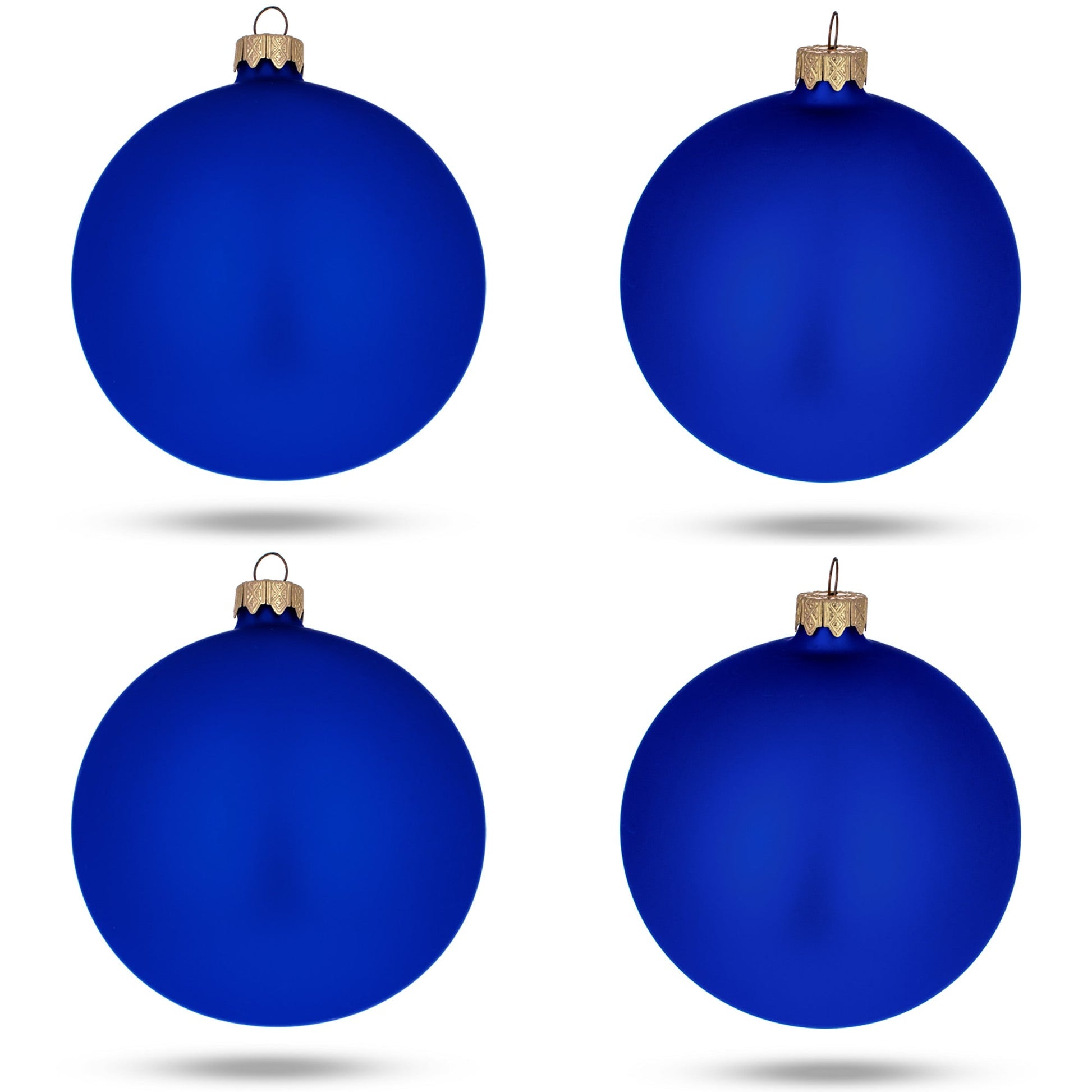 Set Of 4 Matte Blue Glass Ball Christmas Ornaments 4 Inches