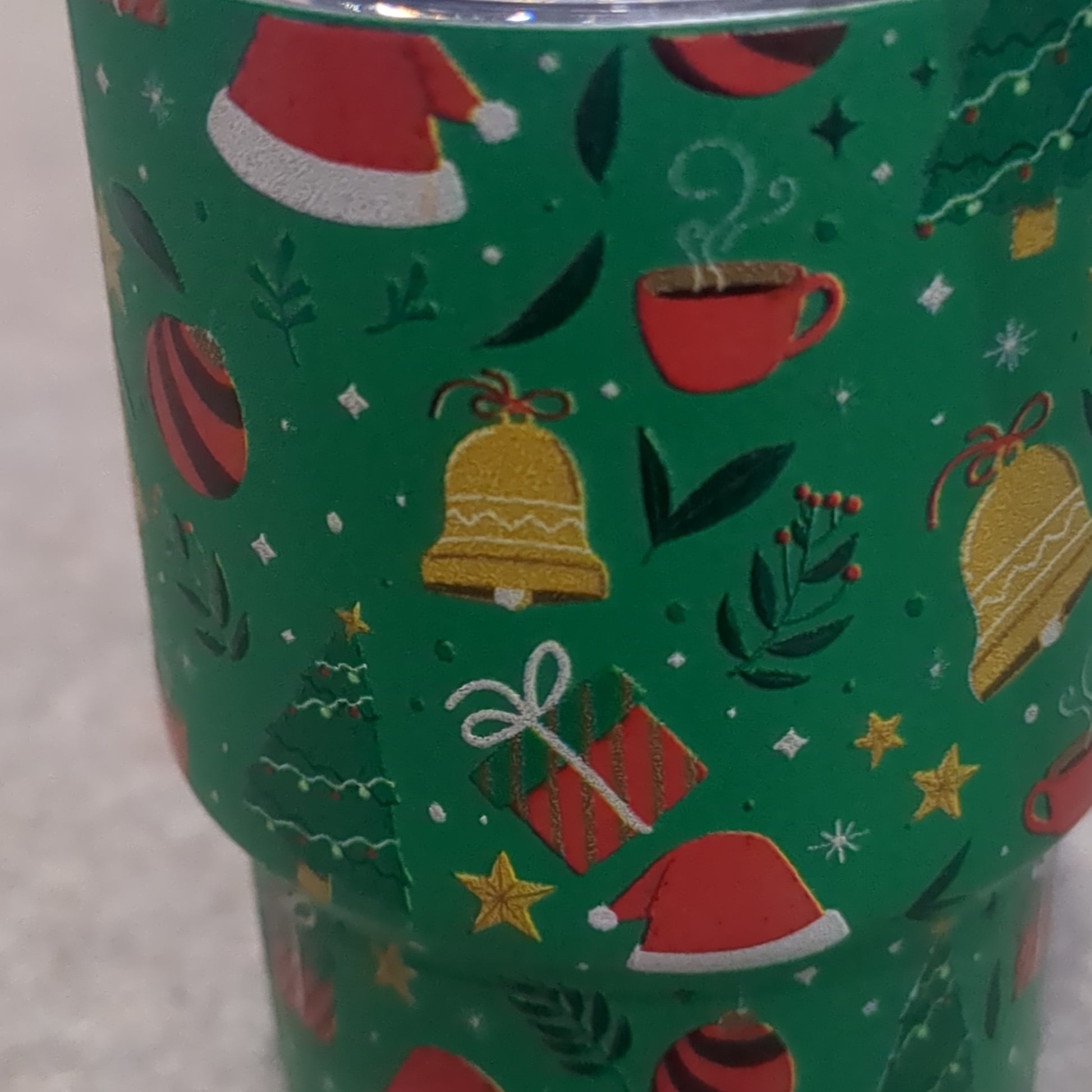 Shot glass / mini Tumbler for dolls and Barbies green. Raised Christmas symbol design
