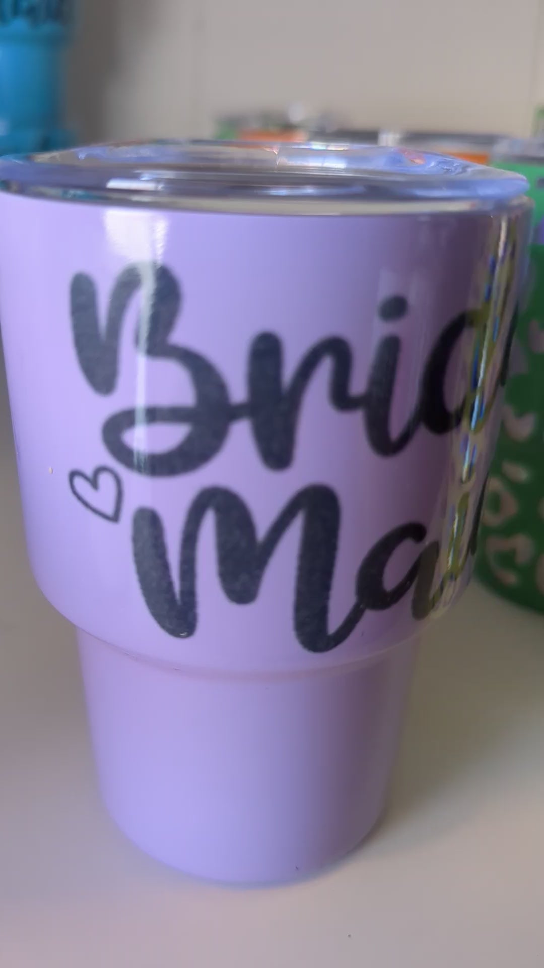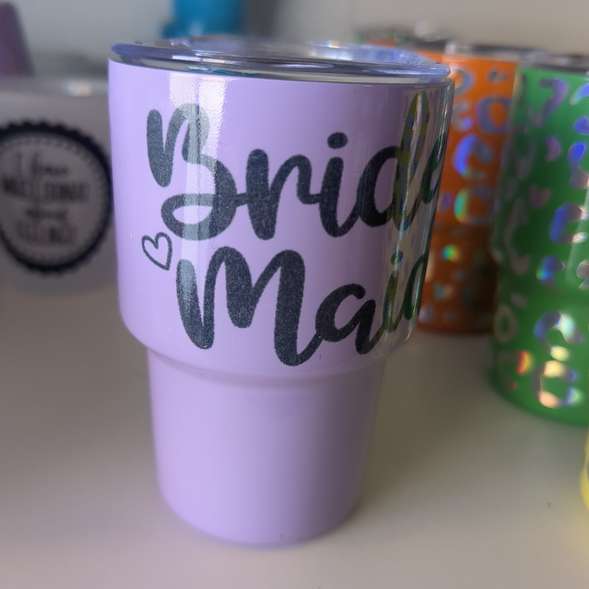 These cute shot glasses or mini tumblers for dolls and Barbies are stainless steel and insulated and are 3 oz they have a little plastic lid and a Little stainless steel straw.