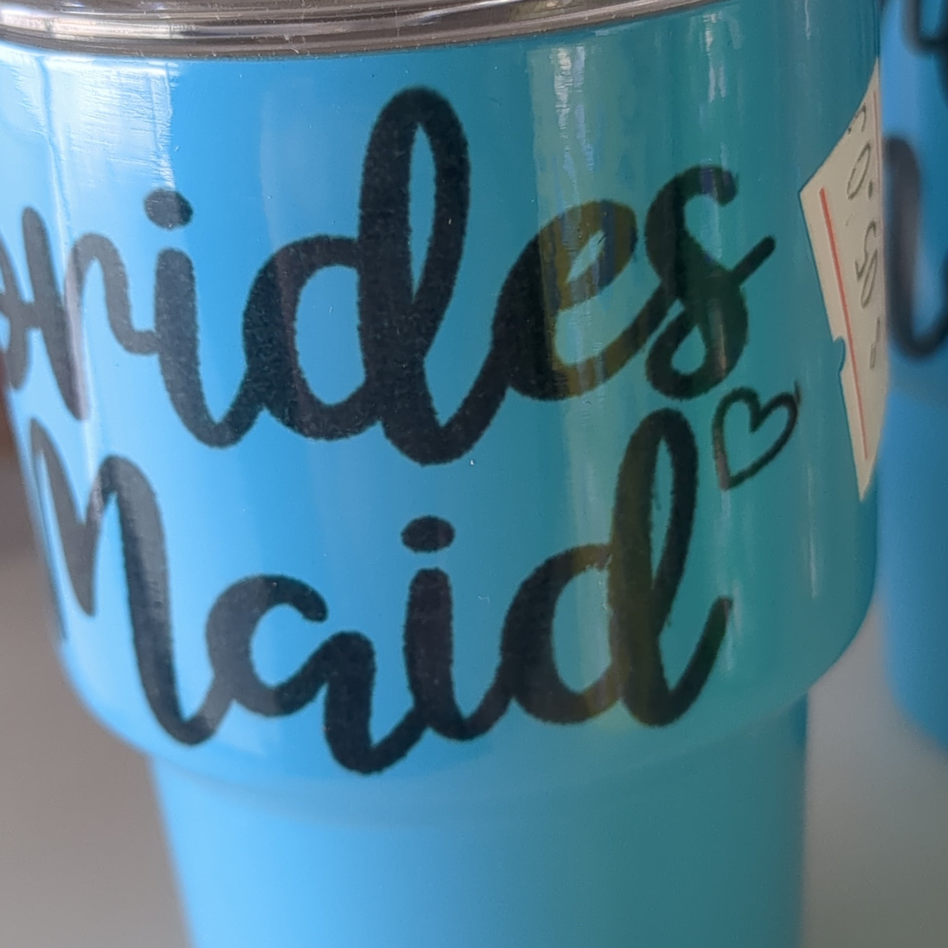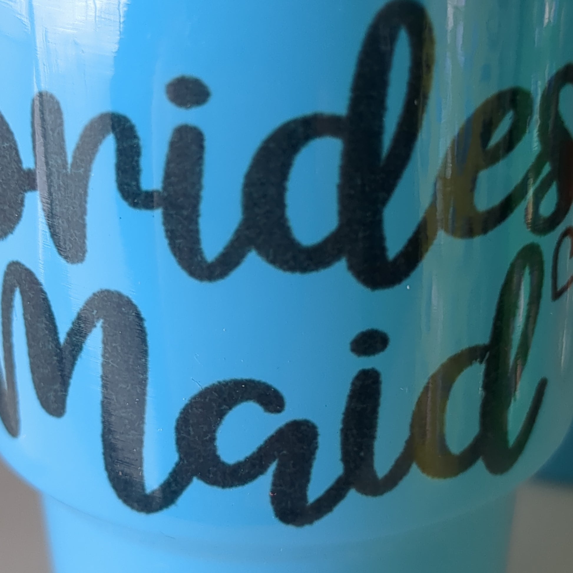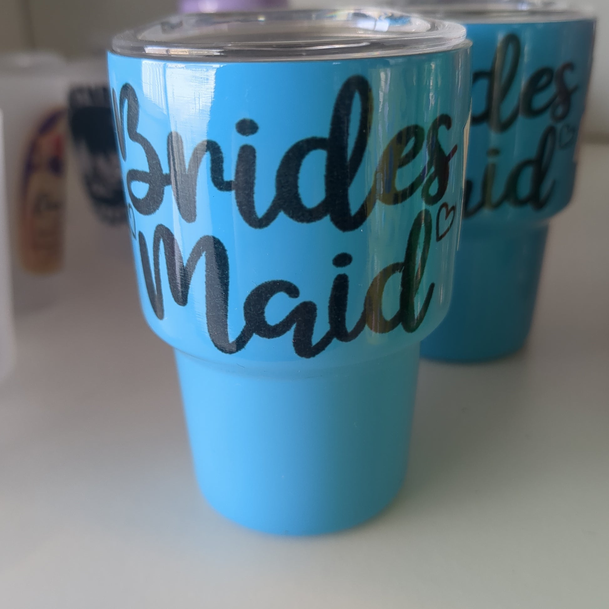 Shot glass / mini Tumbler medium blue says bridesmaid