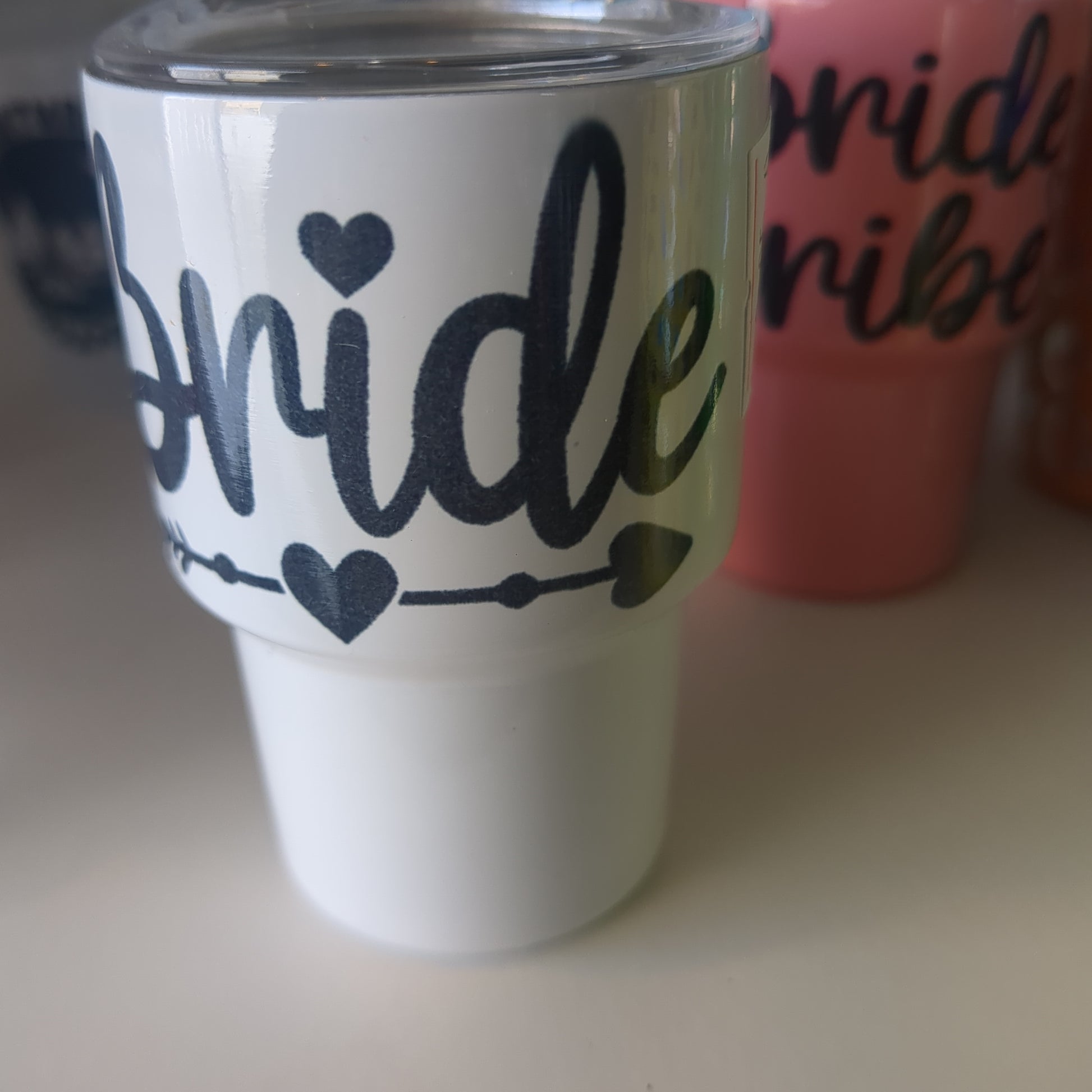 These cute shot glasses or mini tumblers for dolls and Barbies are stainless steel and insulated and are 3 oz they have a little plastic lid and a Little stainless steel straw.