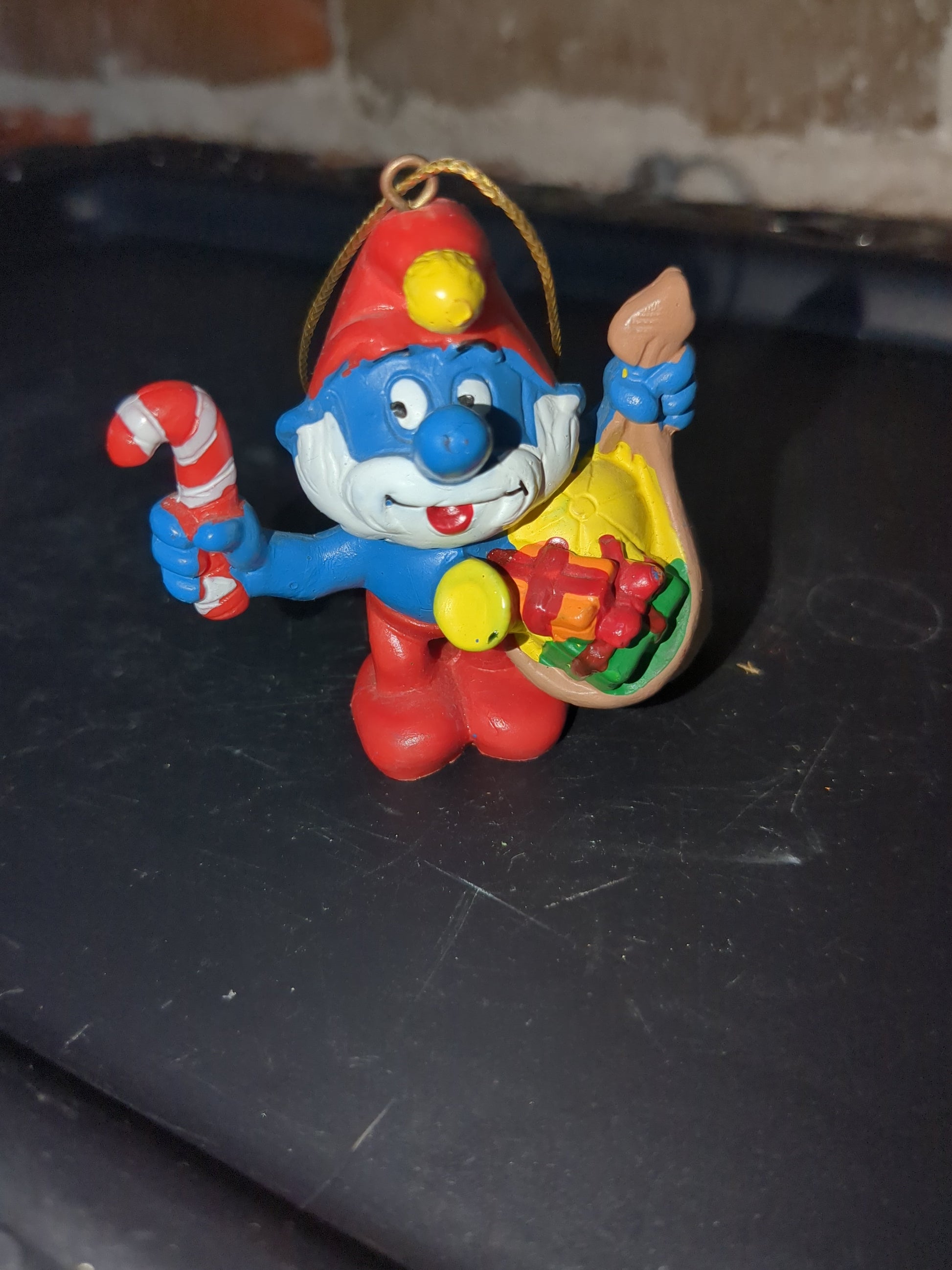Smurfs 51903 Christmas Ornament Schleich Peyo Papa Smurf Santa Sack & Hat 1981. Very Good Used Condition. Please see photos as they are part of the description