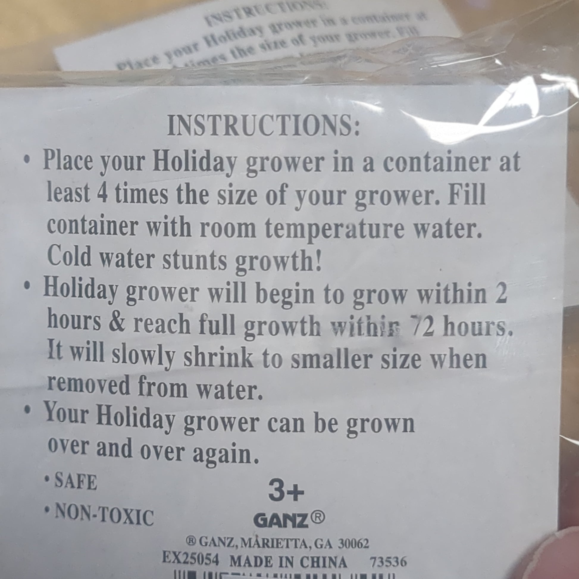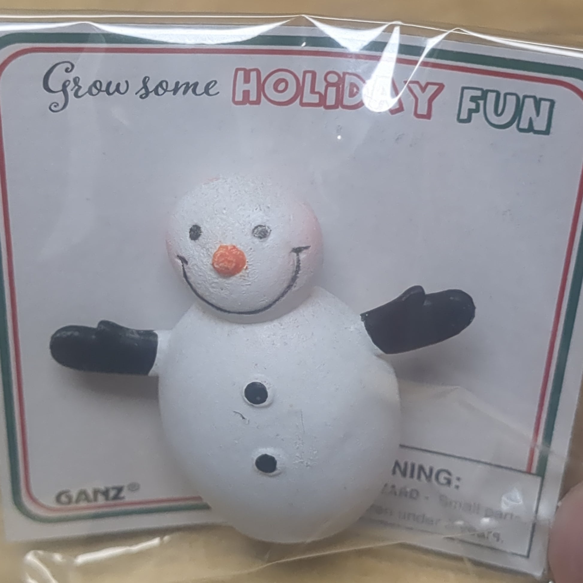This cute little snowman can grow 4 times it's size when places in water. Can be reused!
