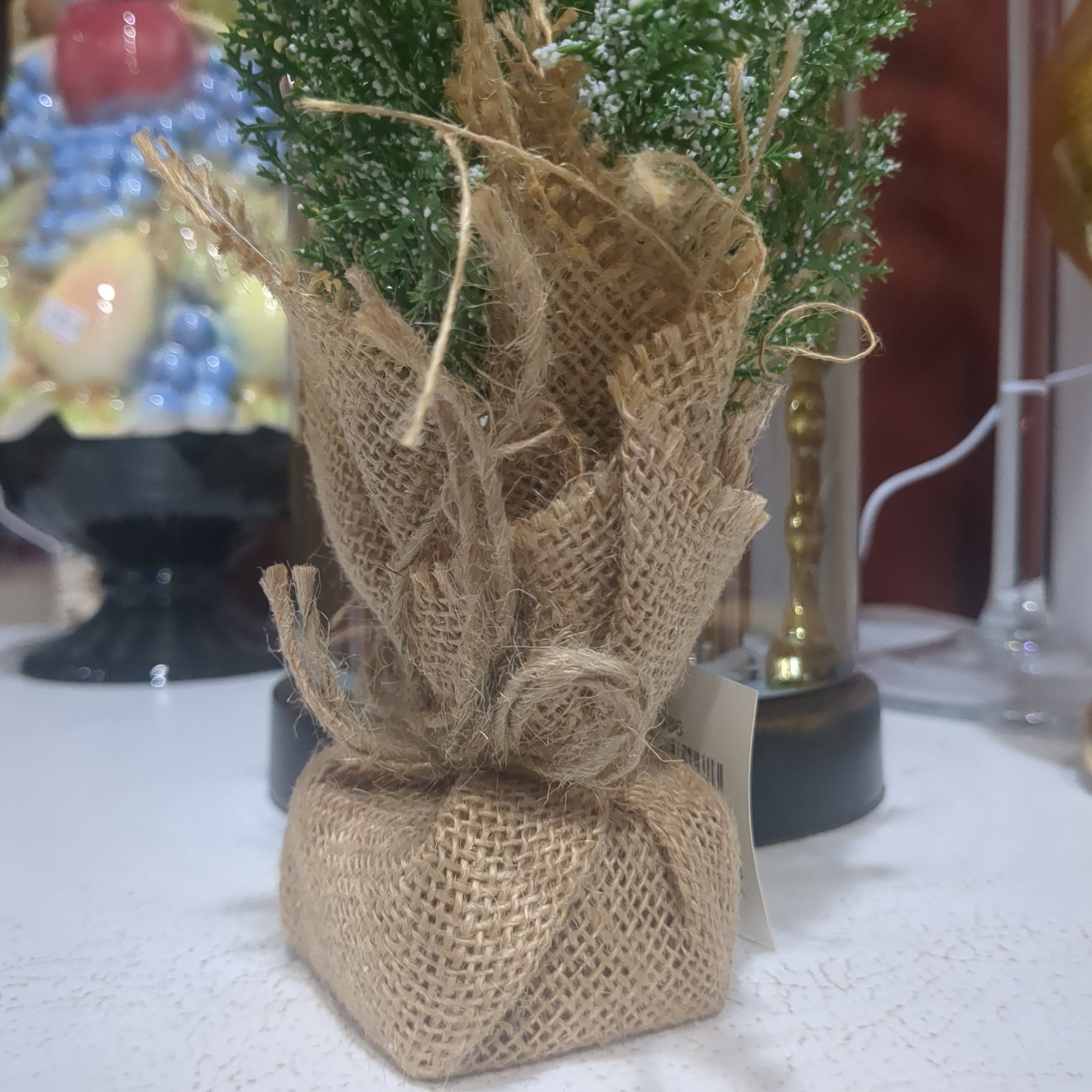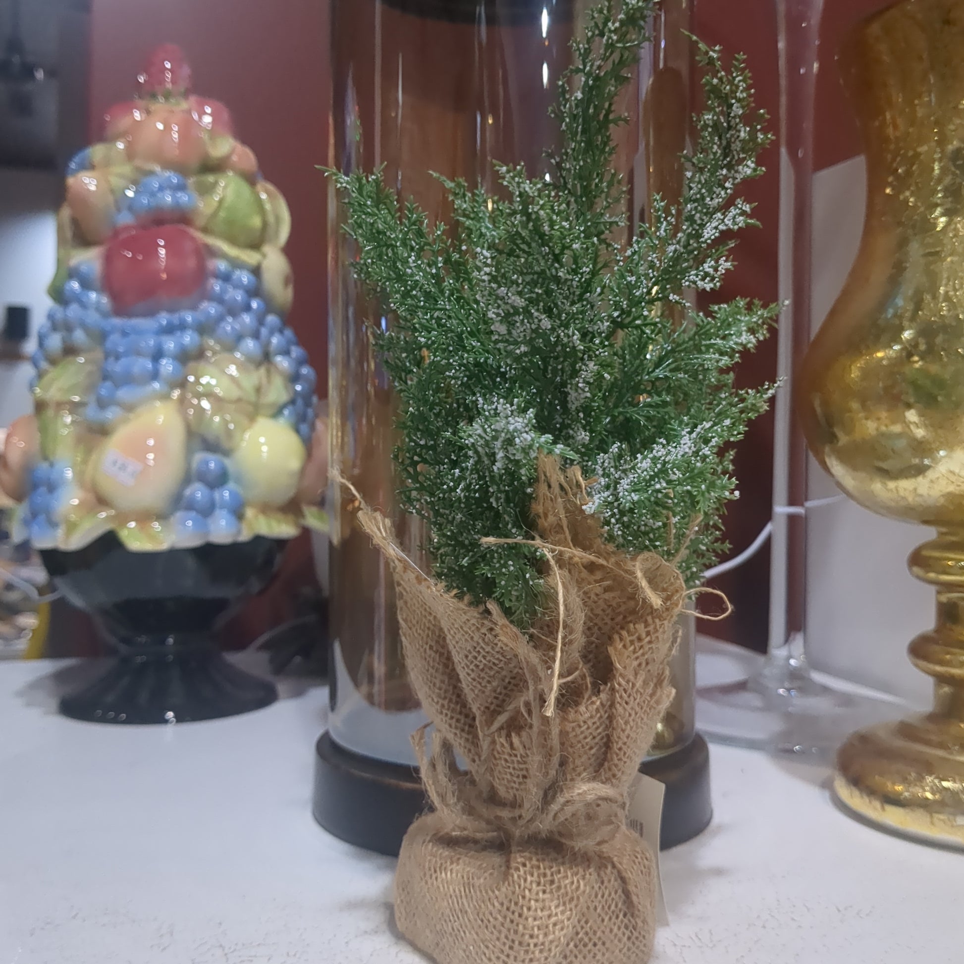 Snowy Mini Cedar Tree w/Burlap Base, 11.5"