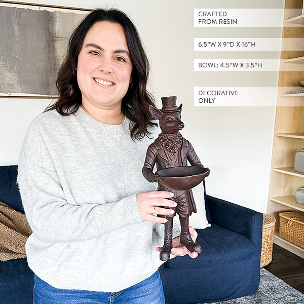 With its refined silhouette and luxurious finish, the Dapper Standing Fox Bronze Bowl is more than just decor—it's a conversation piece that brings charm and elegance to your home.