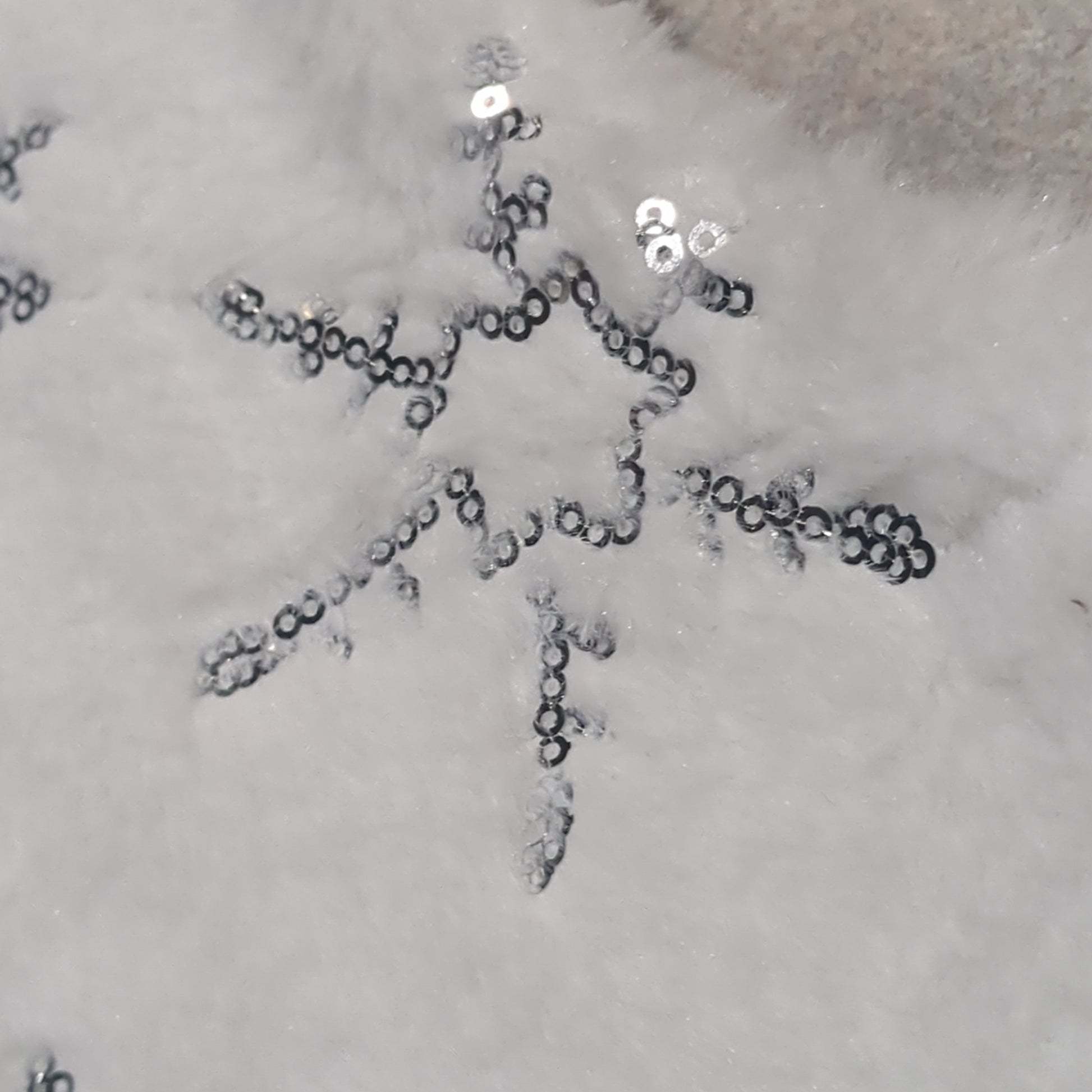 White fuzzy stocking with silver snowflakes. Price is for one.