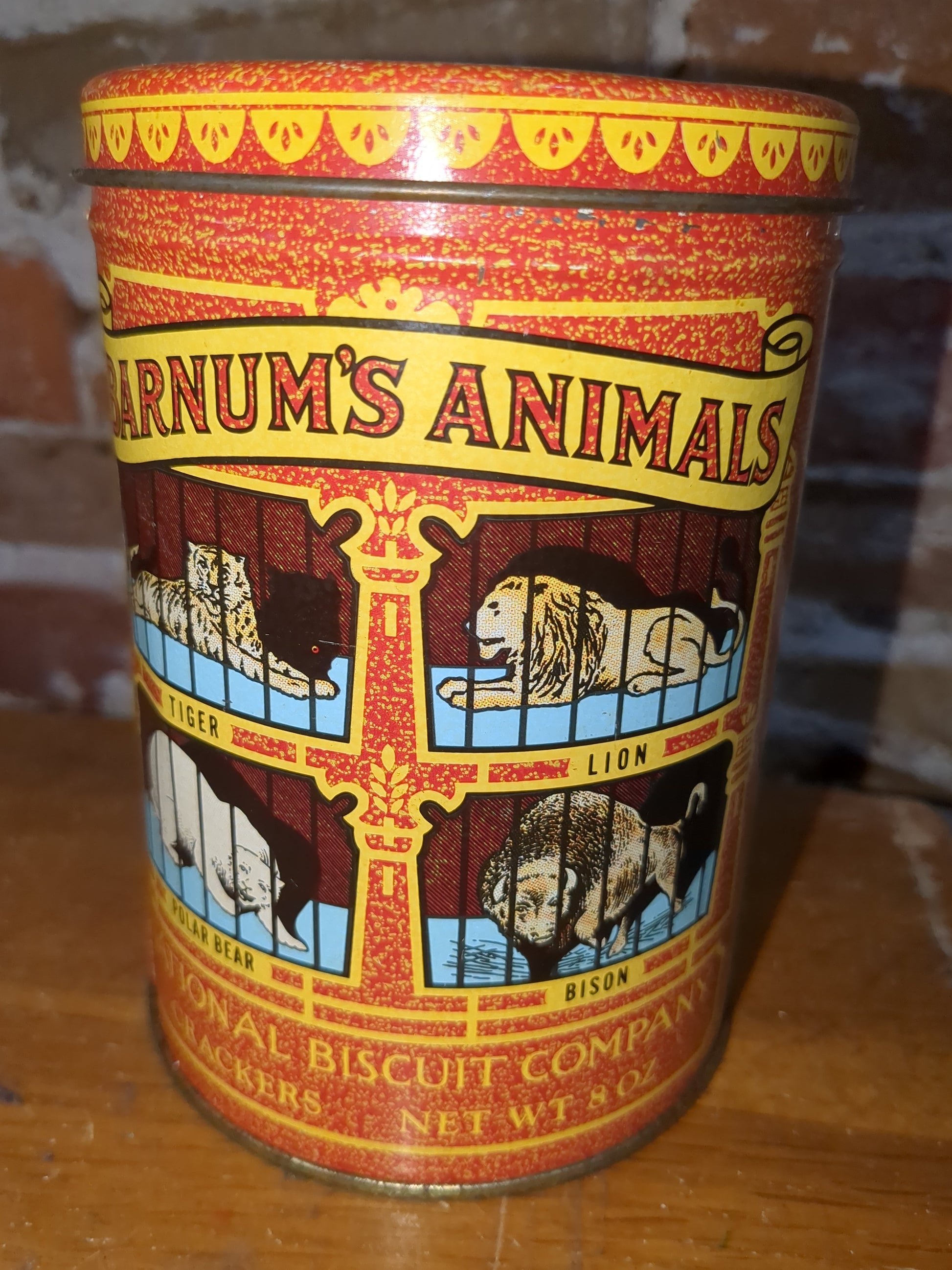 national biscuit company Barnum's animal crackers tin, it has some rust on the bottom. the colors are still great