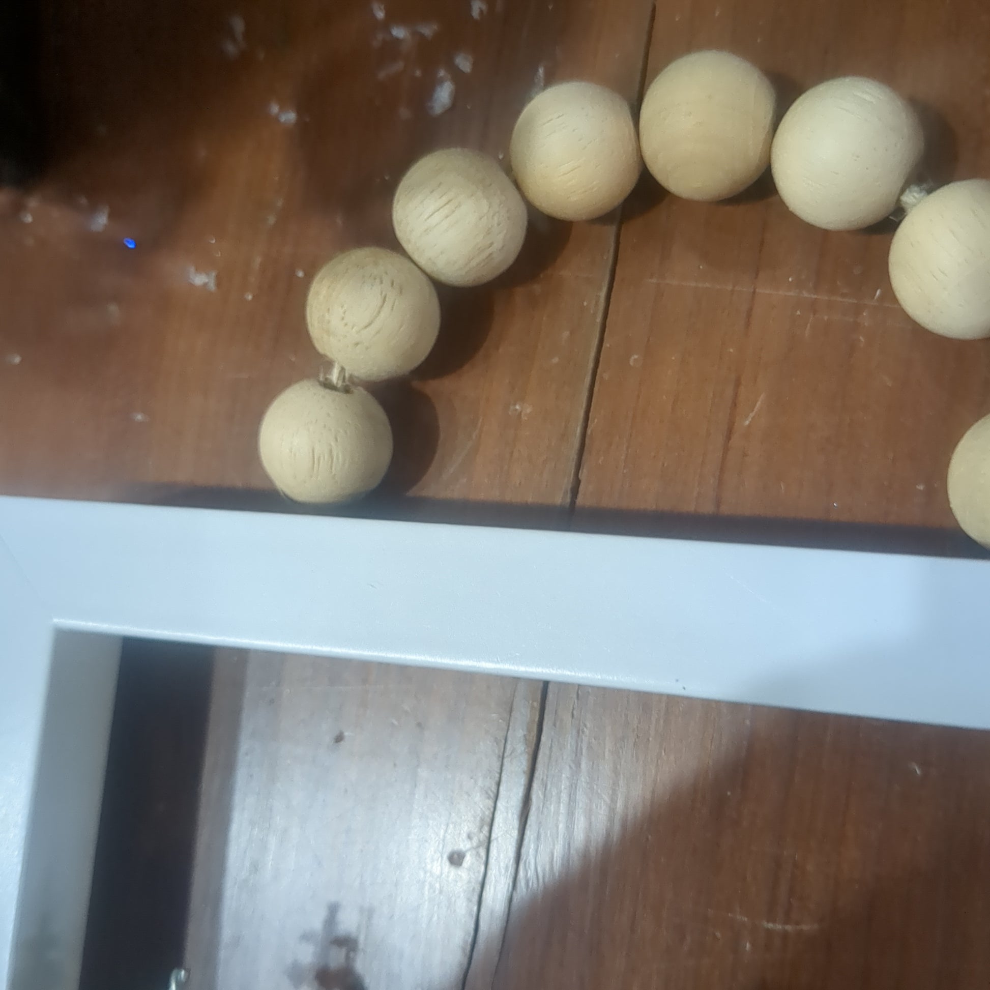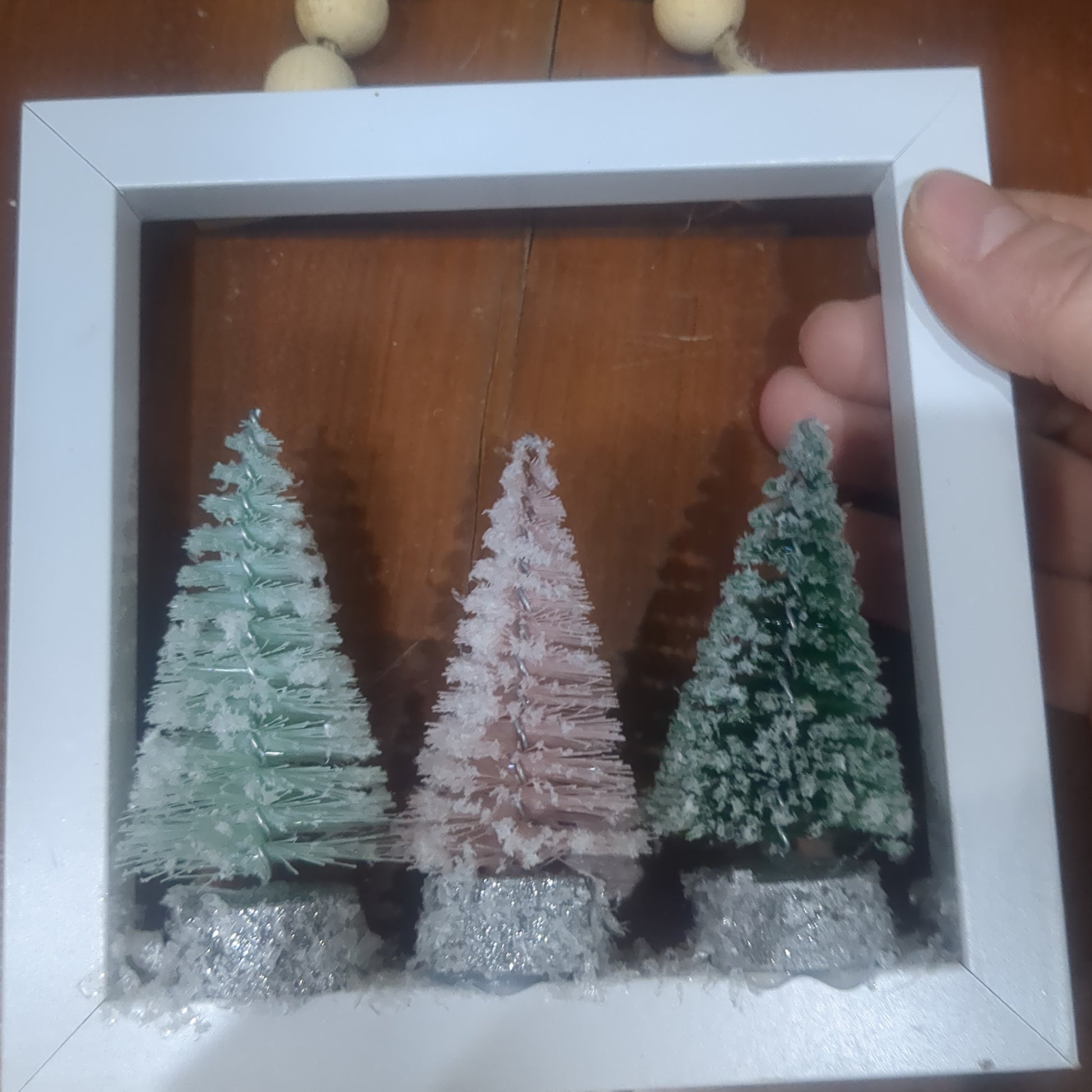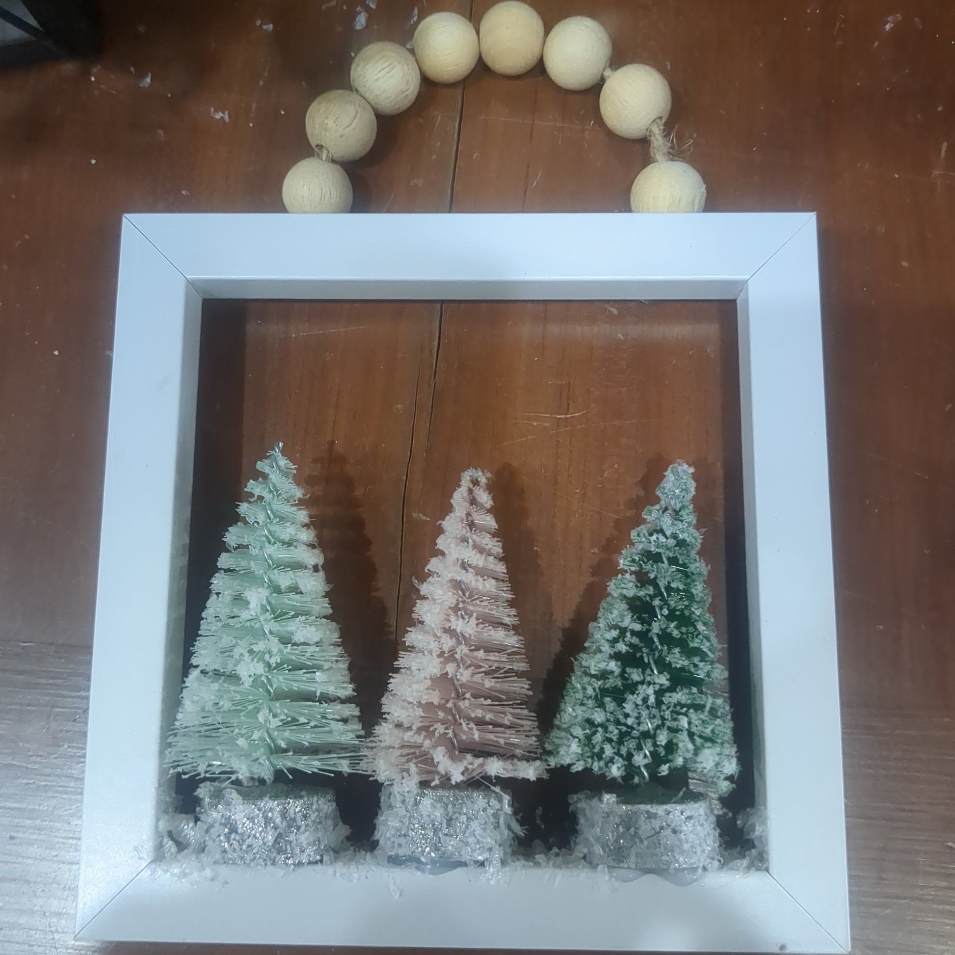 This Christmas or winter decoration is open backed, 6 inches and has wouldn't beads on a jute hanger.