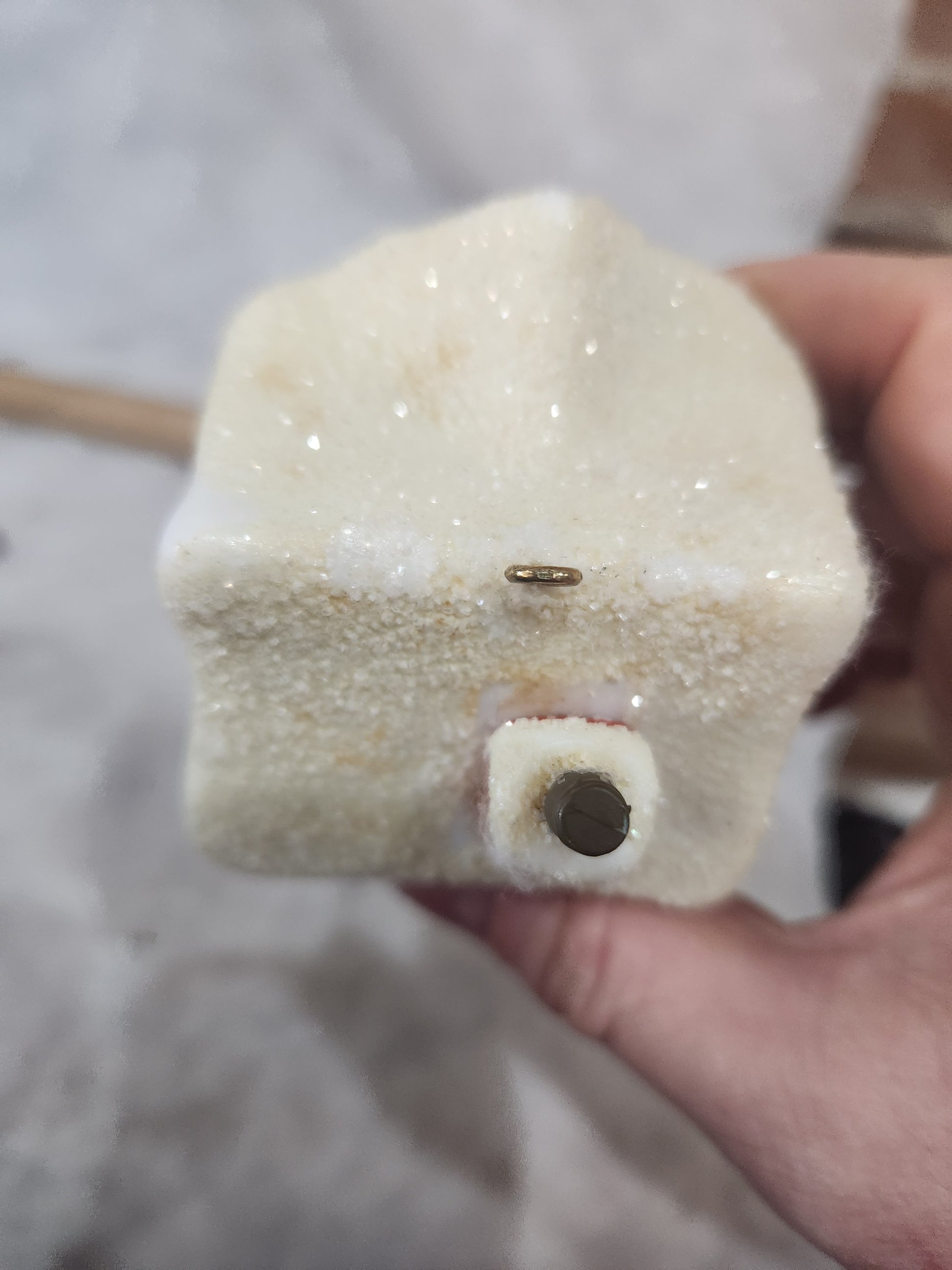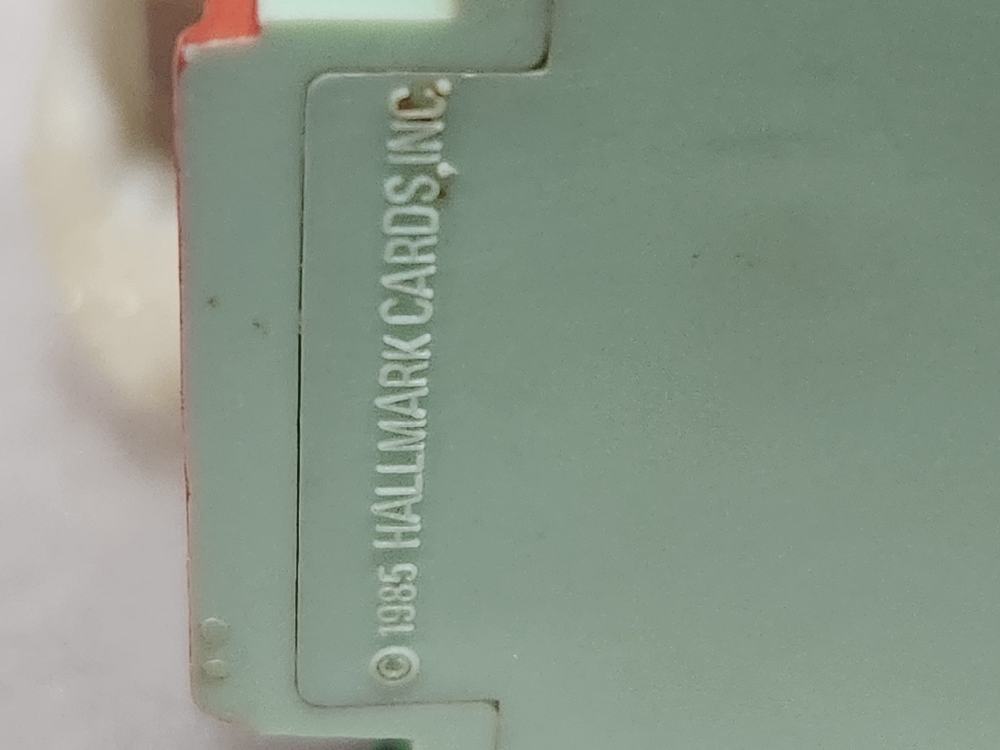 1985 Hallmark Holiday Magic Ornament featuring "Mr. and Mrs. Santa." This small, lighted ornament is made of plastic. You hang it on your tree and put one of the Christmas lights into the hole in the back and it lights up the scene and it's absolutely adorable it does have some yellowing of the snow on the rooftop, otherwise it's in very good condition I don't see any cracks or chips or anything broken out of it. It does not have its original box. Please see the photos as they are part of the description. If buying multiple items and shipping is not discounted we will refund the difference.
