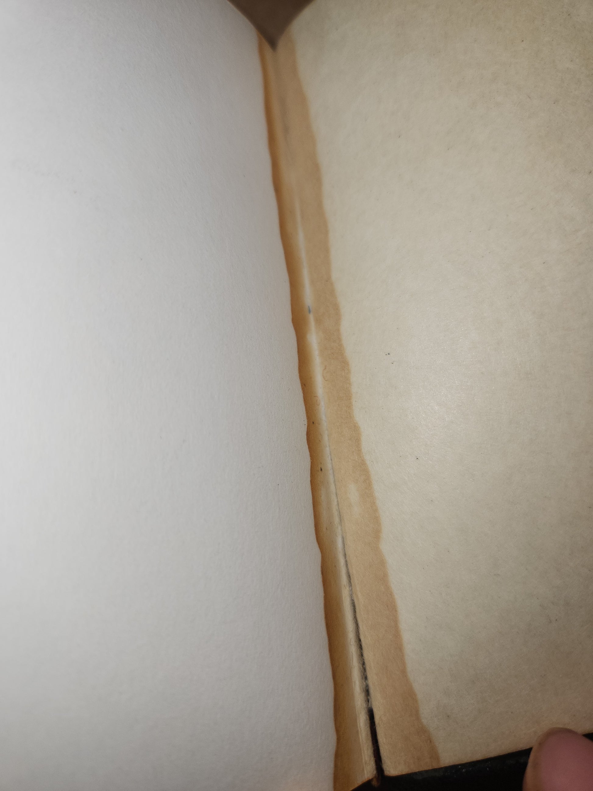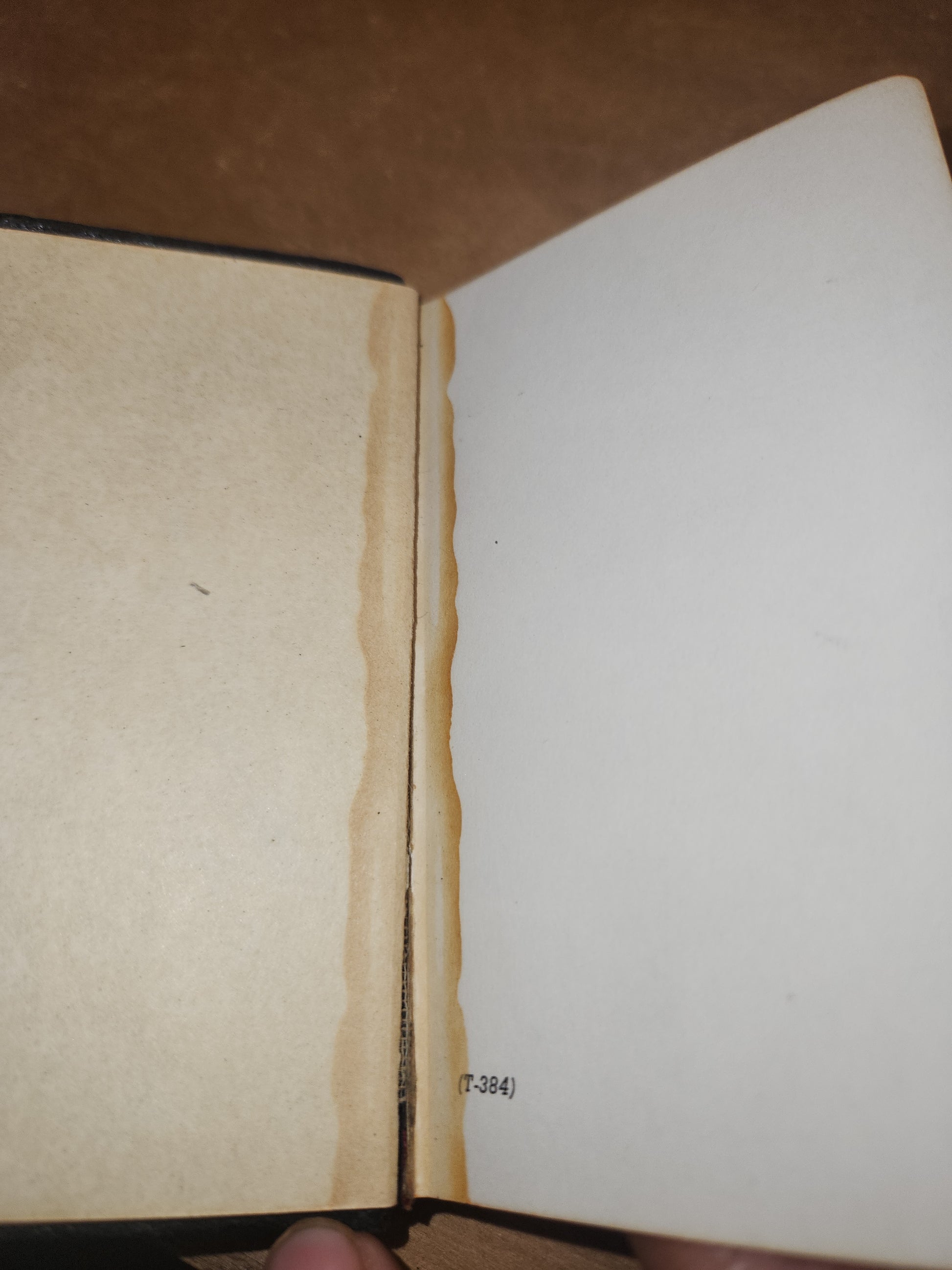 This book is in fair condition because there is a stain along the binding front and back first pages. It is a cute book 4 1/2" long just under 3" wide and just over 1/2" tall. Please see photos as they are part of the description