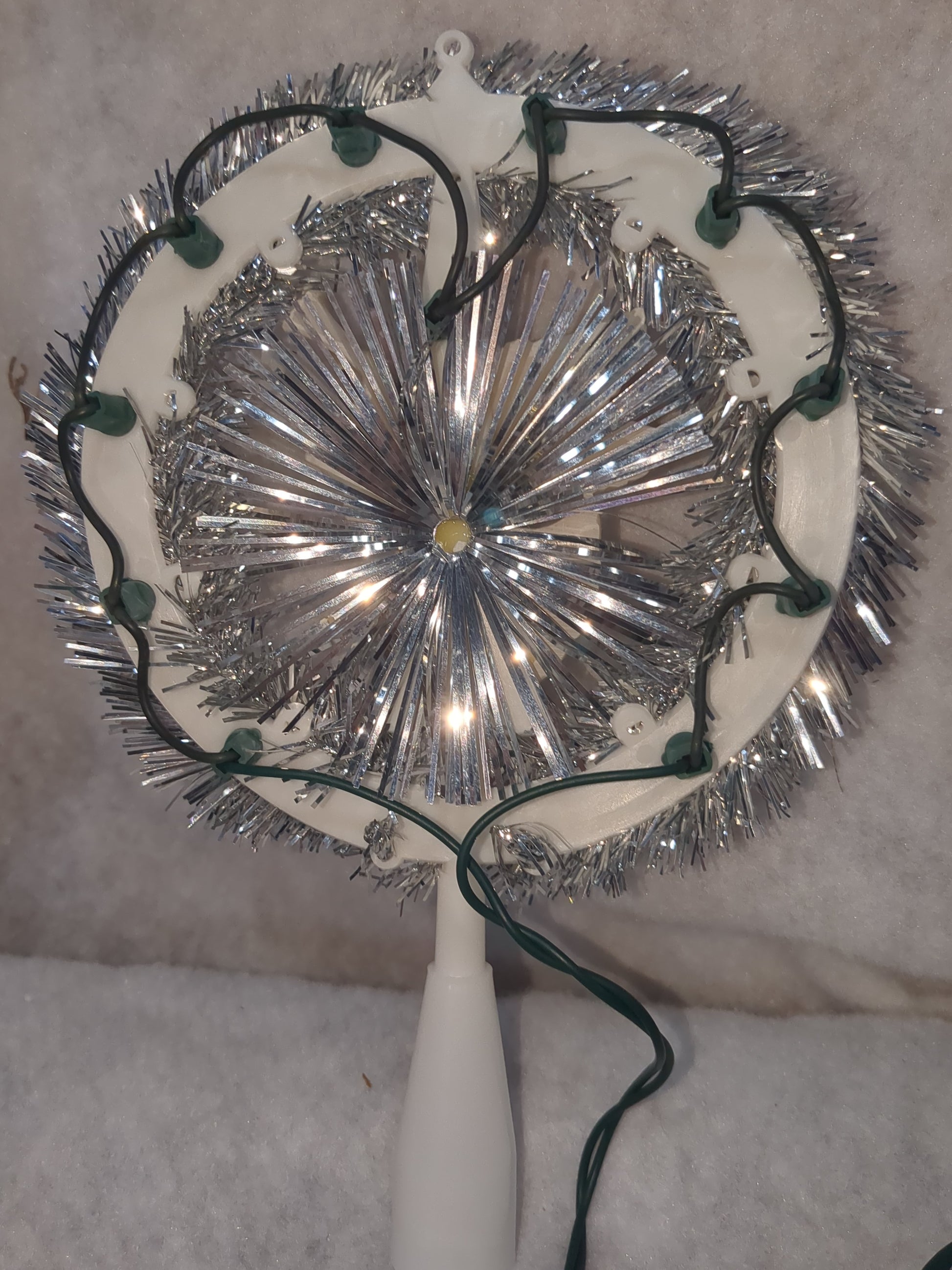111 Vintage Merry Brite 11- Light Tree Topper Silver tinsel White Angel works tt236