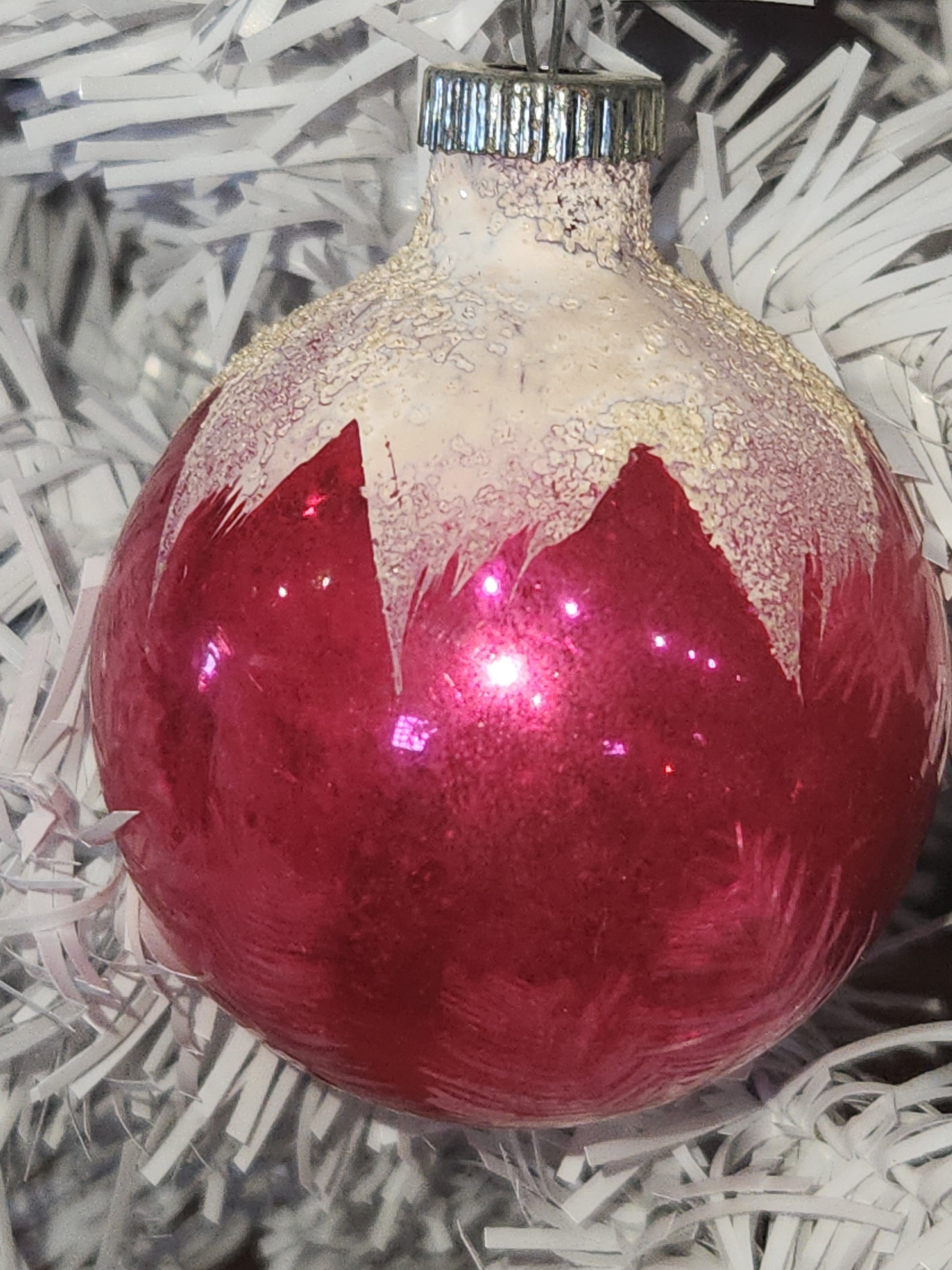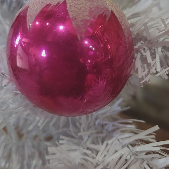 Vintage Shiny Brite Mercury Glass Snow Capped Pink Ornament Ornament sb3