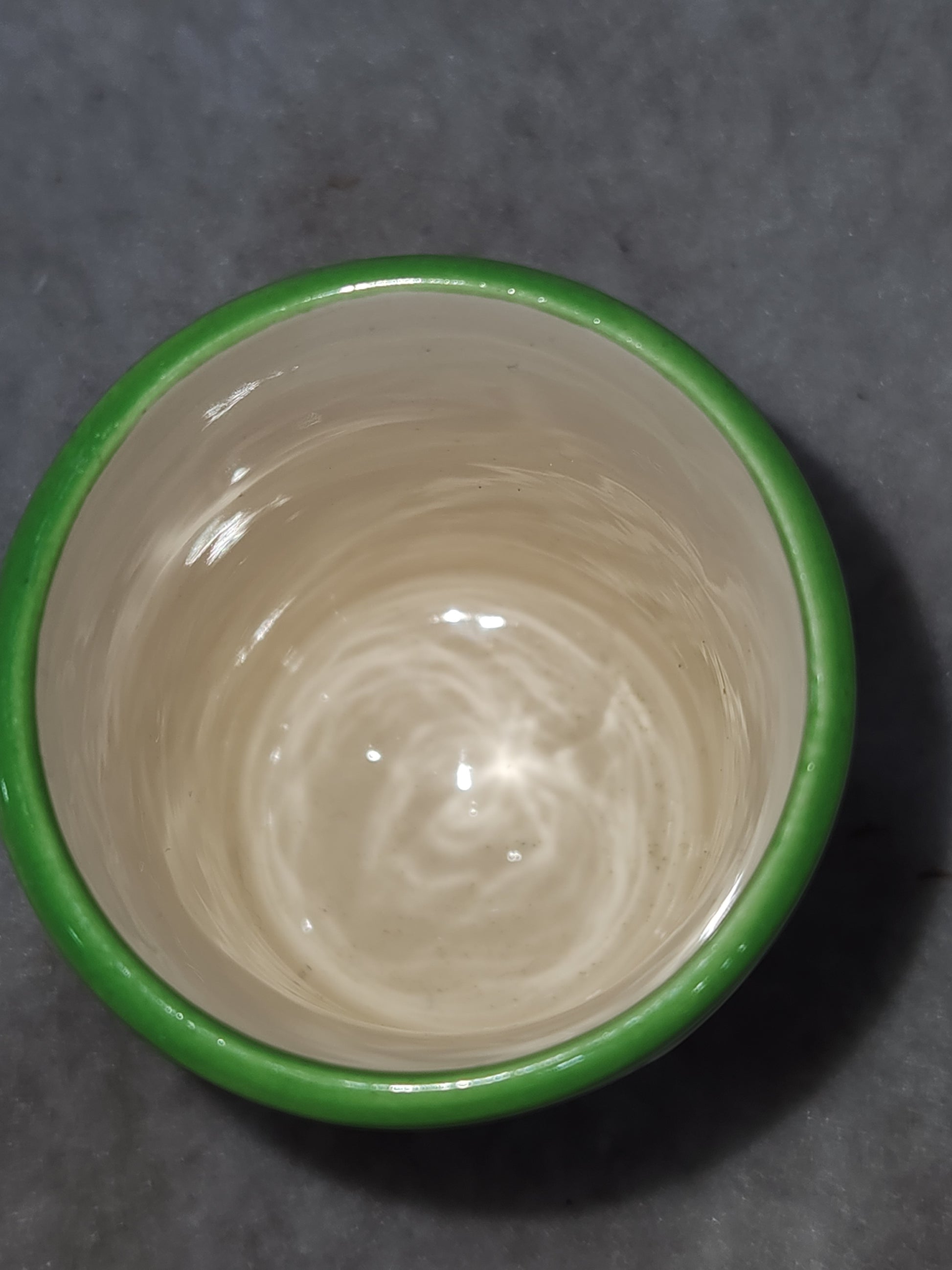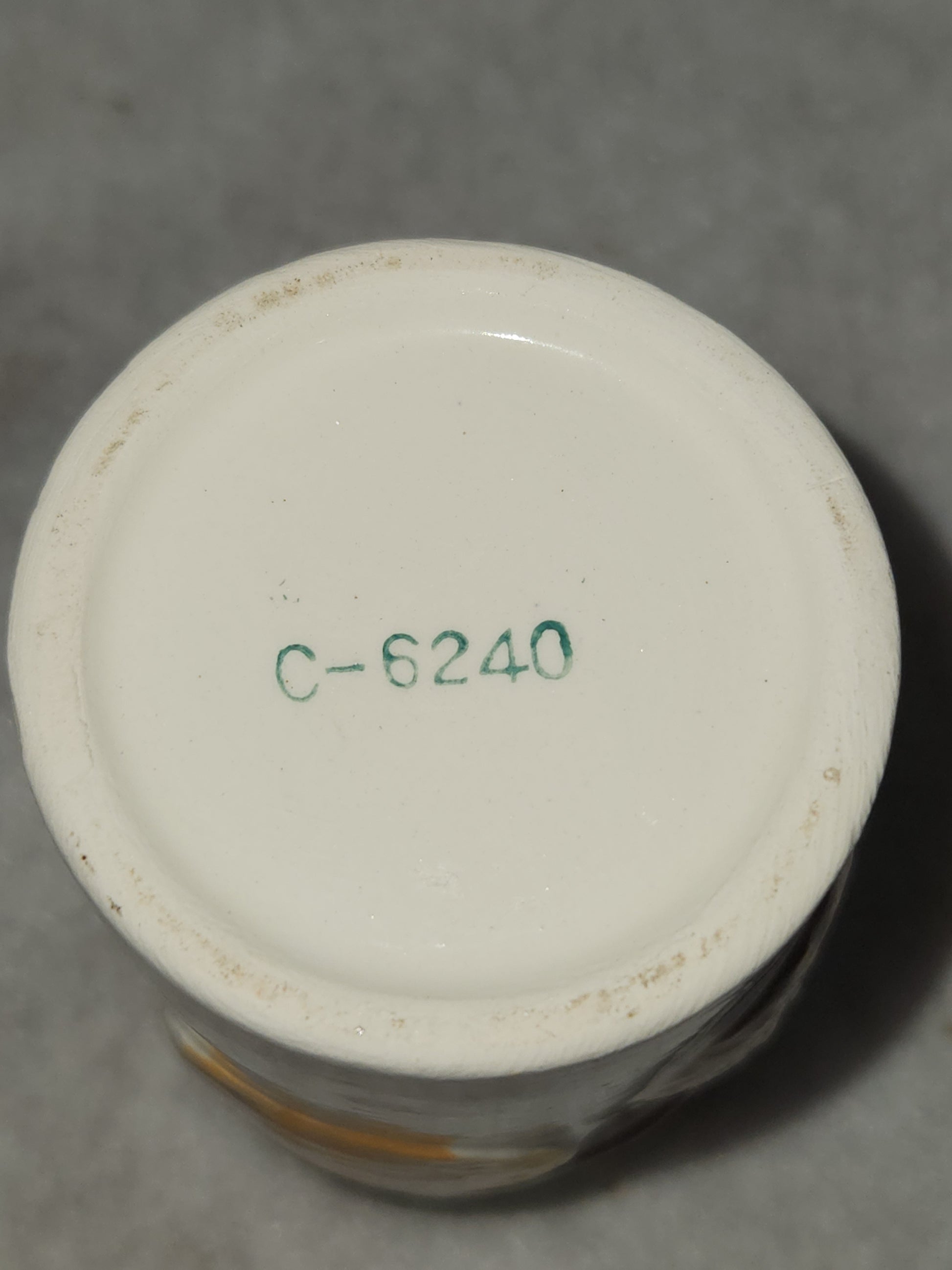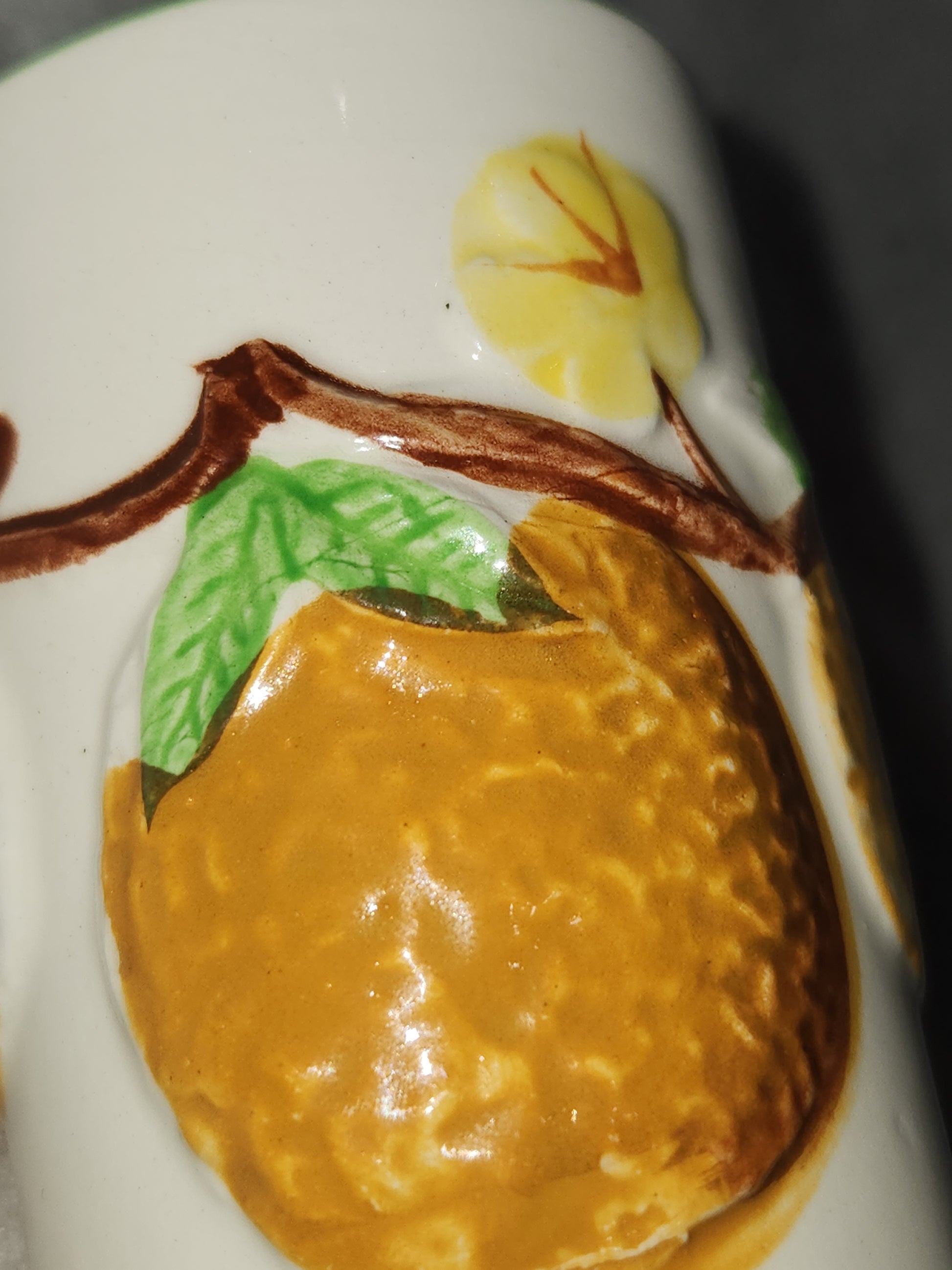 This little ceramic juice cup originally came with a set with four glasses and a pitcher. If you've been looking for one juice glasses for your set you are in business! It's in good condition. I don't see anything wrong with it. I don't see any major chips or cracks. Please see photos as they are part of the description.