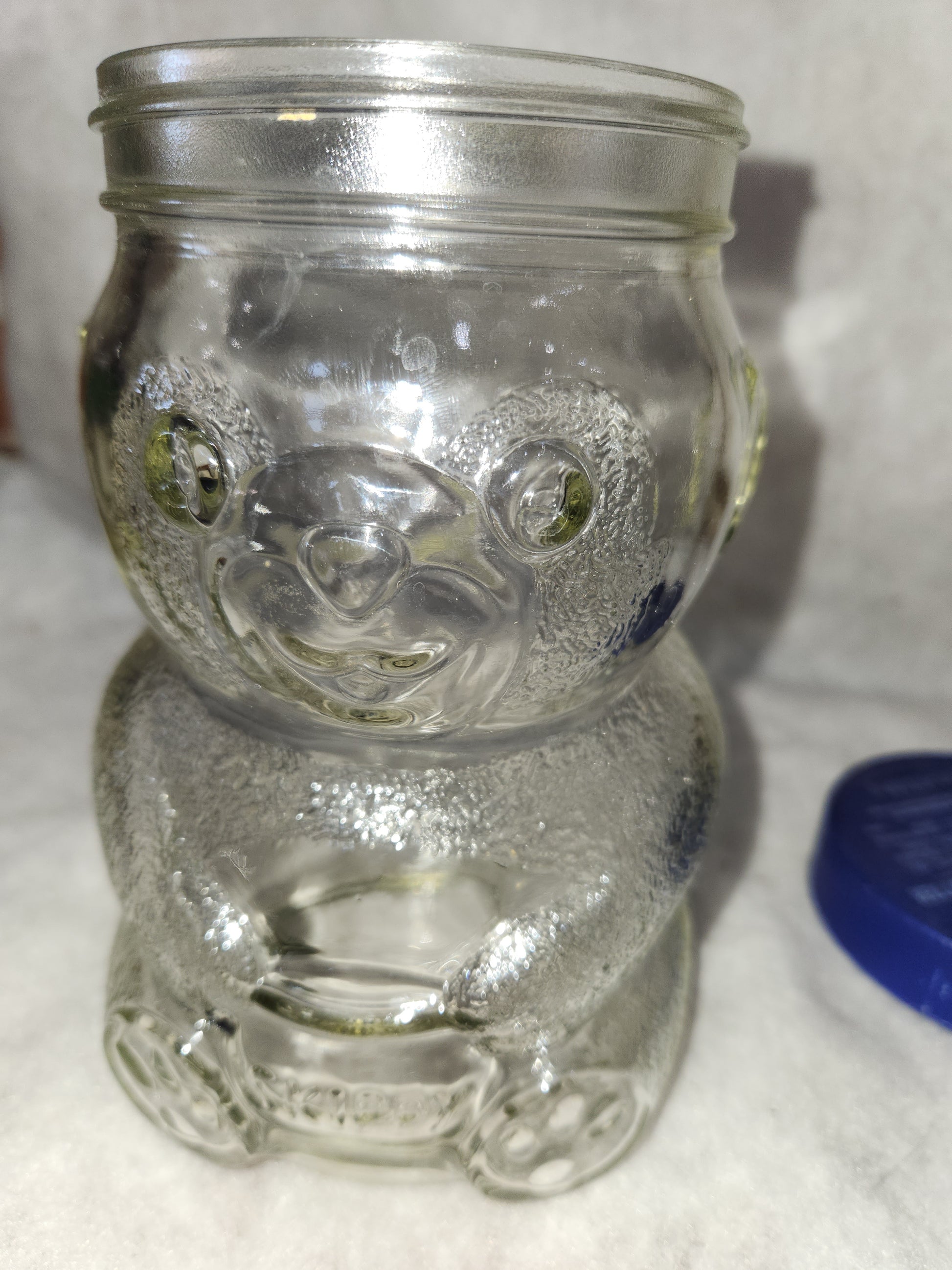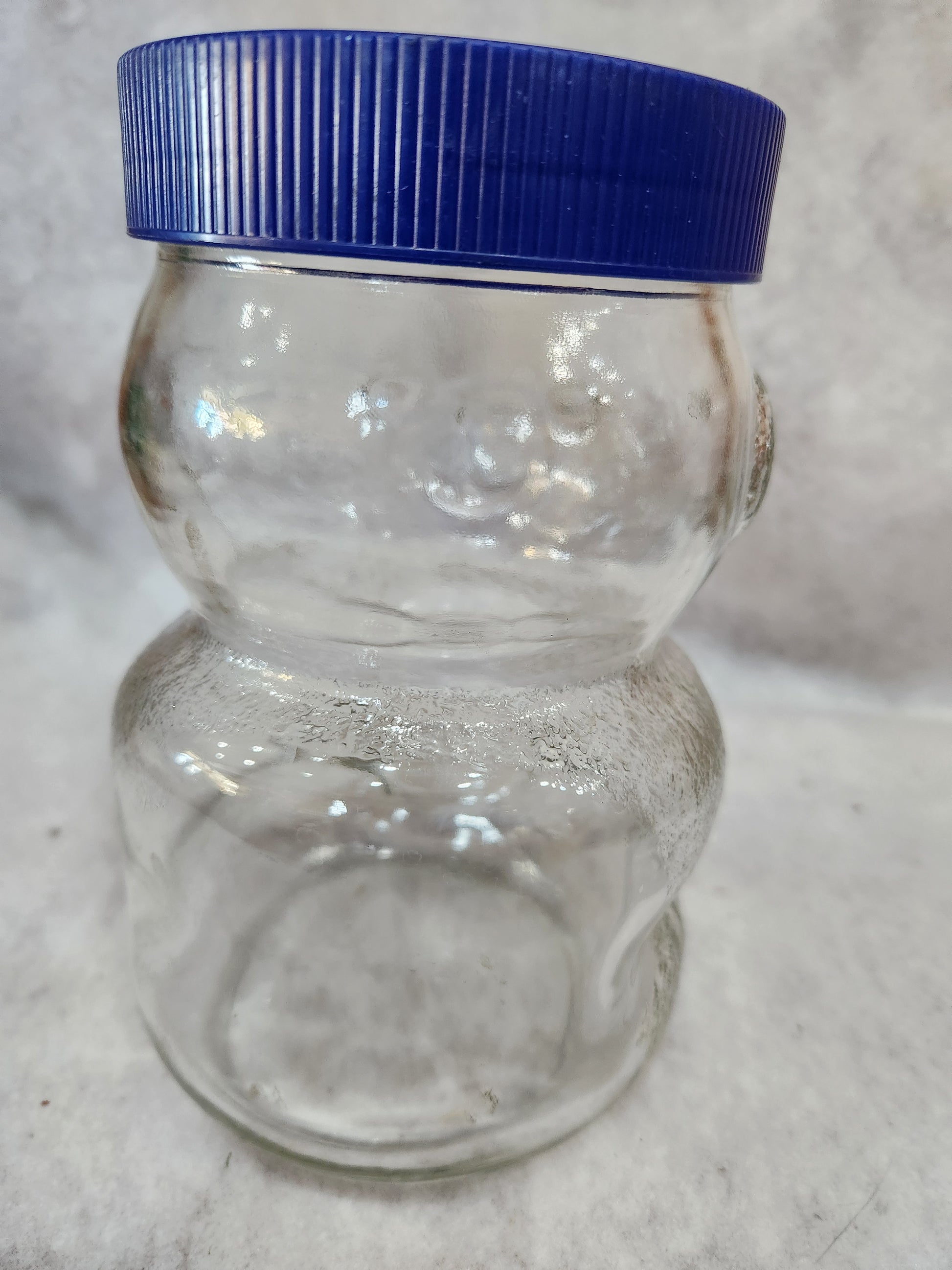 Vintage 1990s Skippy Peanut Butter Bear Glass Jar 100th Anniversary Blue Plastic Lid 48oz skj7