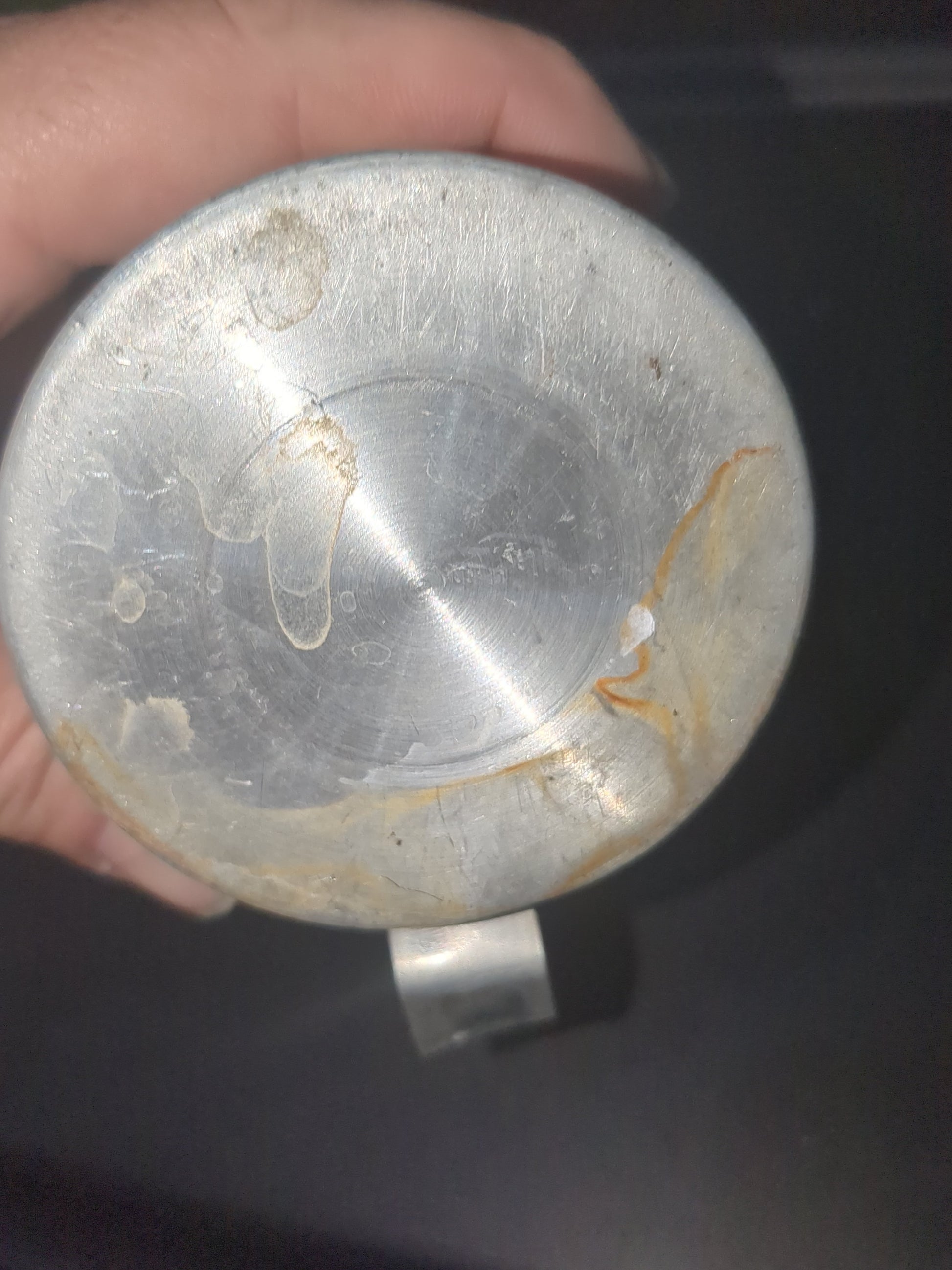 Vintage aluminum syrup pitcher with flip top lid alu891
