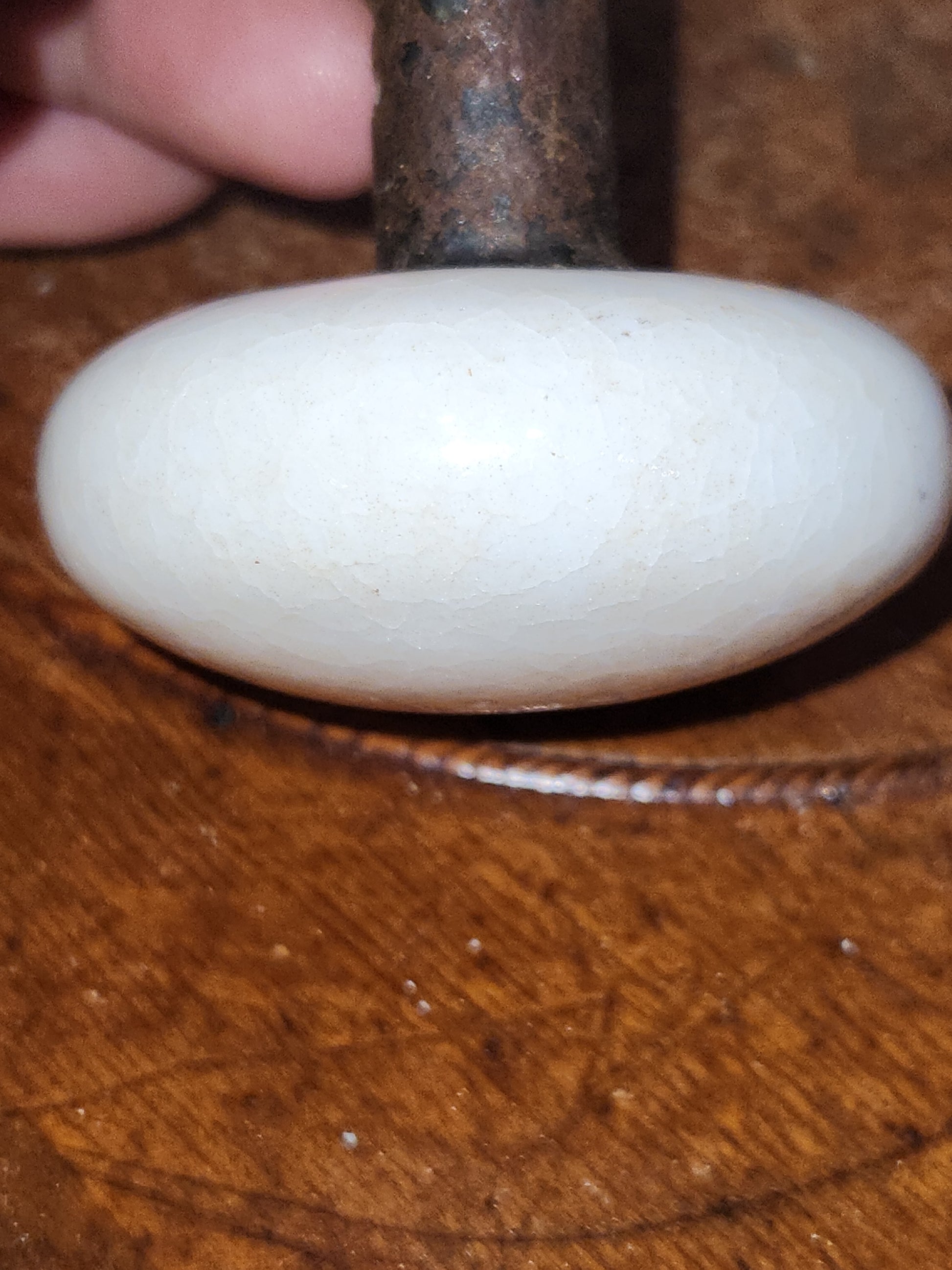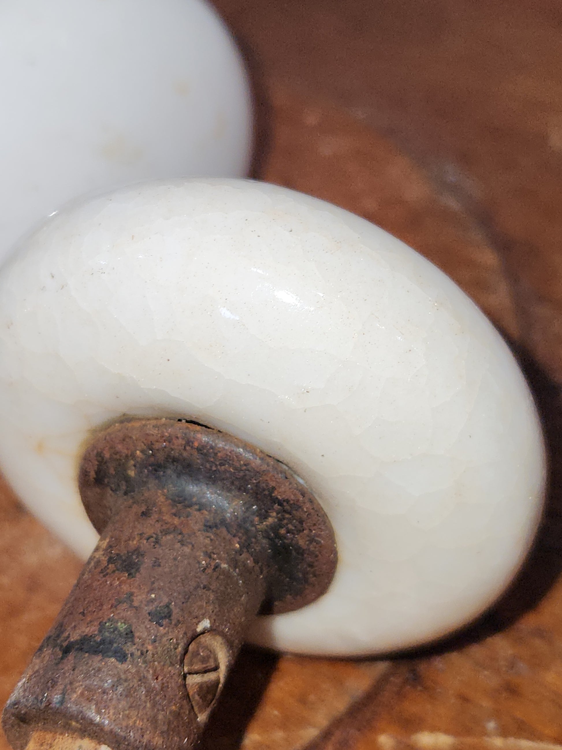 Vintage Antique ONE set of White Porcelain door knobs kn15. Recieve ONE set of 2 knobs attached to a stem