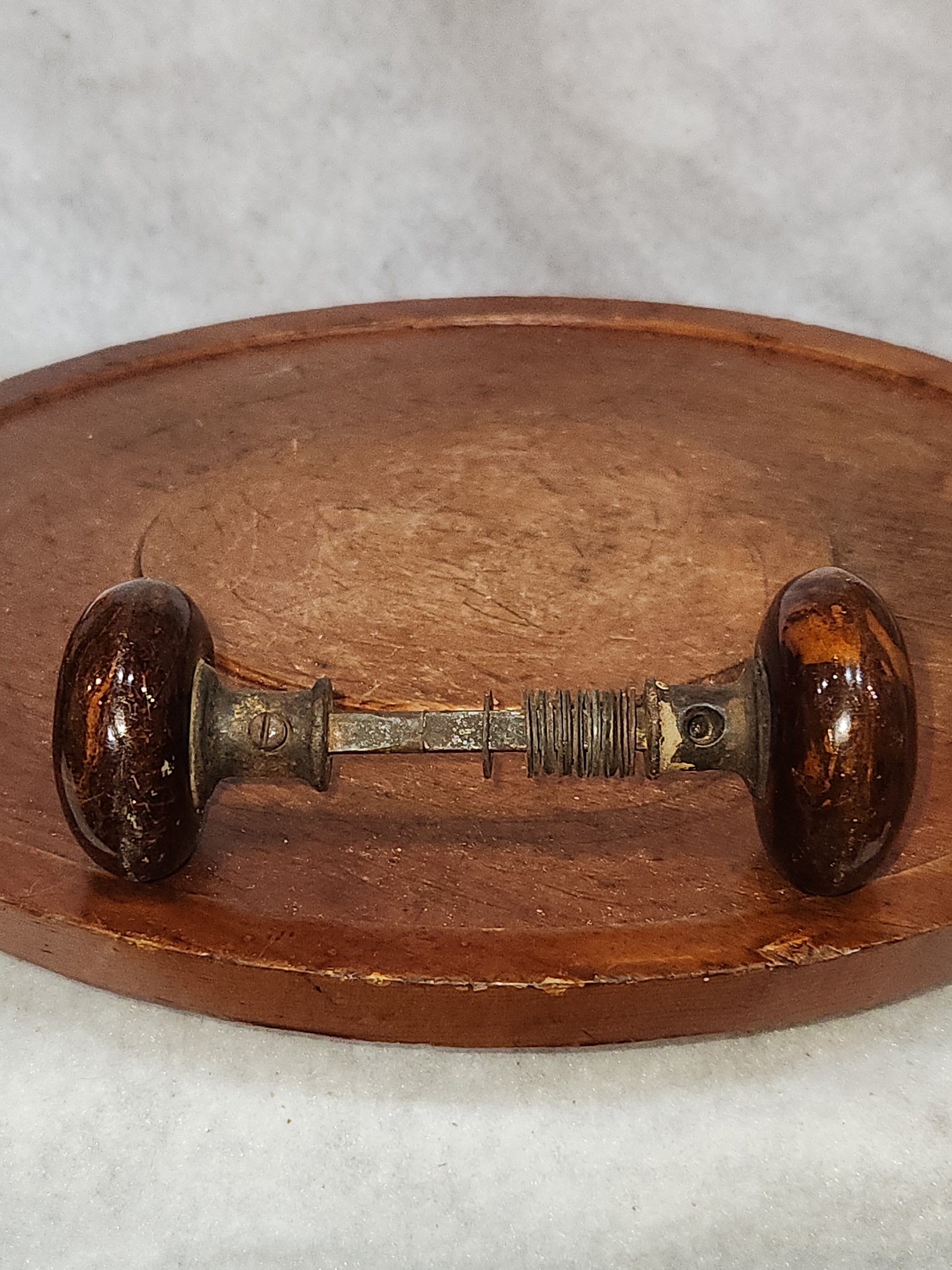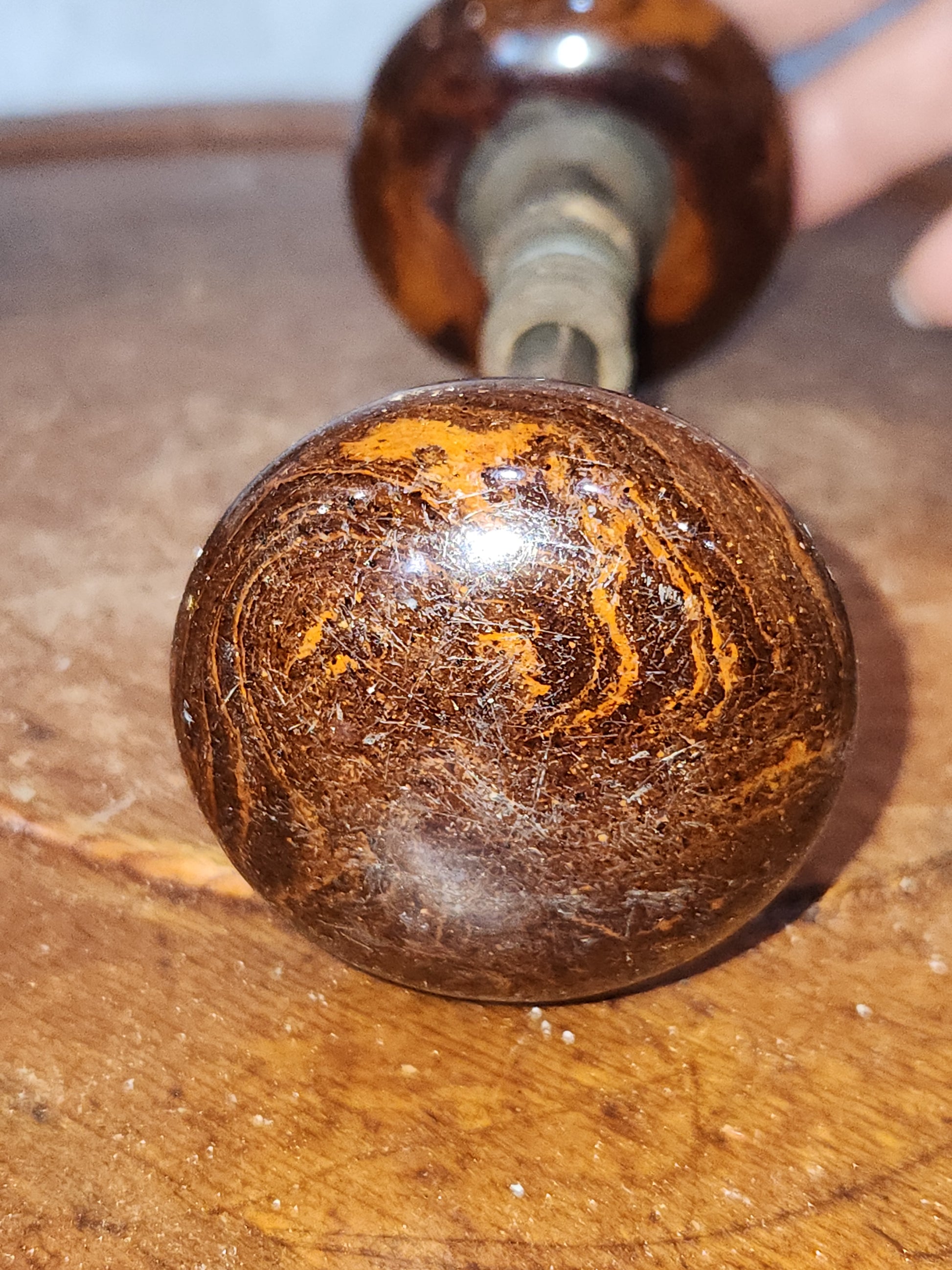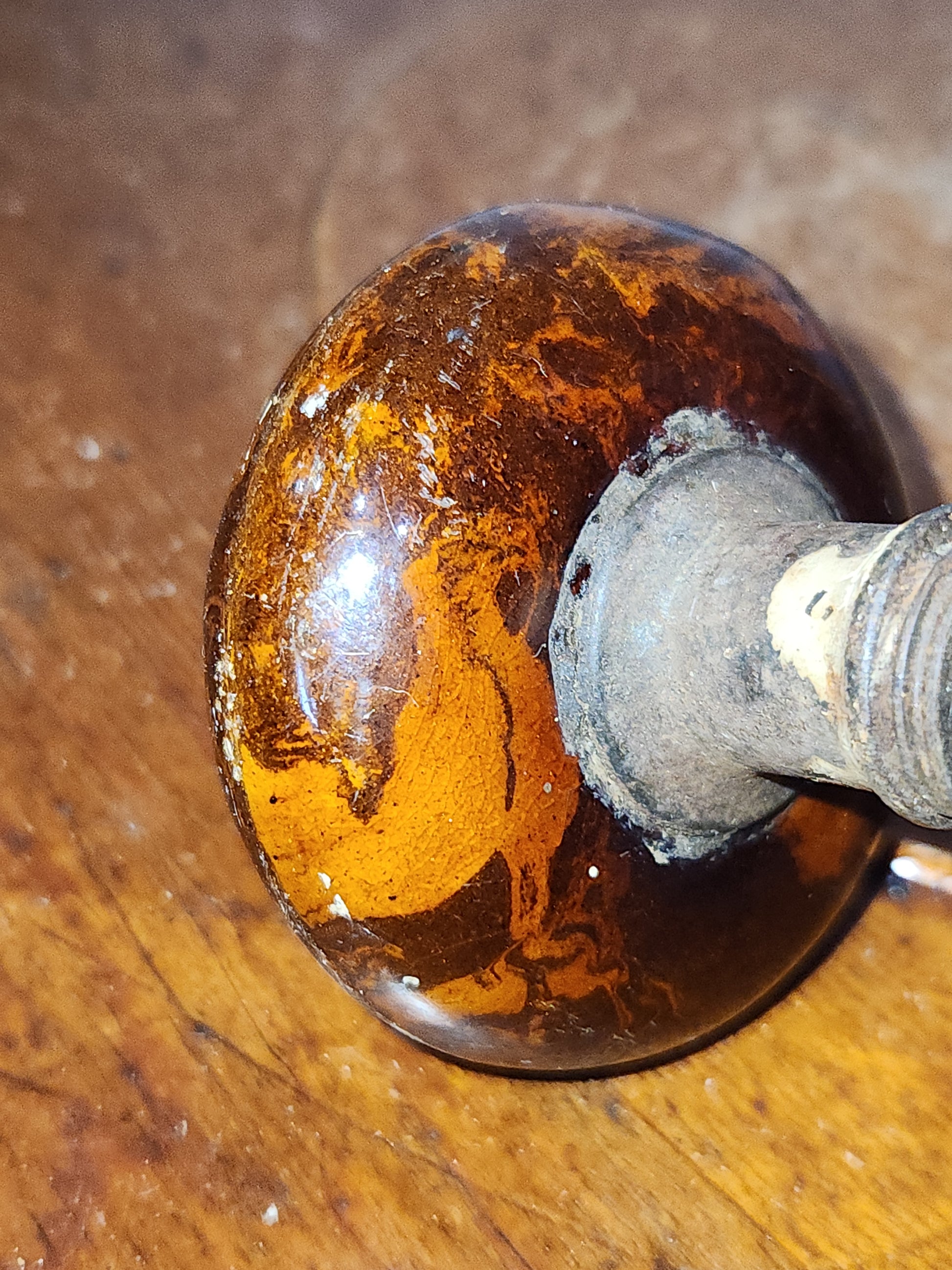 Antique Porcelain Brown Marble or Swirl Door Knobs attached to a stem kn17