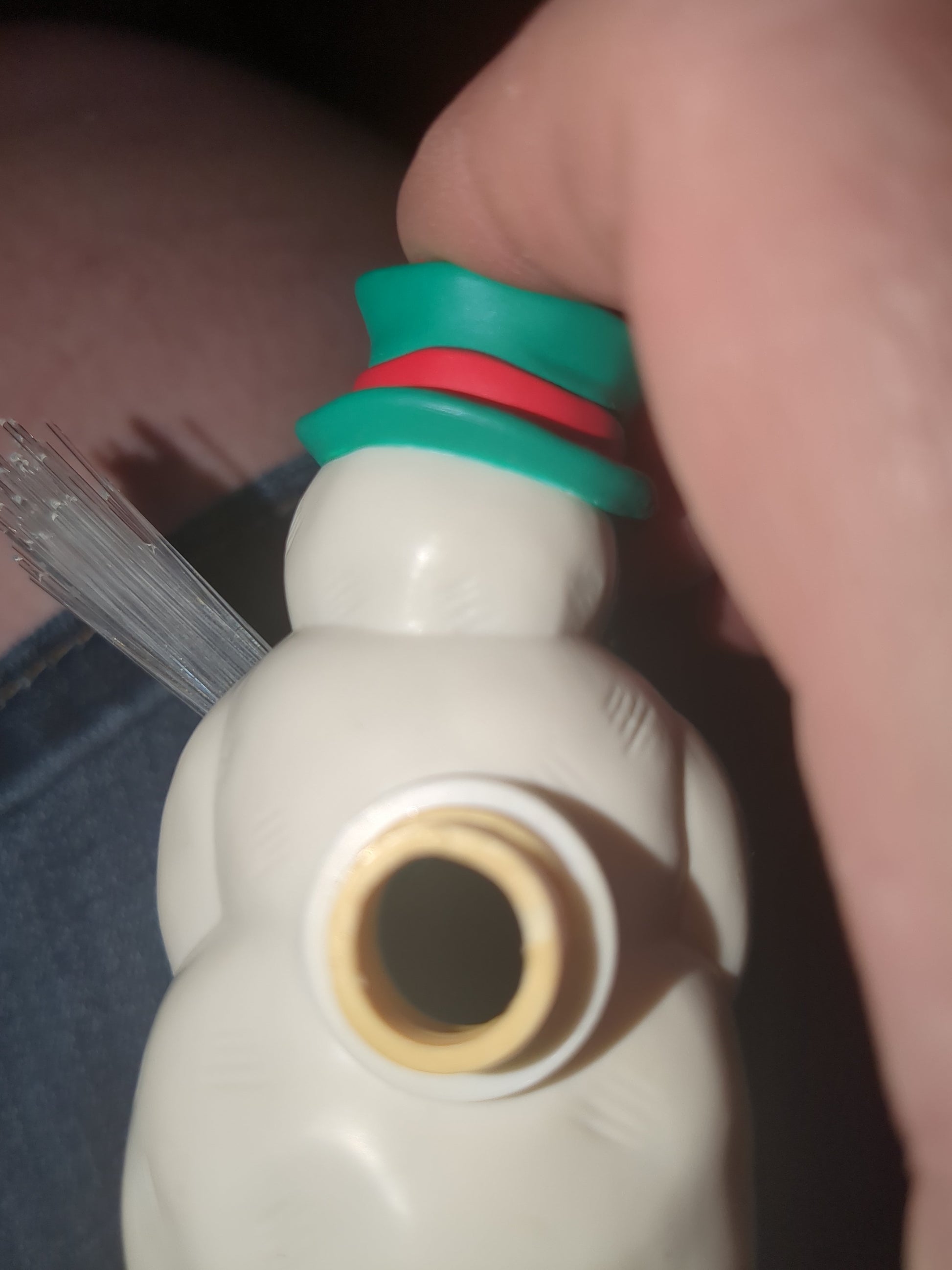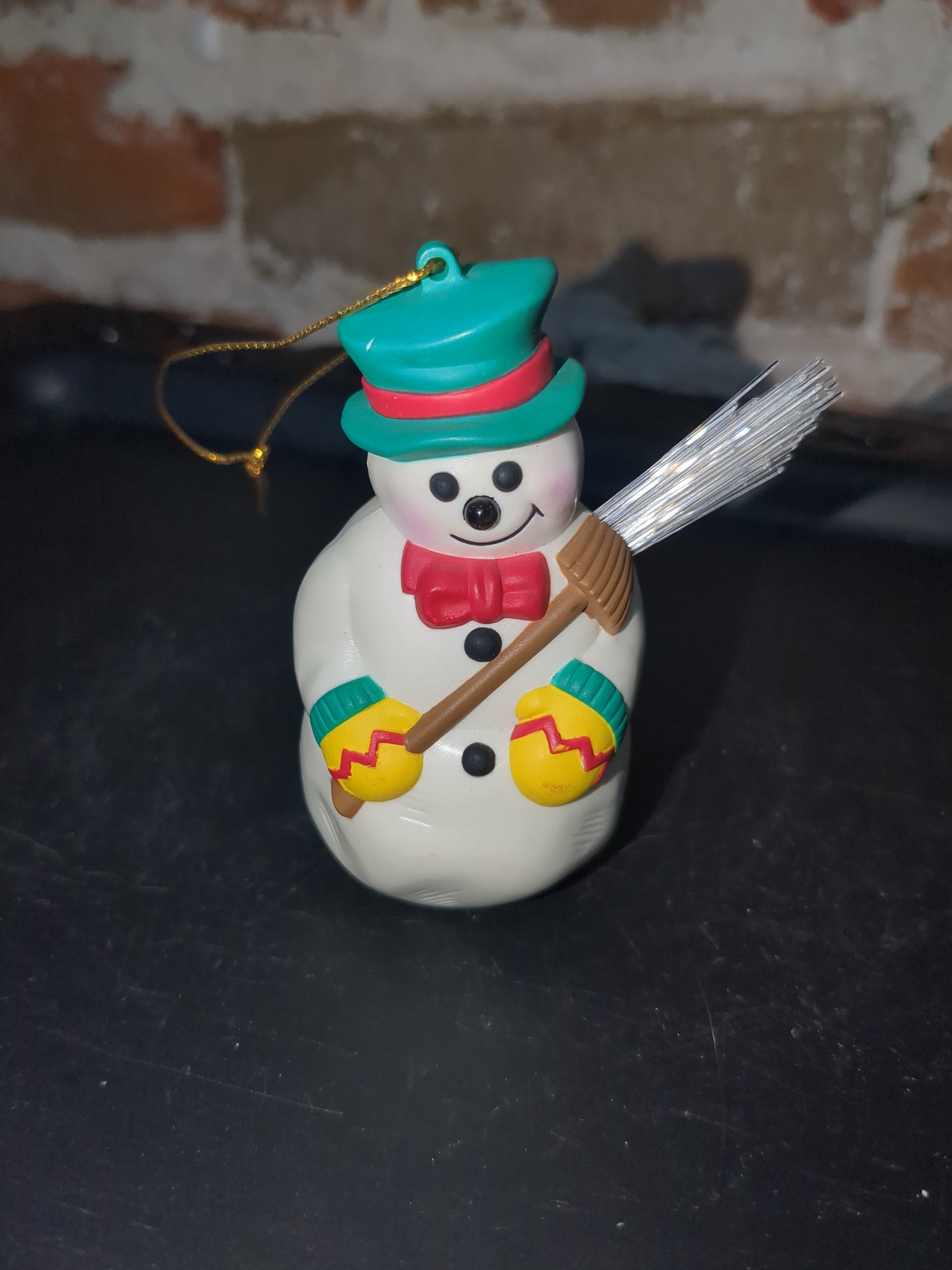 Avon Snowman Fiber Optic Light Up Ornament Light Cover Vintage. put a light in the hole in the back, his nose lights up and the fiber optic broom lights up.