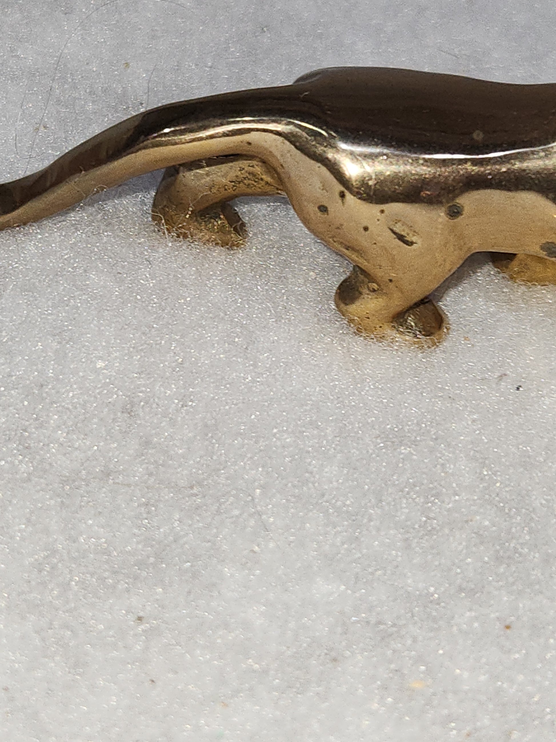 This is a vintage Brass lion. He is 4 3/4" long and 3/4" wide it weighs 9.5 oz without any packaging. I see no makers mark. Please see photos as they are part of the description