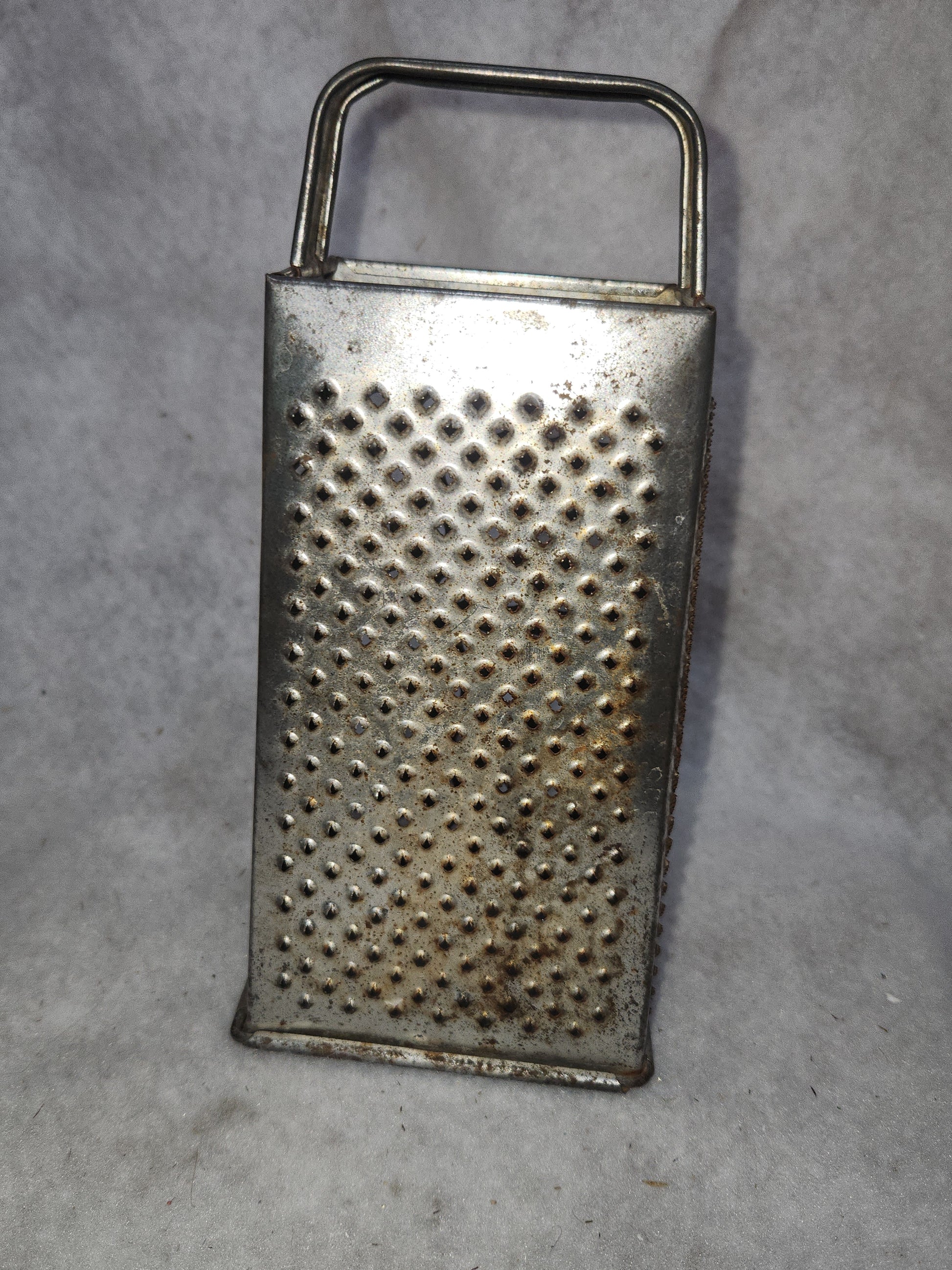 VINTAGE Bromwell Metal Box Grater Cutter Shredder Slicer has 4 sides patina Michigan City sh32