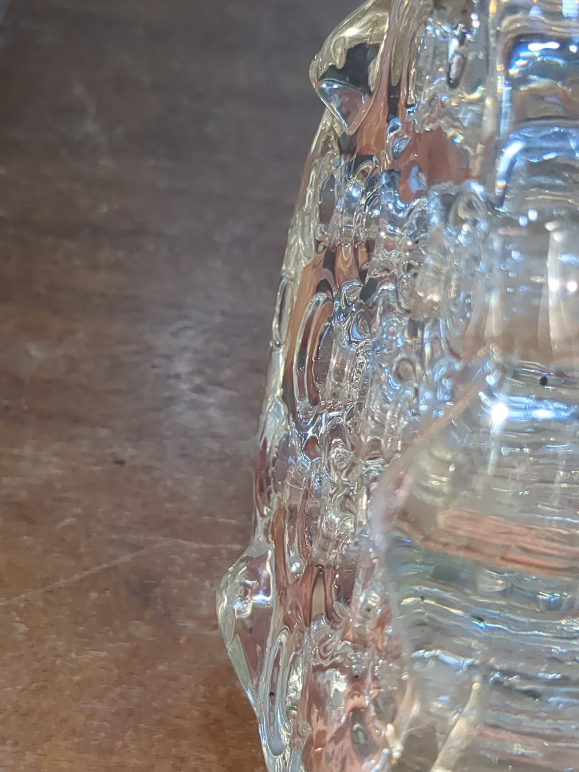 This is a vintage flower frog it's thick and heavy and it has feet on the bottom there are a few minor chips please see them in the photos as they are part of the description this is a very heavy piece