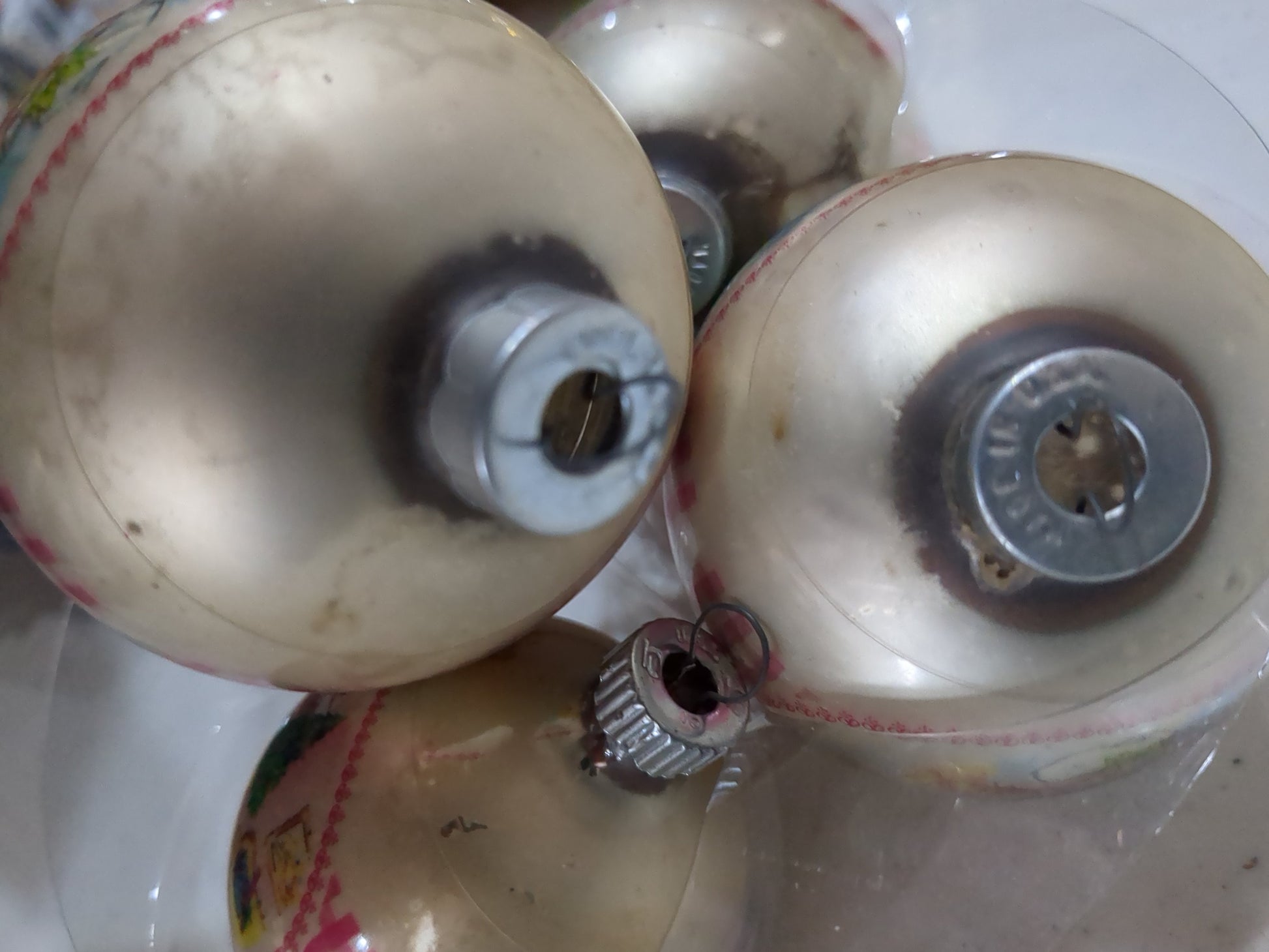 Vintage Coby Polly Pal Glass Christmas Ornaments set of three matching 3" and one 2 1/4" USA Made