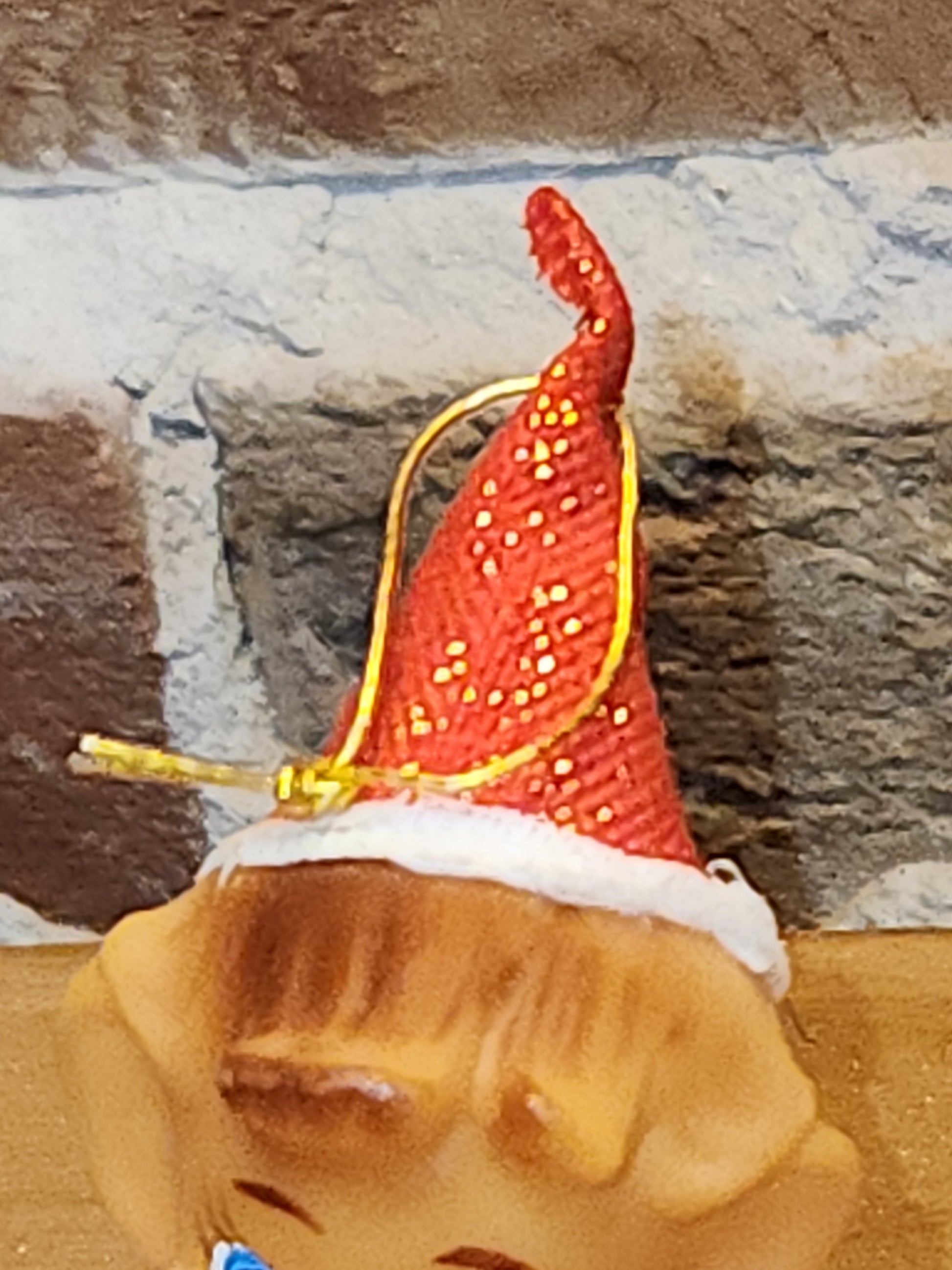 This Pixie is in good condition with vibrant colors. He has a sparkly hat and scarf. He has a sparkly bow on his hands. He is 4 1/2" tall. He has his original triangle sticker that says Delta Japan. Please see photos as they are part of the description