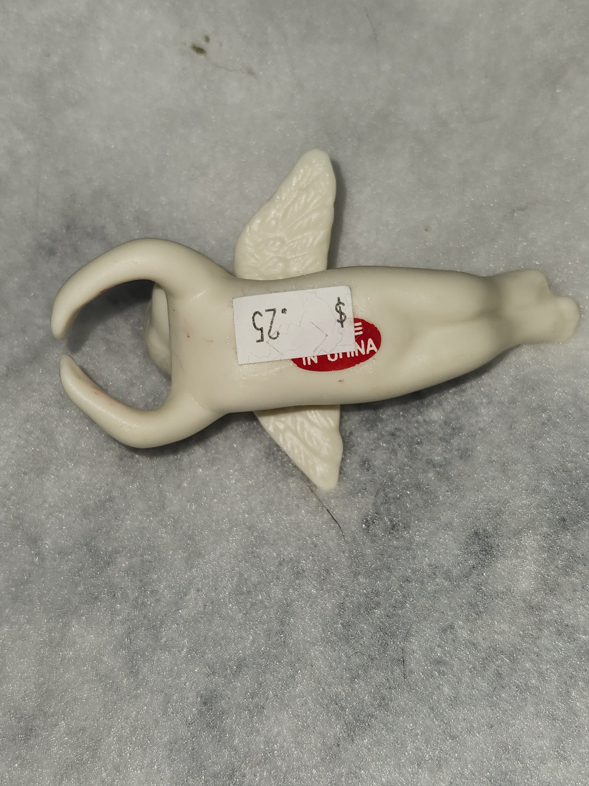 This is a set of flying Cherub Angels Fine Bisque Porcelain Candle Huggers. These are in great condition. I see nor feel any chips or cracks. No discoloration. They are light and feel fragile. The are looking at each other and so beautiful. Please see photos as they are part of the description.