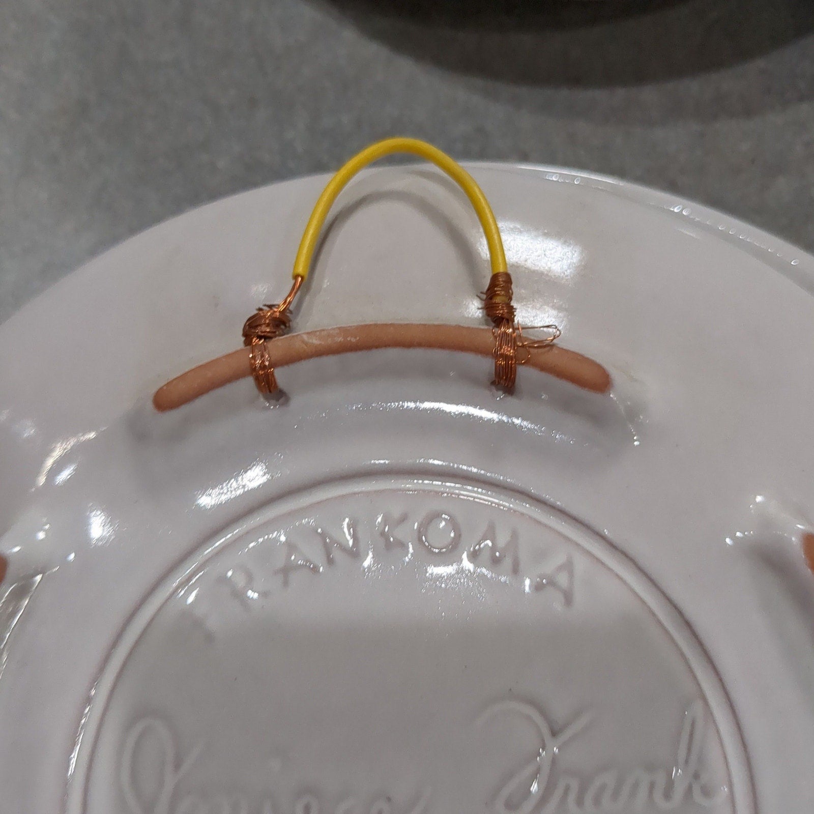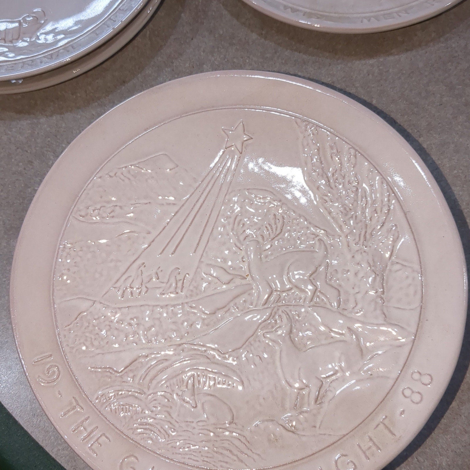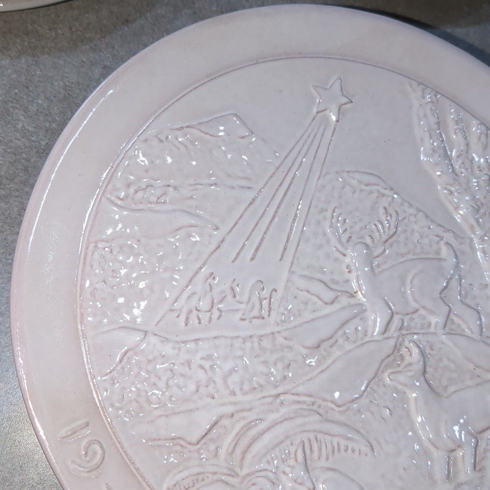 Frankoma Christmas Plate from 1988. Crafted from white glazed pottery, this collector plate features a beautiful round shape with a diameter of 8.25 inches. This plate is produced using the pottery technique and is a great representation of American culture. The plate is in good condition with no chips or cracks.
