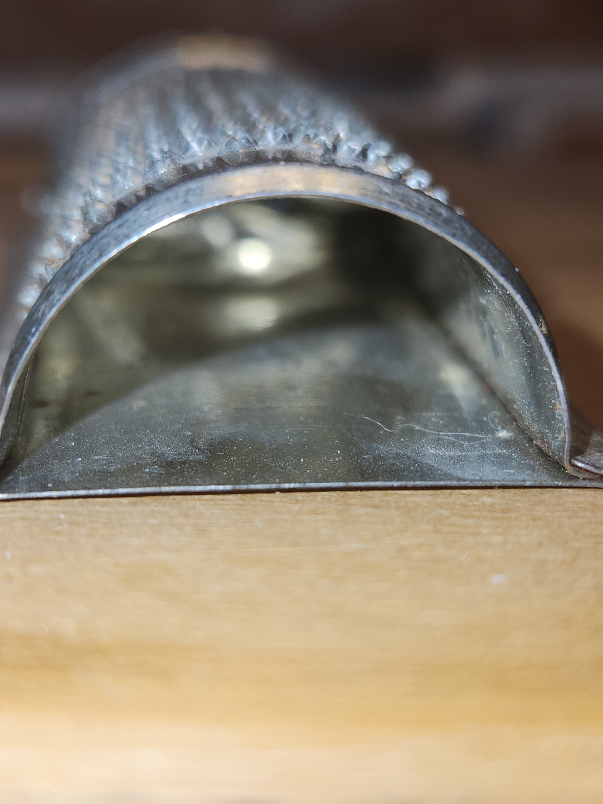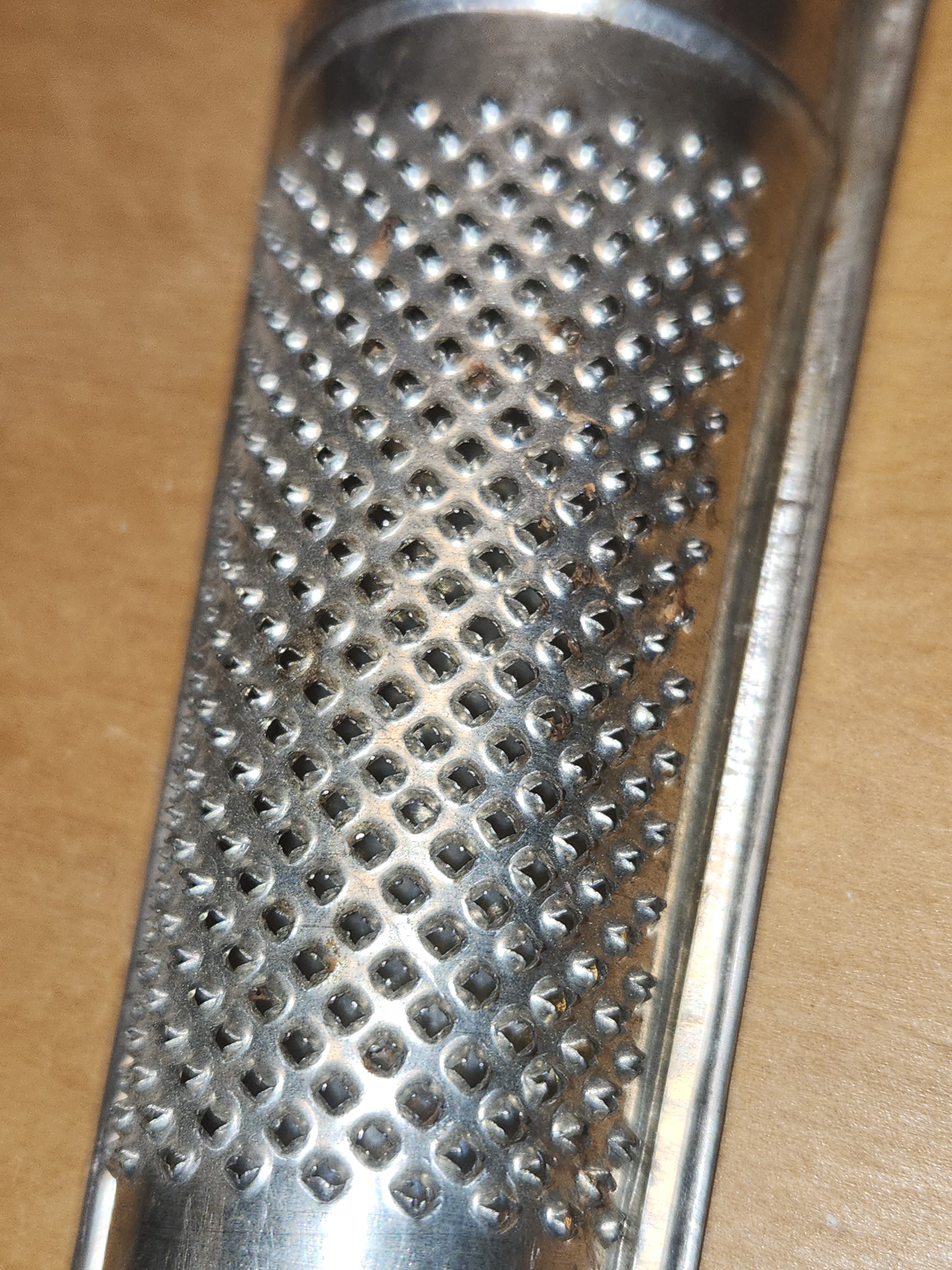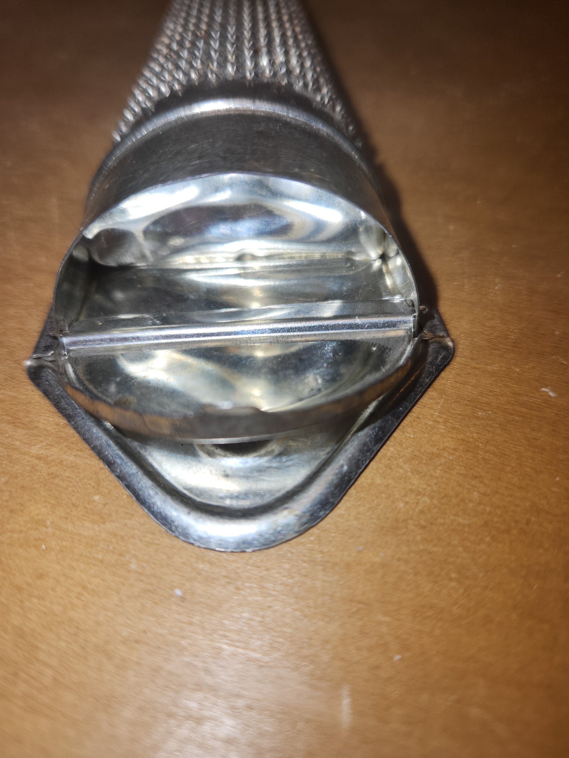 This is an adorable little grater in vintage good condition. It is nearly 5 1/2" tall, just under 2 1/4" wide at top and 1 1/2" at the bottom. It is closed at the top and open at the bottom. It has made in W Germany on the back. It has just a bit of patina. Please see photos as they are part of the description and show you what you will recieve.