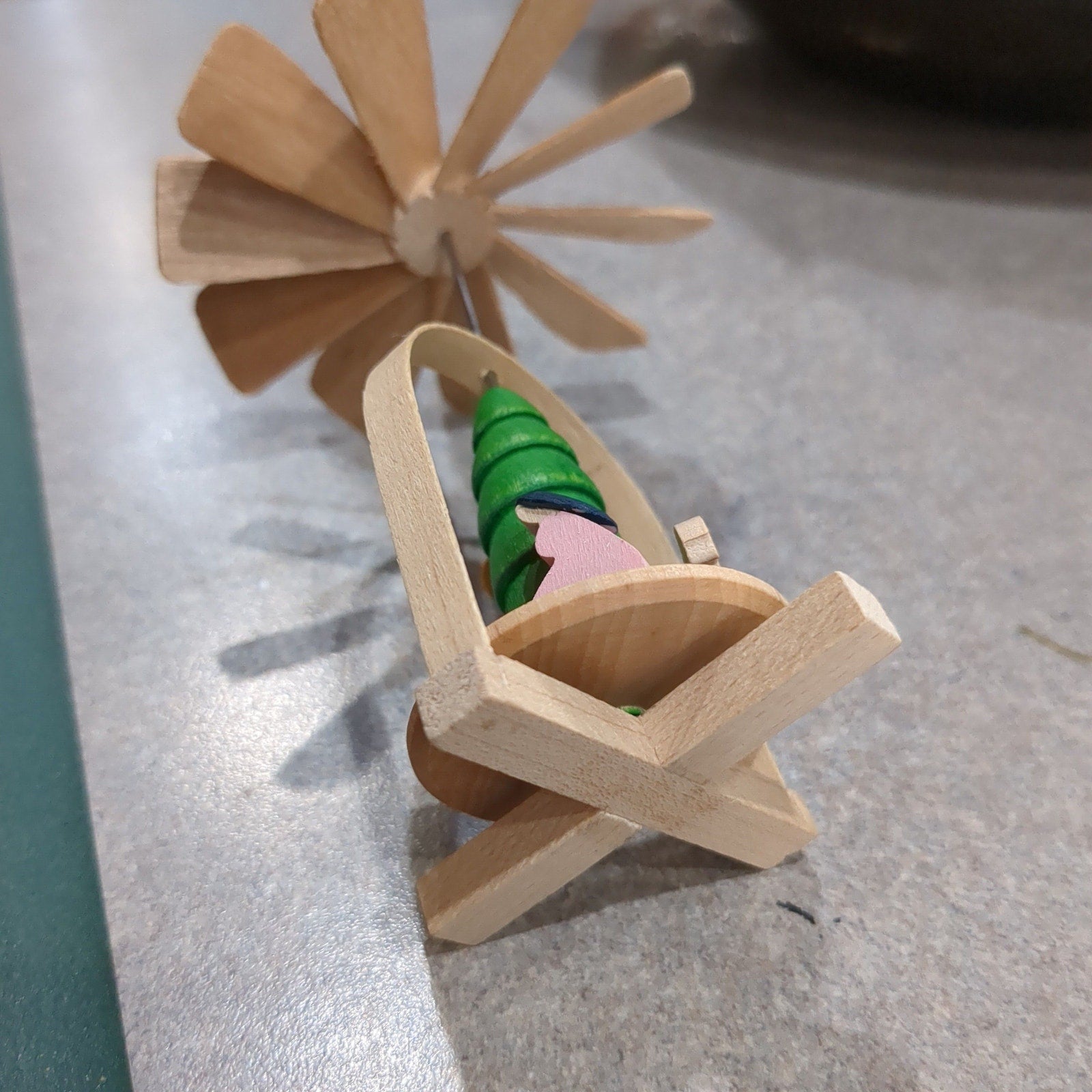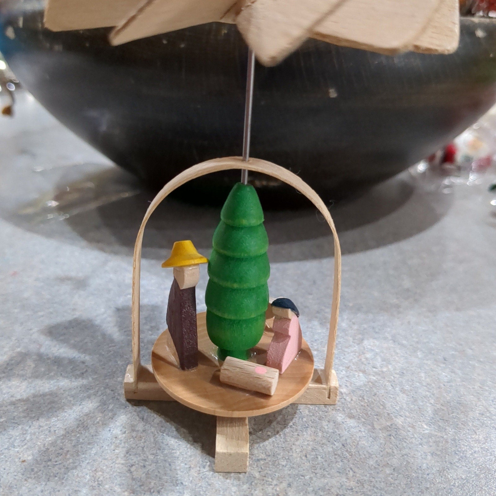 This is a windmill ornament with nativity scene. Blow across the top and the inside turns. It is in great vintage condition, I see nothing wrong. Please see photos as it is part of the description.