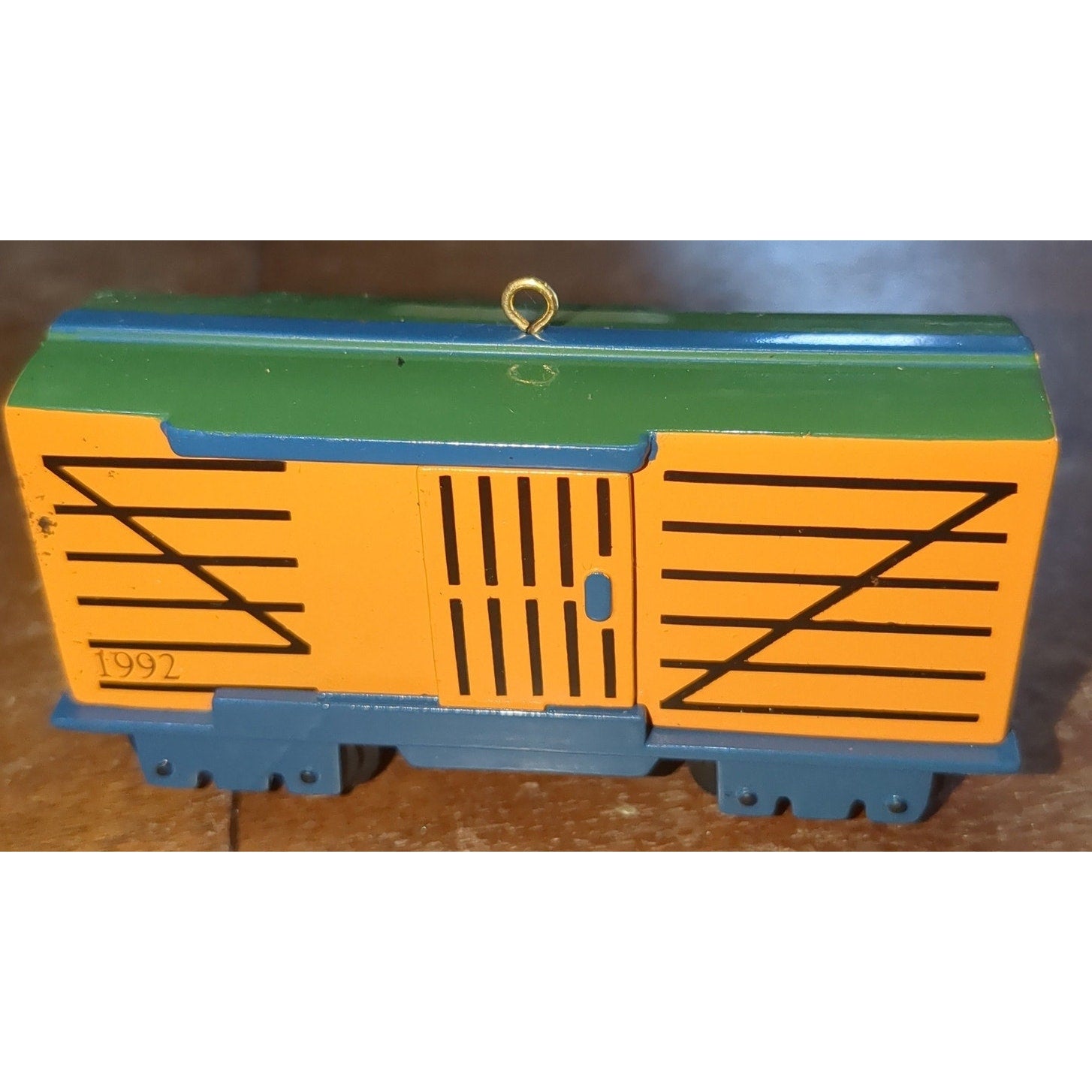 Vintage Hallmark Christmas Ornament Skyline Stock Train Car cast metal 1992