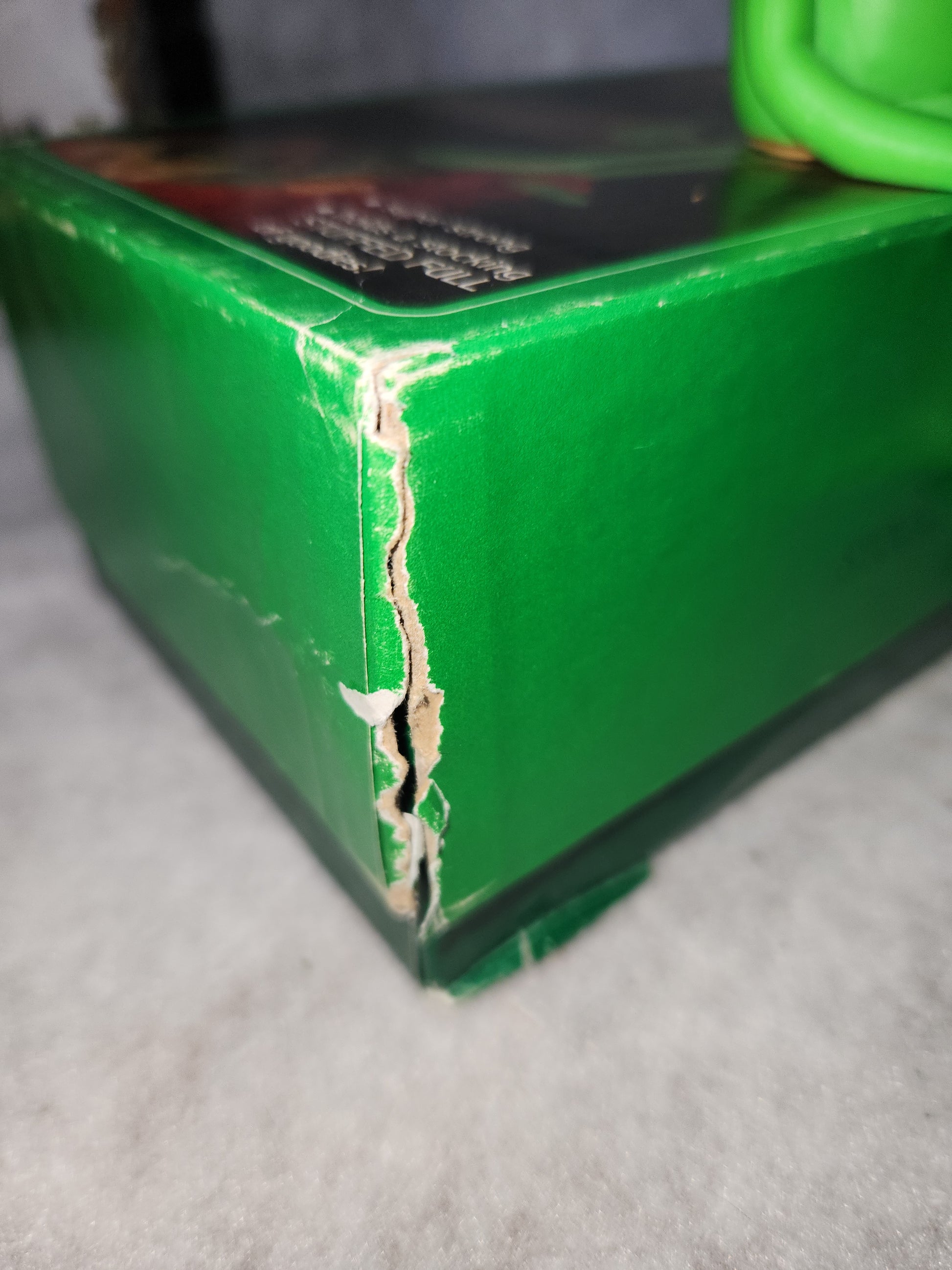 This Stocking holder is in good condition. The only issue I saw was some paintloss from the white in his eyes. He is original box, but the box is in fair condition. It has rips and shelf wear. Please look at photos closely as they are part of the description and shows you what you will receive.