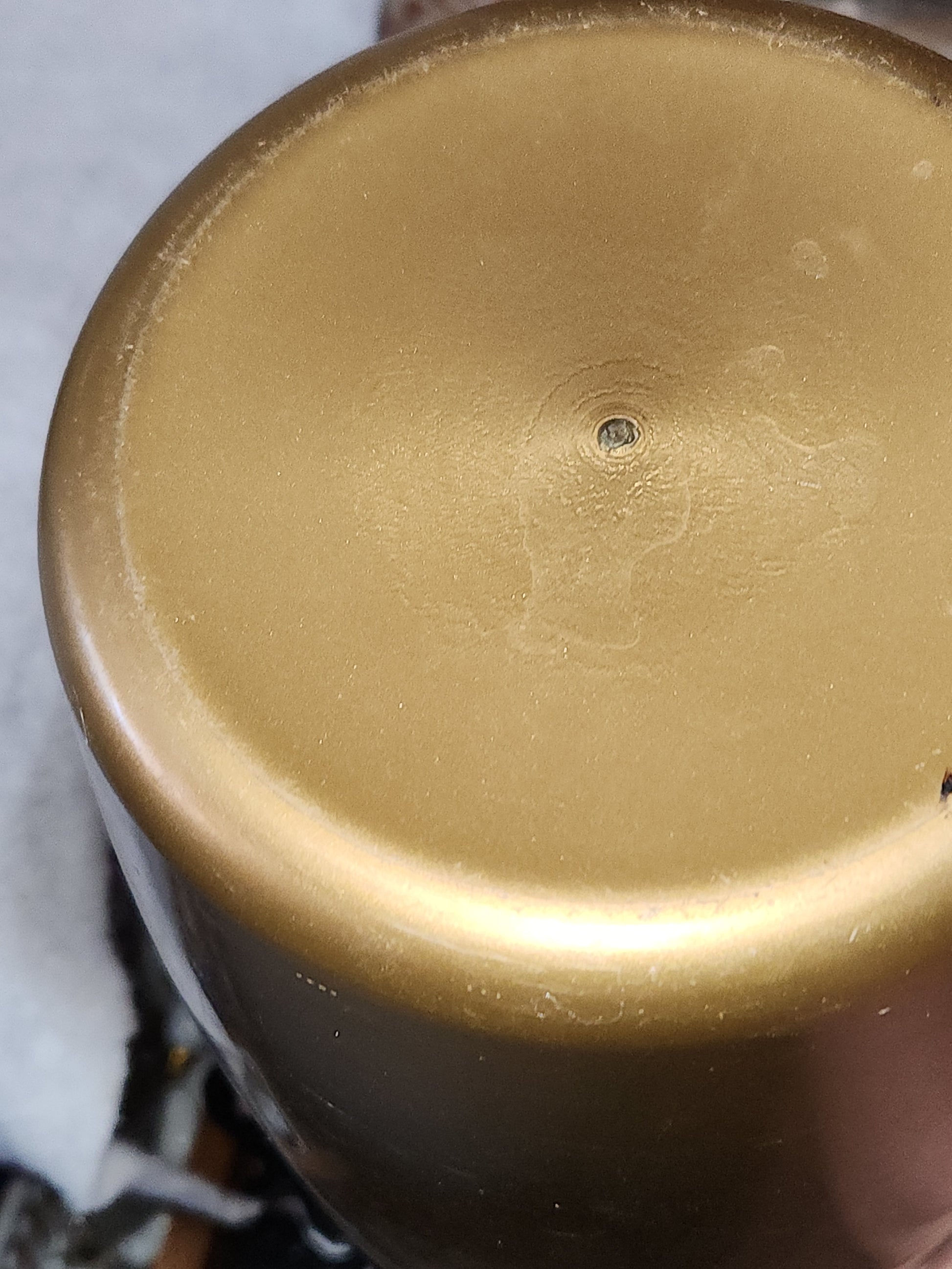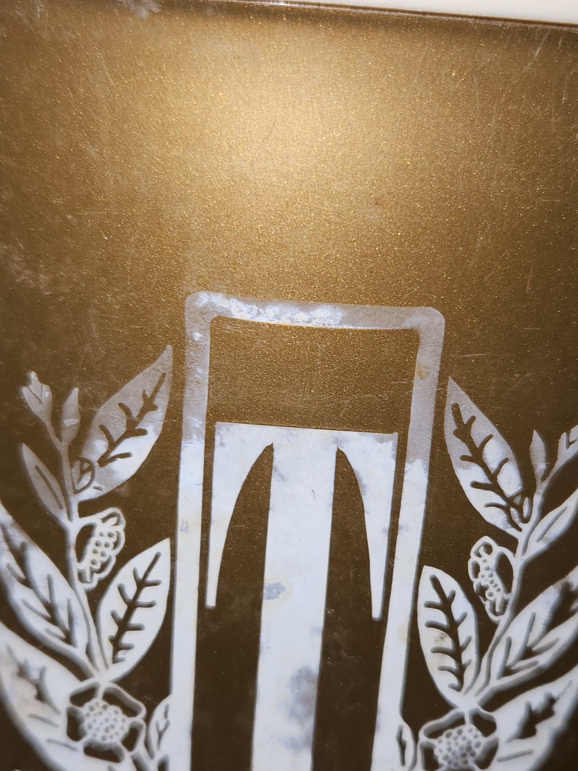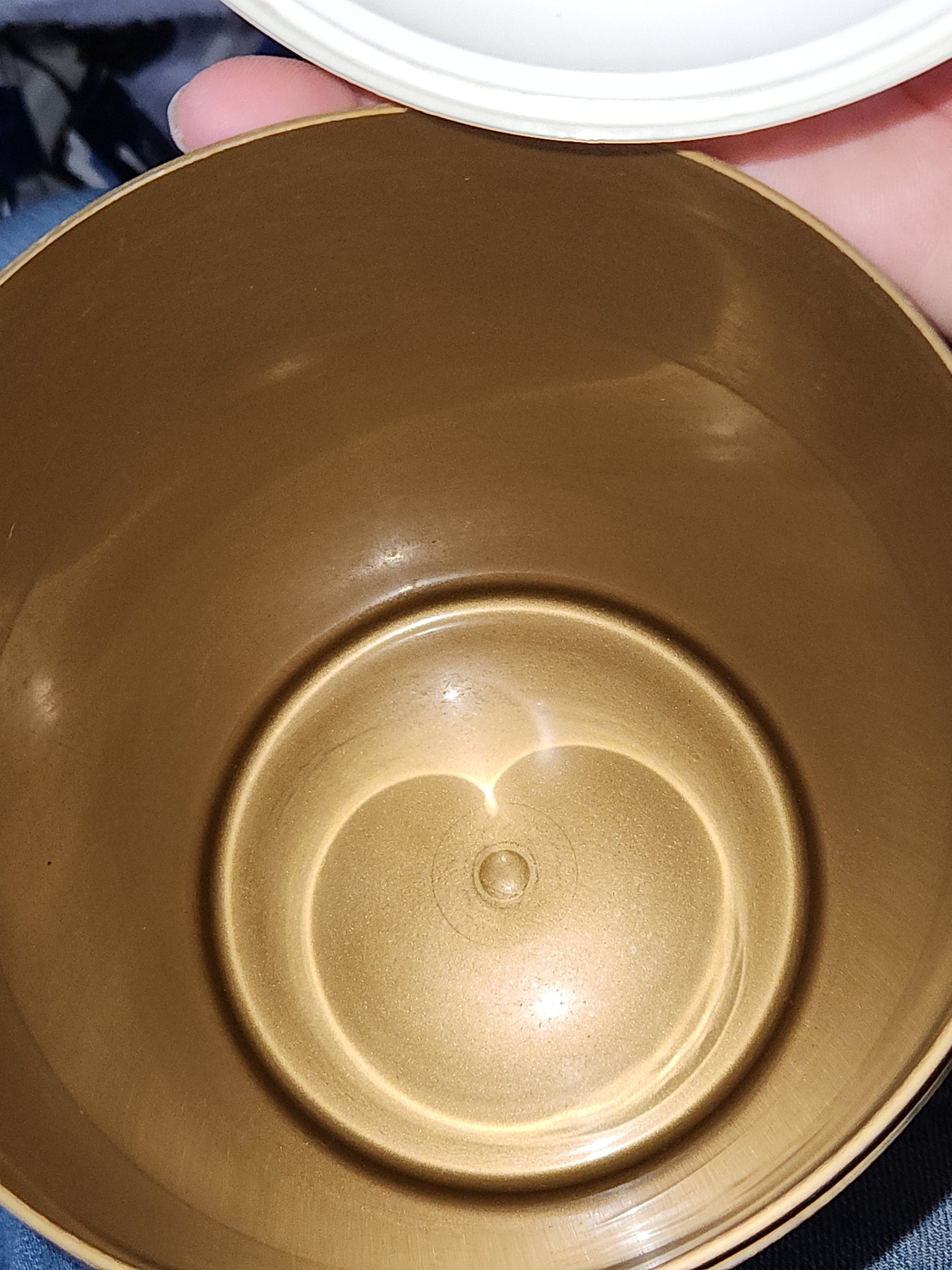 This set condenses down to fit into largest canister. A light bit of fading of the font on front. The two smaller lids area but more yellowed than the biggest one. Please see all photos as they are part of the description.