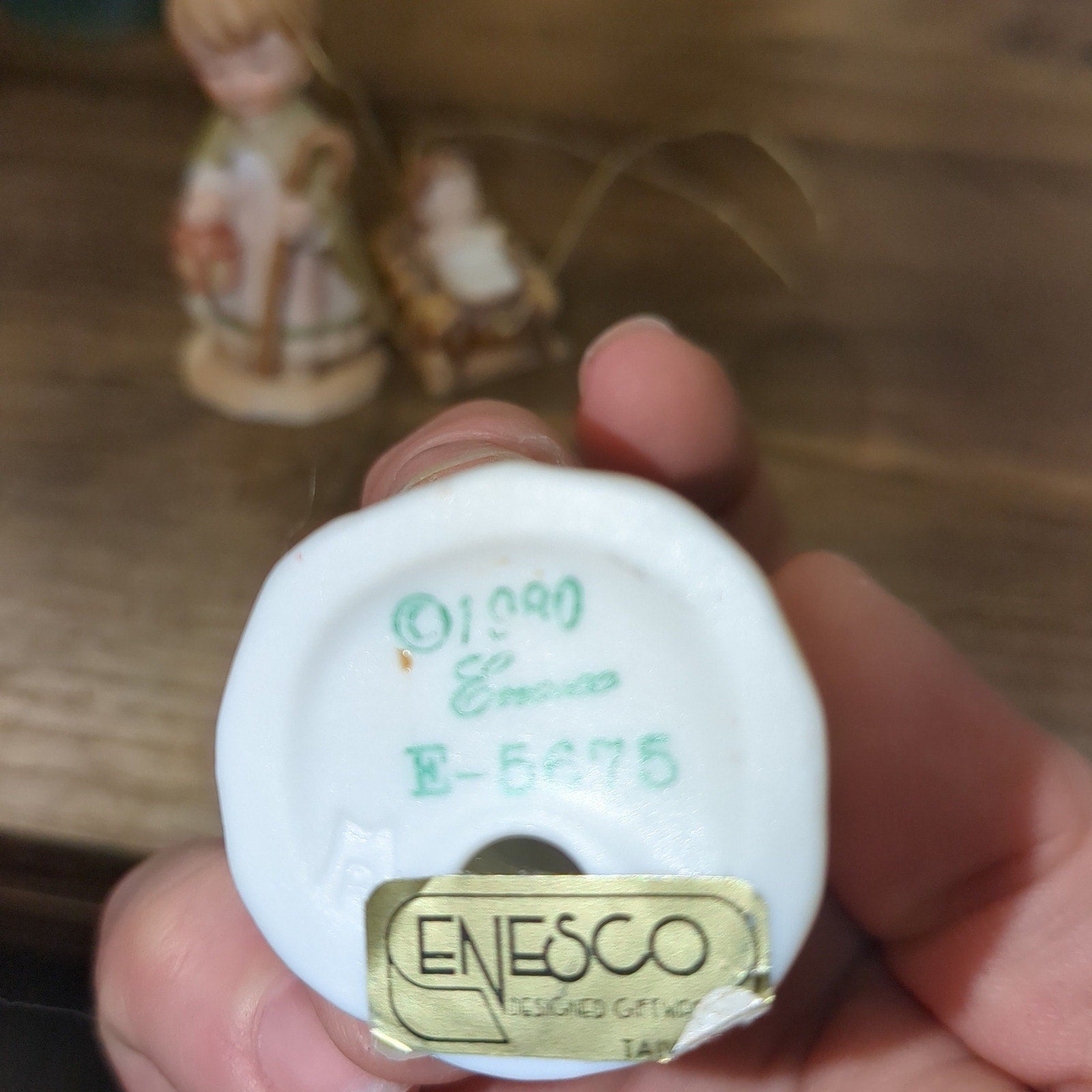 Enesco Little Bible Friends by Lucas Nativity Ornaments. forget about dated 1980 ENESCO on the bottom and each piece has it's a natural sticker and each piece has Lucas on it. they are in great condition they do not have a box. Please see photos as they are part of the description.