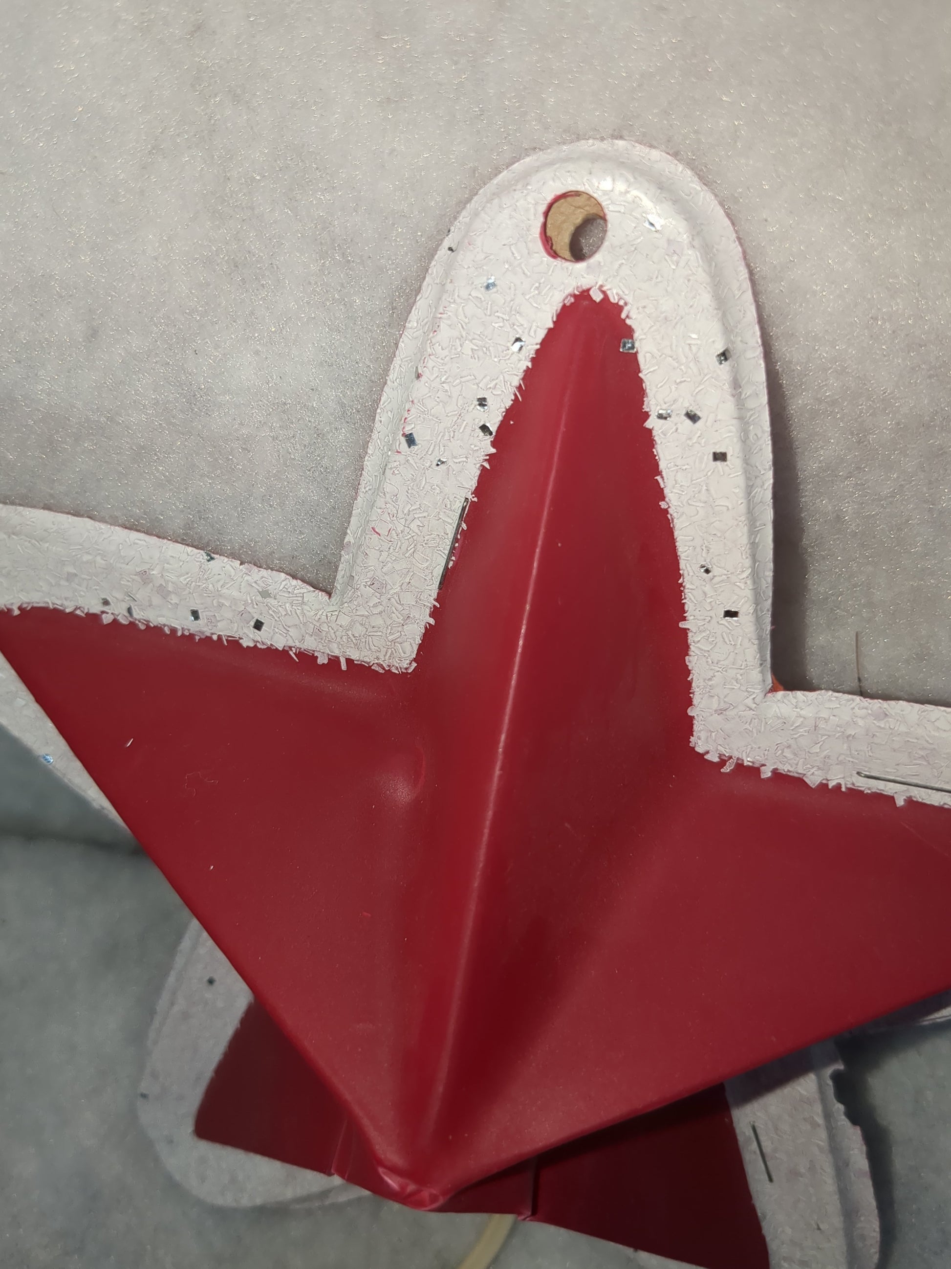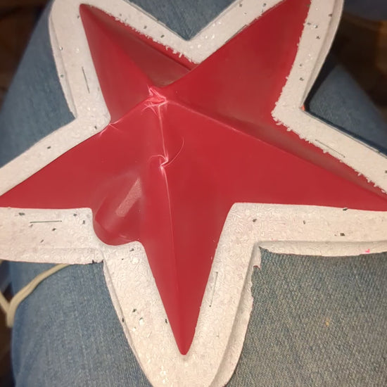 Vintage possible Noma GloIite illuminated Christmas Tree Star Topper that works. The star is plastic. It is not in perfect conditions, it has some cracked potions of the white glitter and the red star has some dents. It is really a neat piece and needs to find a tree and someone to love it! Please see photos as they are part of the description.