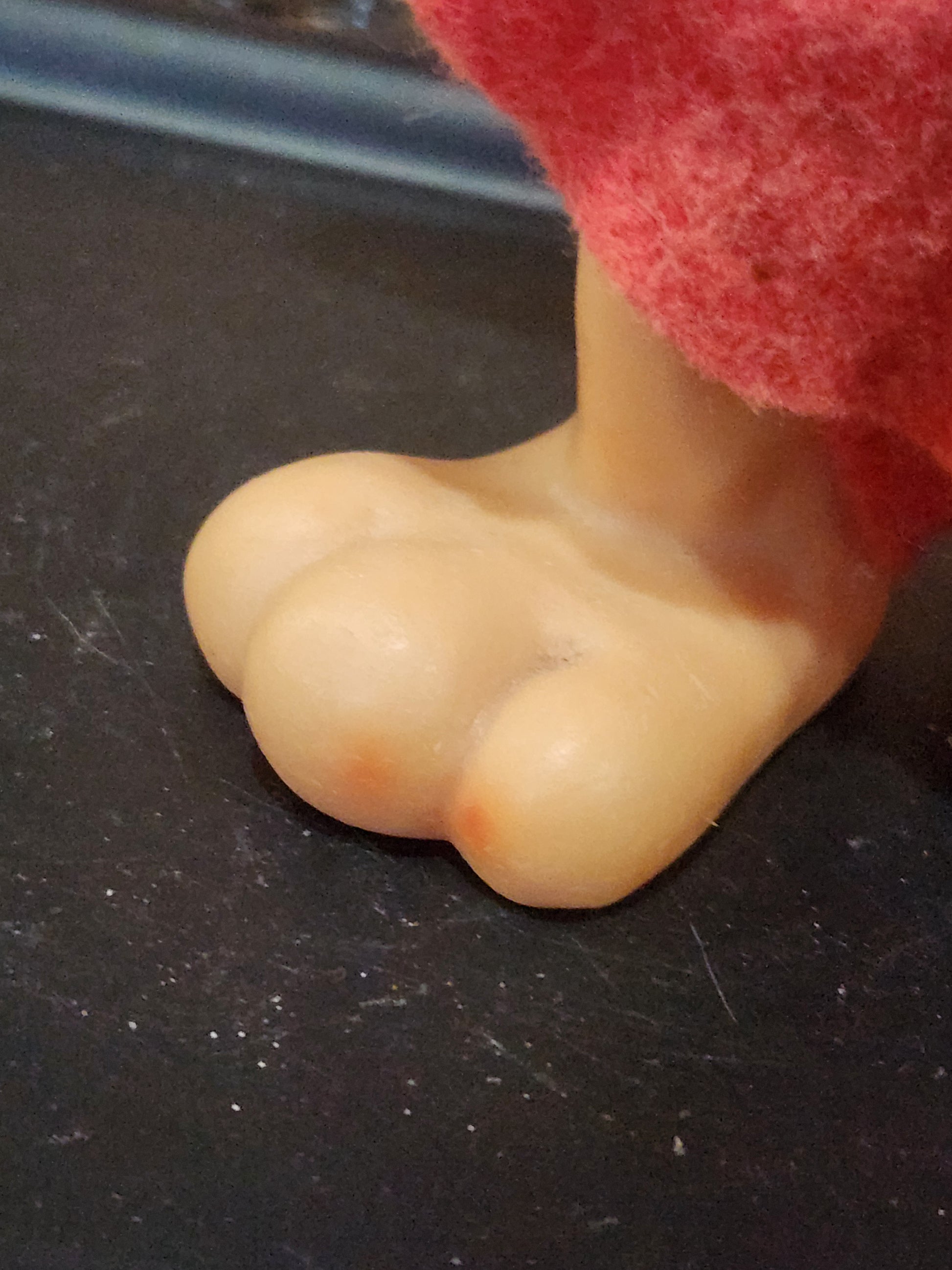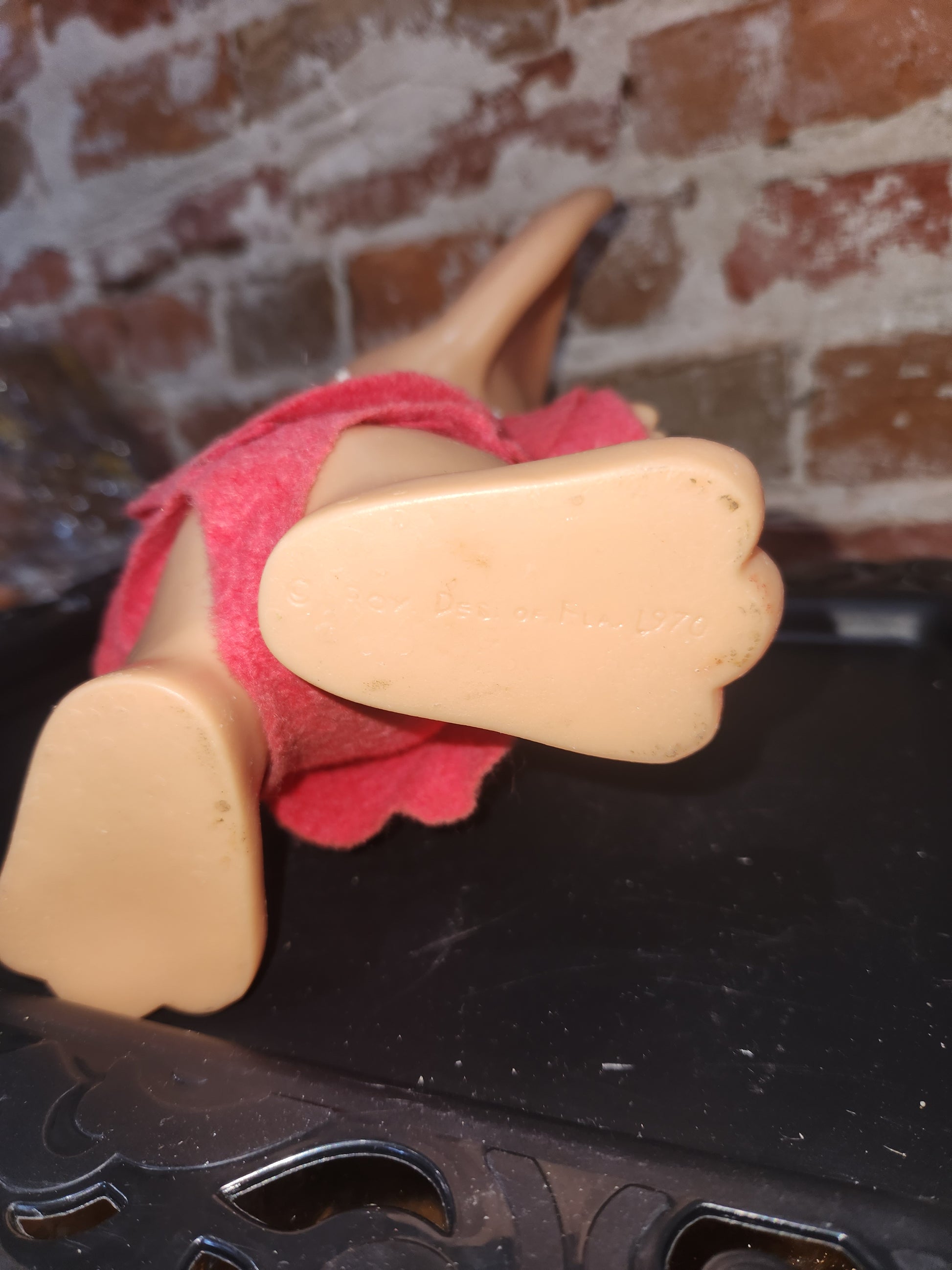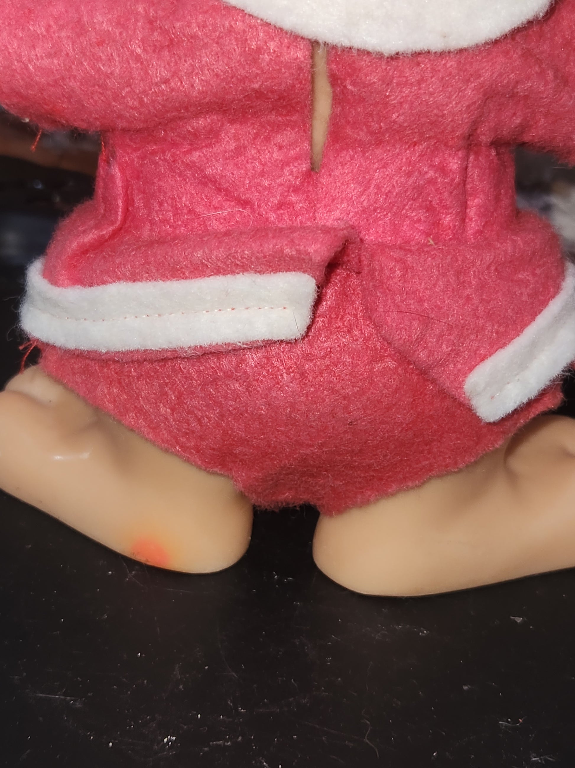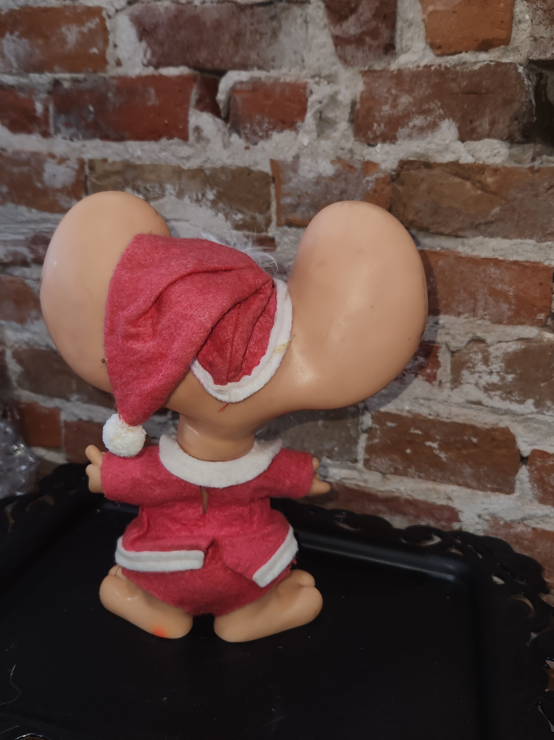 These mice were made by Roy Des Fla in the 1970s. They are 10 1/2" tall. They have very large ears and Fur on the top of their head. For the most part, they are in good vintage condition. There is some red paint or marker on different parts of each of them, I am not quite sure what it is and I do not know if it will come off, I did not want to damage them. Mr. Claus is missing his belt. Mrs Claus is missing her glasses. Please see the photos as they are part of the description.