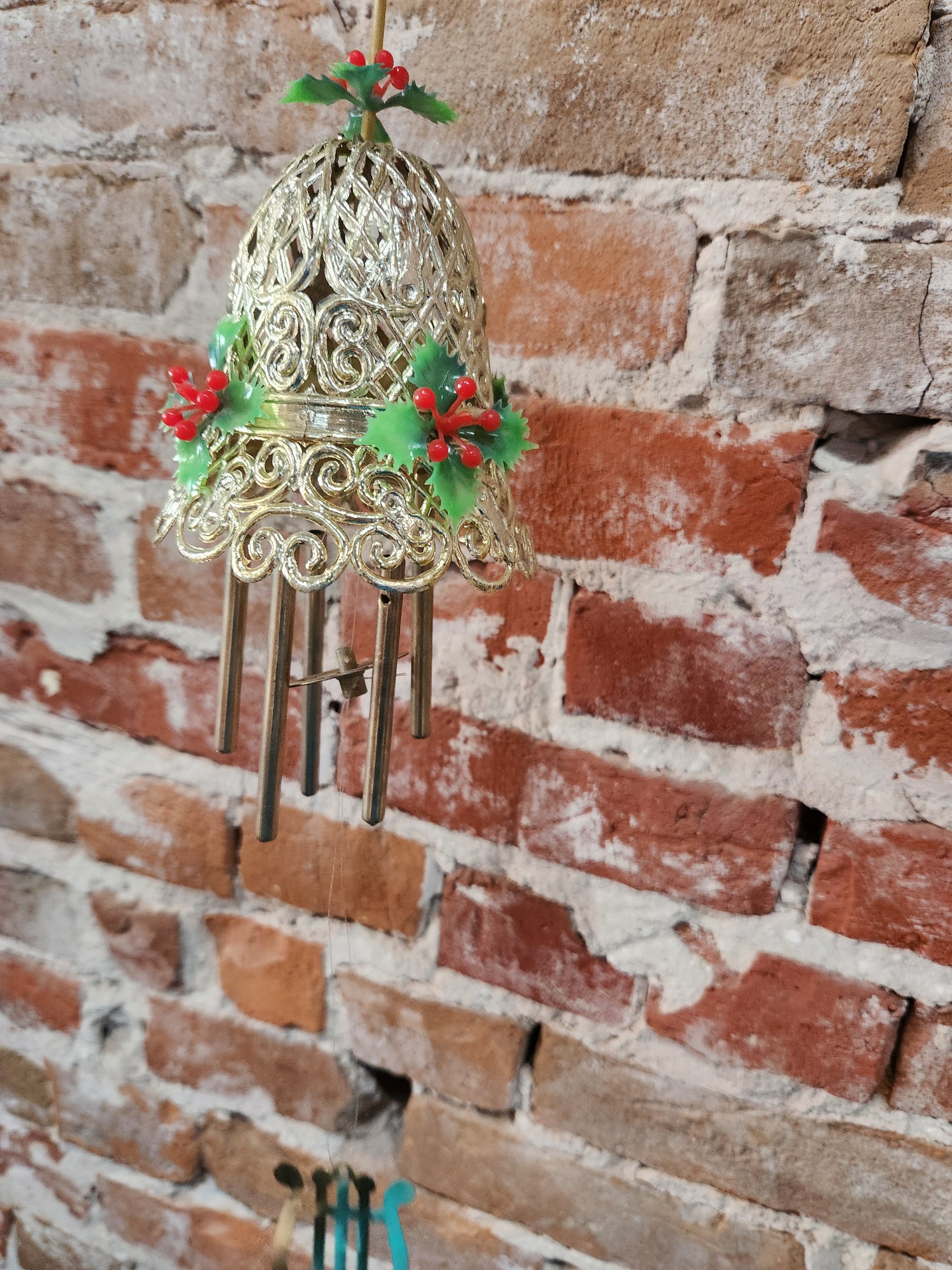 Vintage plastic filigree bell windchime Christmas 0204