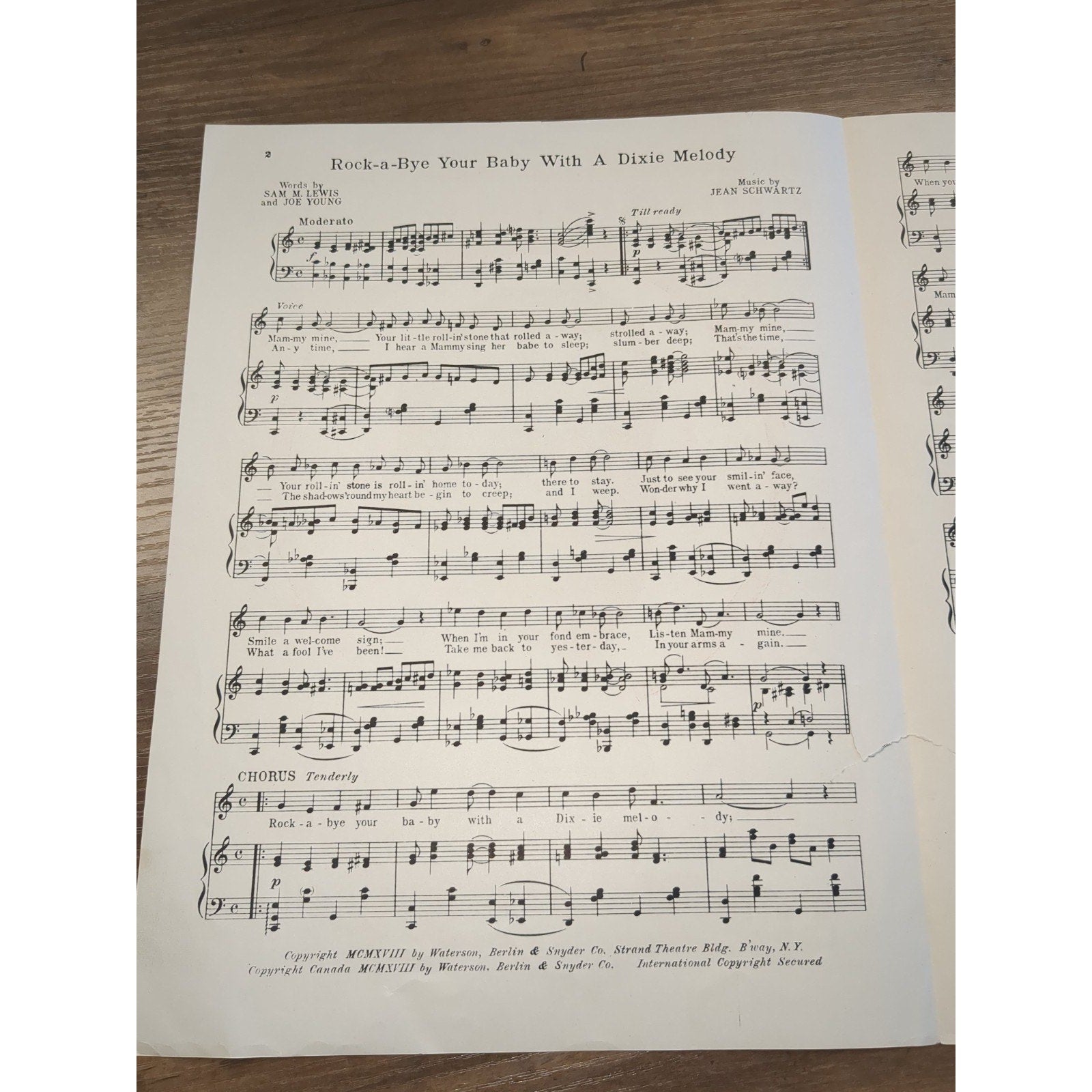 VINTAGE SHEET MUSIC - Rock A Bye Your Baby With A Dixie Melody