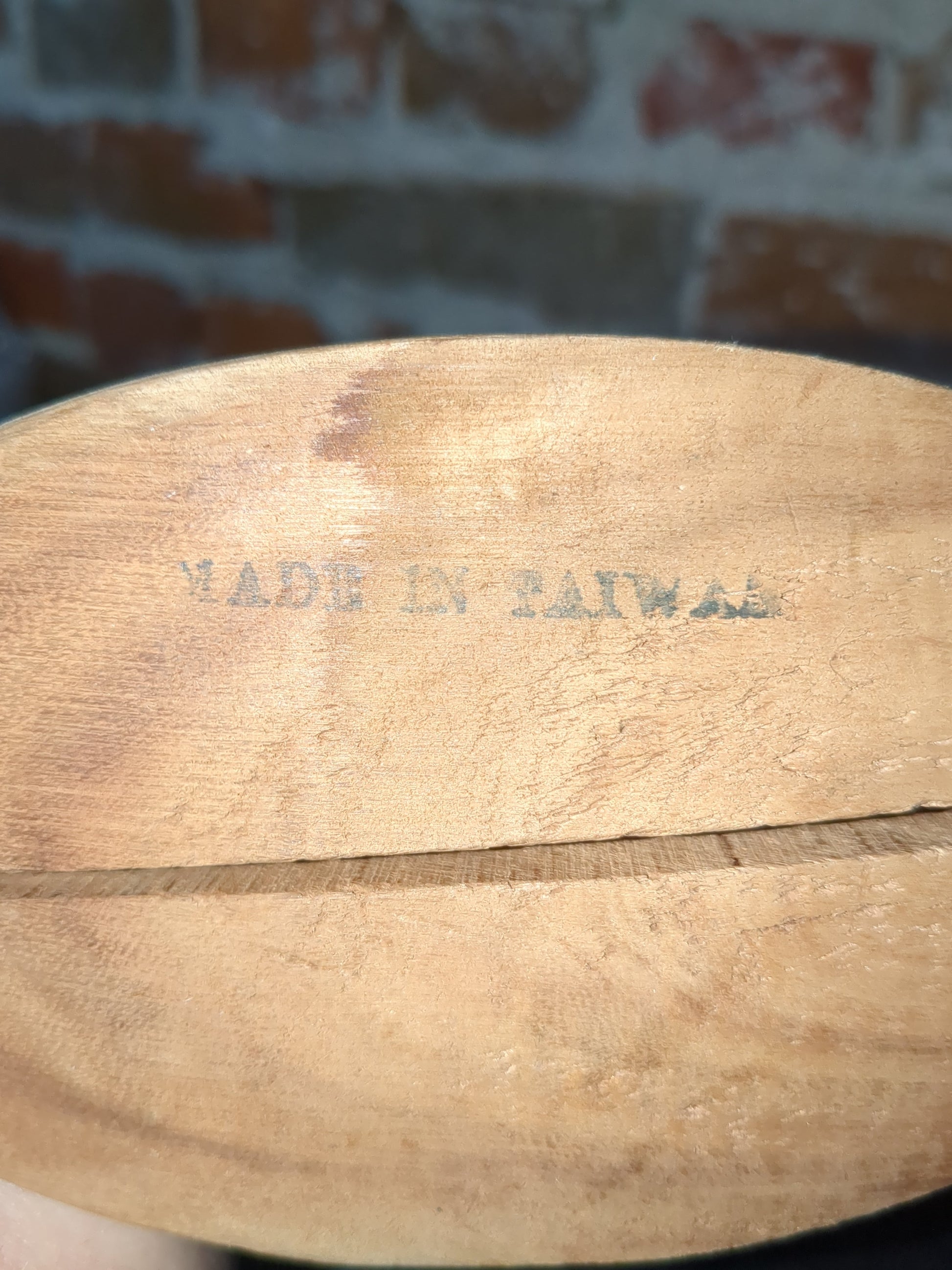 This wooden shoe stretcher is in good condition. It has all its parts. It functions normally. On the top it is stamped with size 7D to 11a and men's regular. On the bottom it's stamped with made in Taiwan. Please see the photos as they are part of the description.
