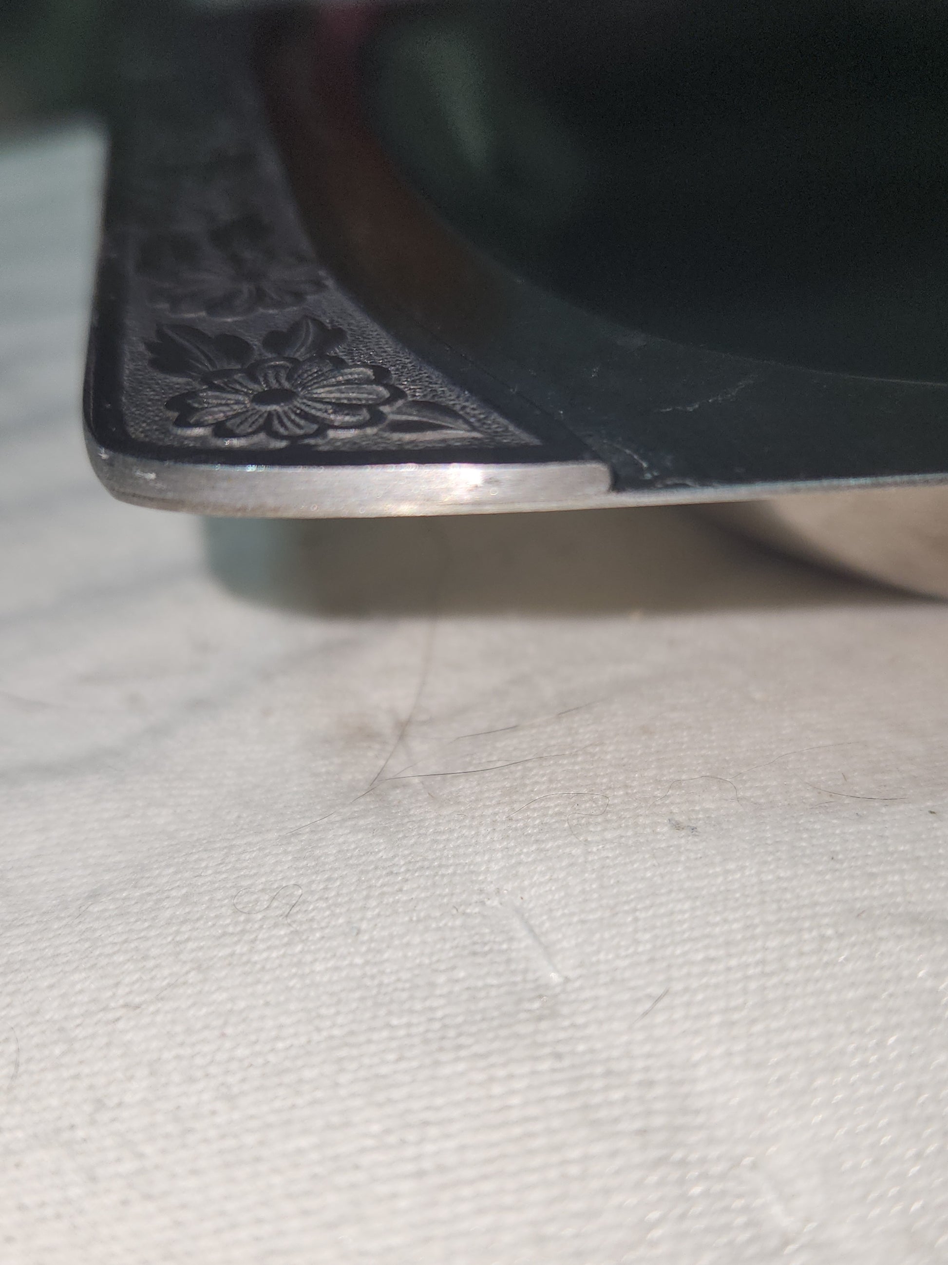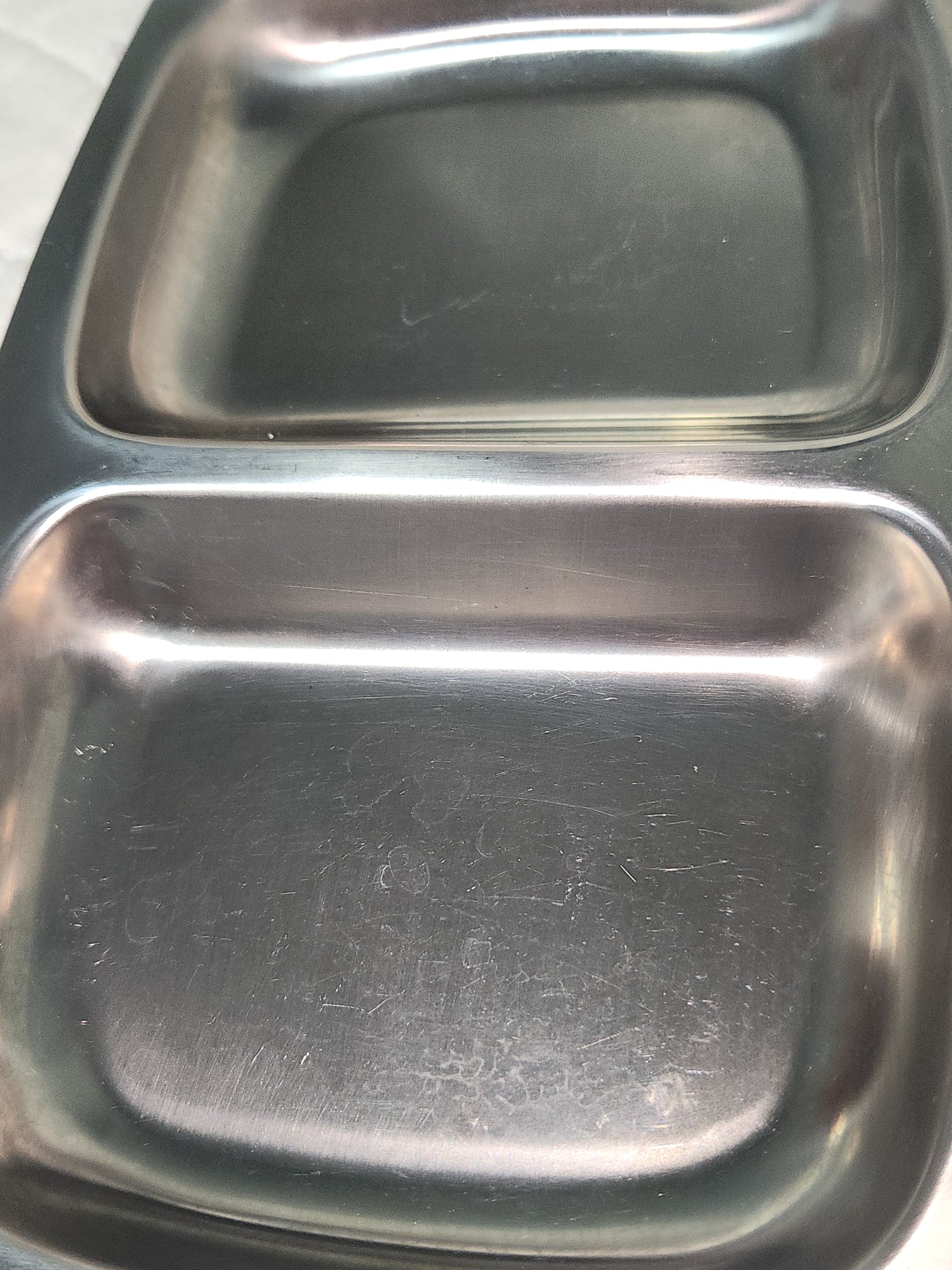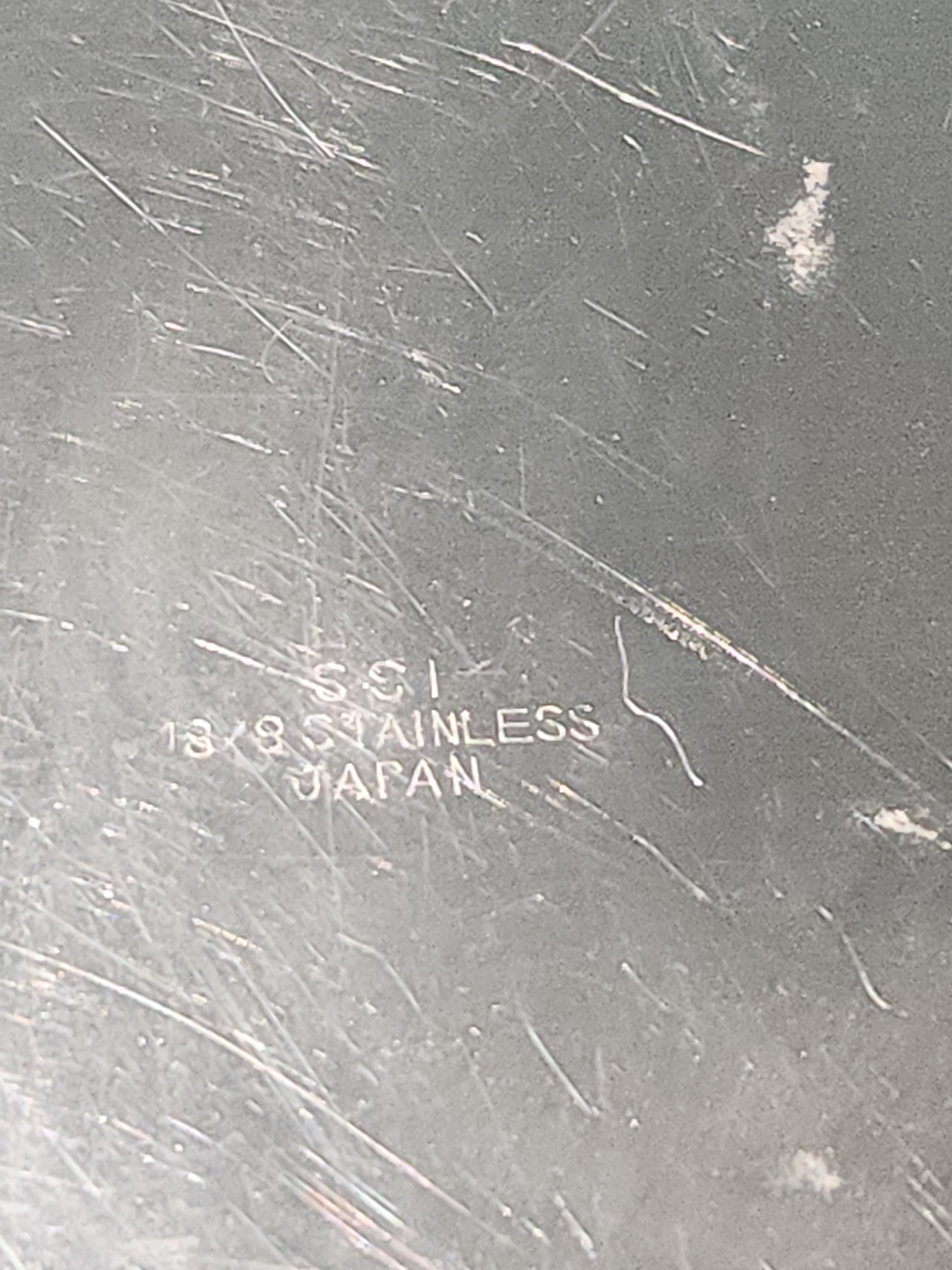 This tray is in good vintage condition with a few minor scratches. It has beautiful flower details on the edges for handles. It is stamped on bottom with sci 18/8 Stainless Japan. Please see photos as they are part of the description