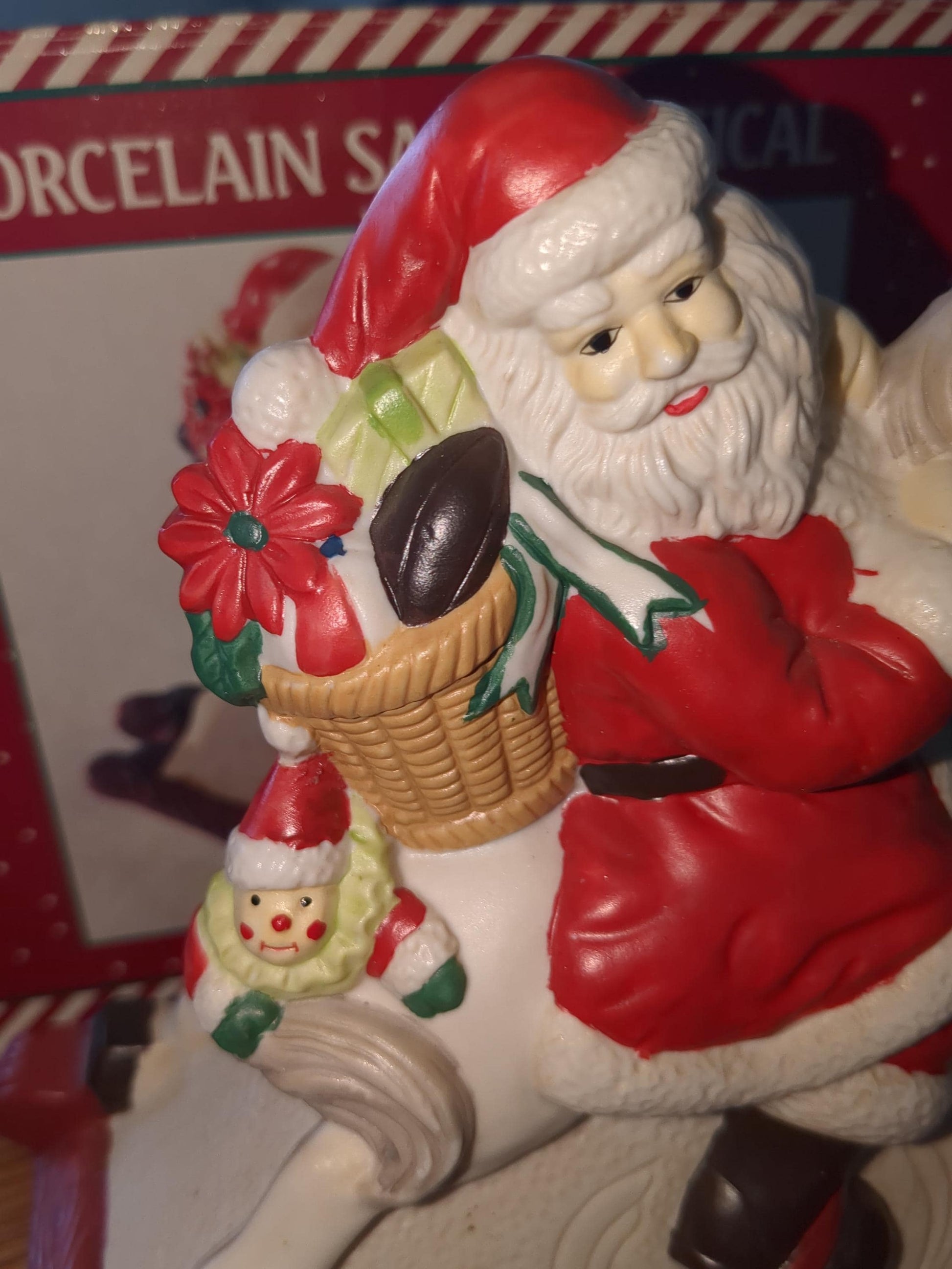 Vintage Santa Porcelain Rocking Horse Music Box for Christmas. made in Taiwain s45