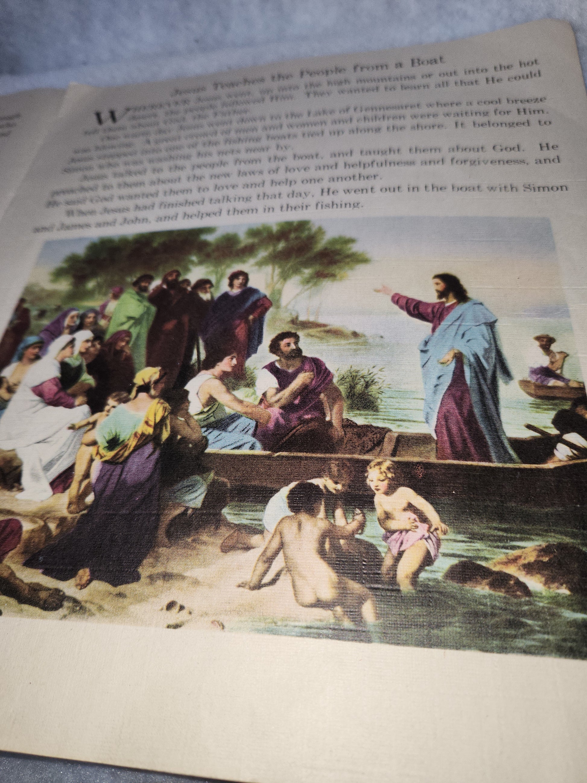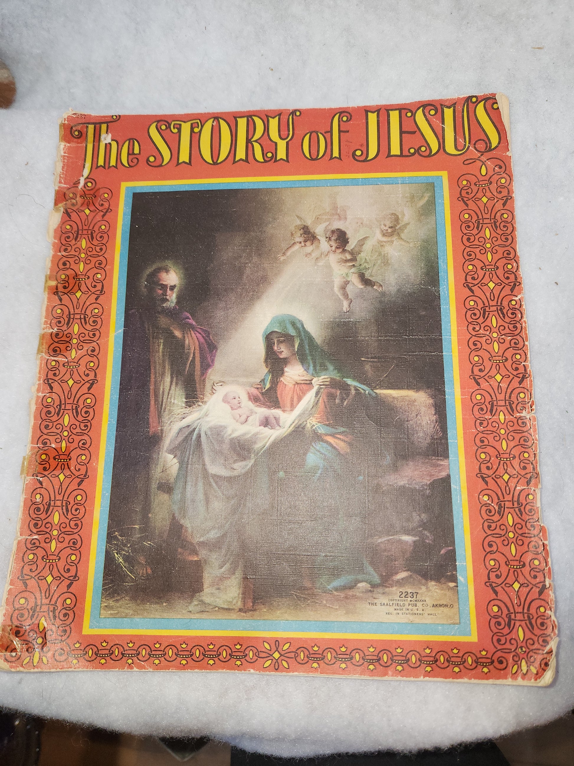 Vintage "The Story of Jesus" 2237 1939 Copyright Saalfield Publishing Co. USA Linen Large 12.5"