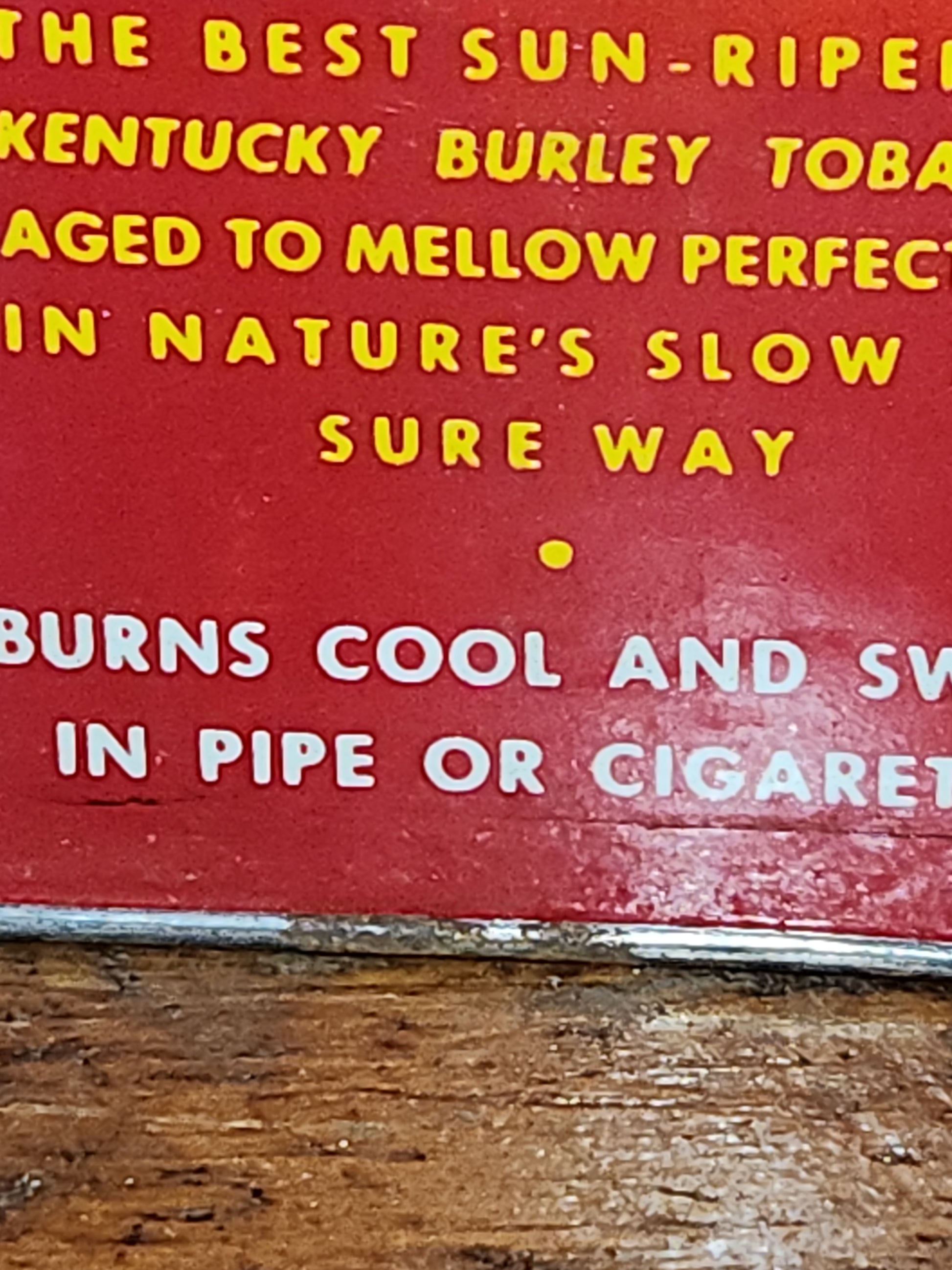 Vintage Tobacco Velvet pipe and cigarette 1 1/2 oz Kentucky tin119