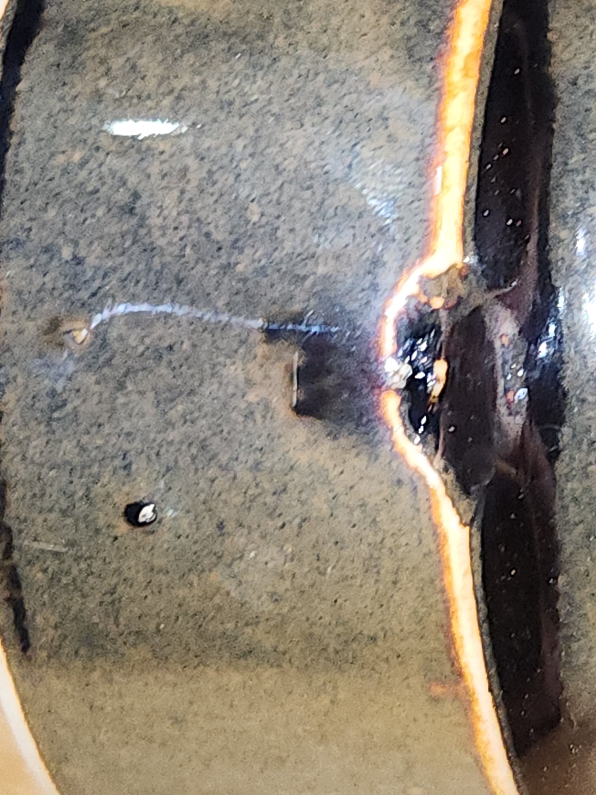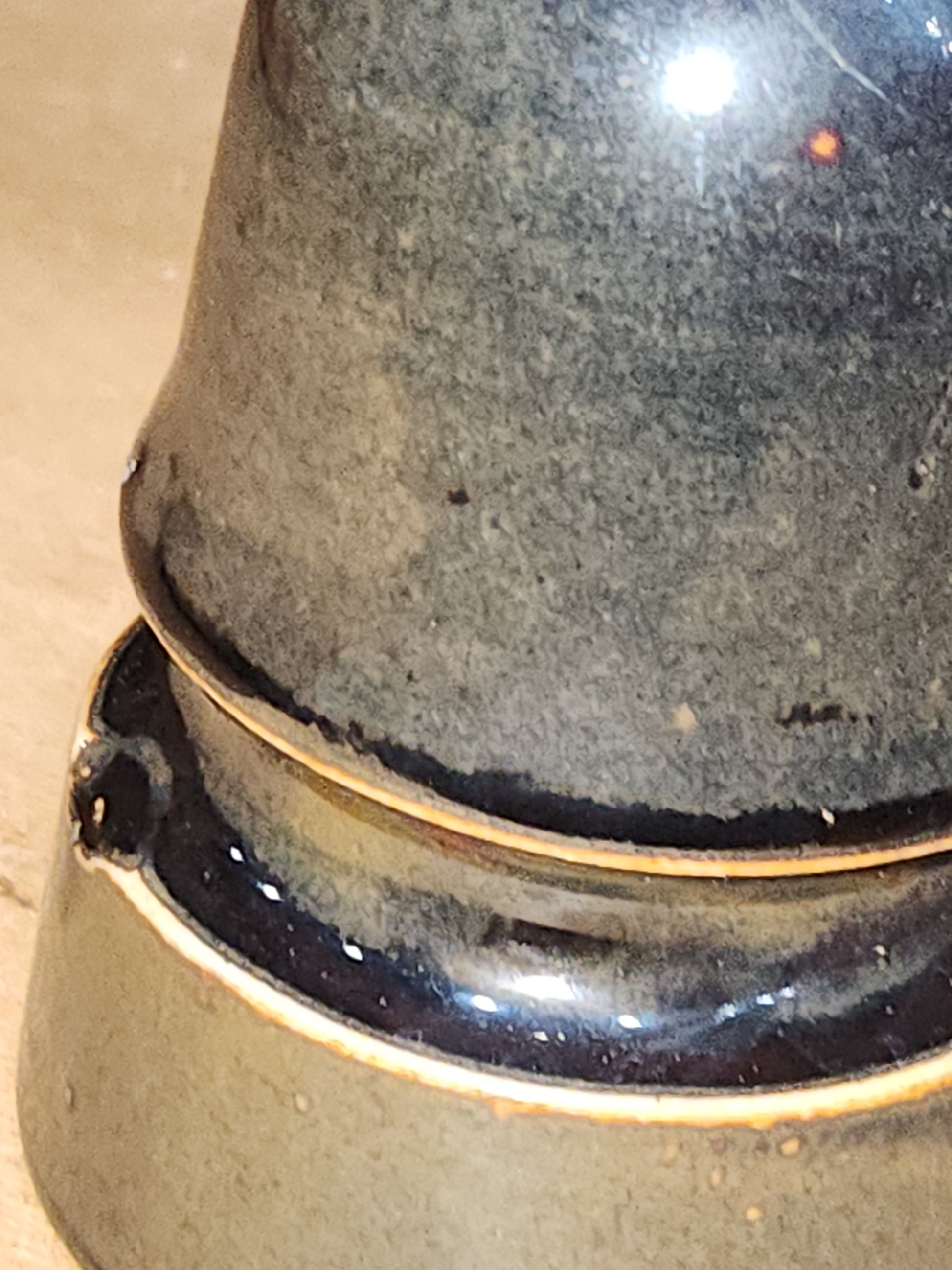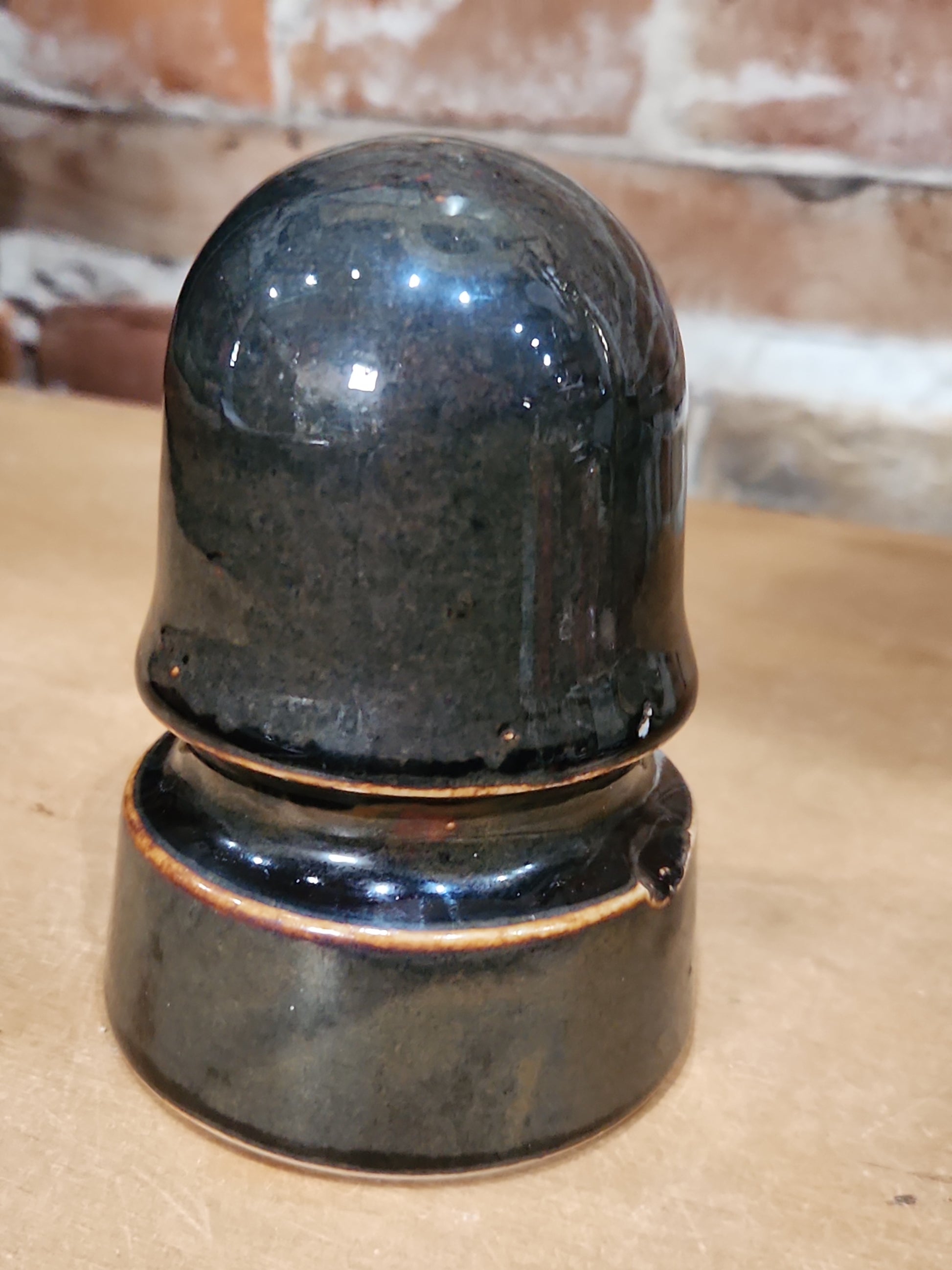This insulator has no makers mark. It has an interesting Glaze color. It is 4" tall 2 3/4" diameter at the bottom. It is in good condition, I don't see any chips, cracks, hiwever these is a chip that was glazed so there during production. There are some spots that were not glazed and it has one bump that was glazed. There is some staining on the unglazed parts on the bottom. Please see photos as they are part of the description