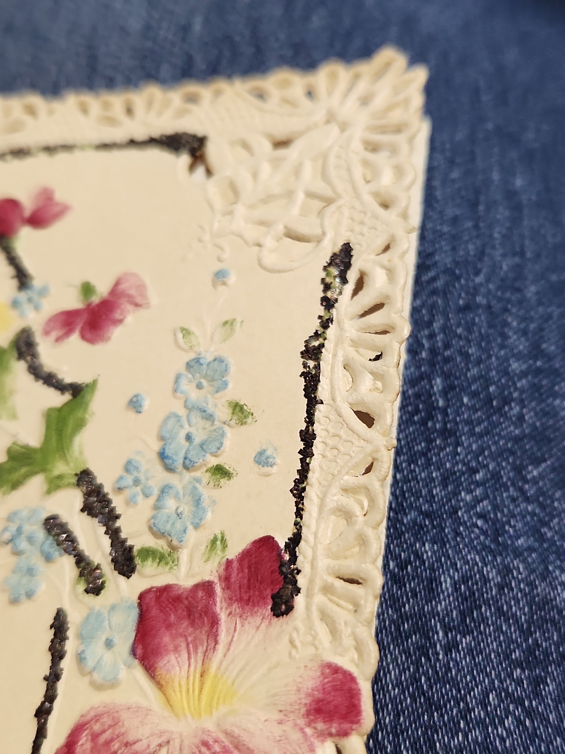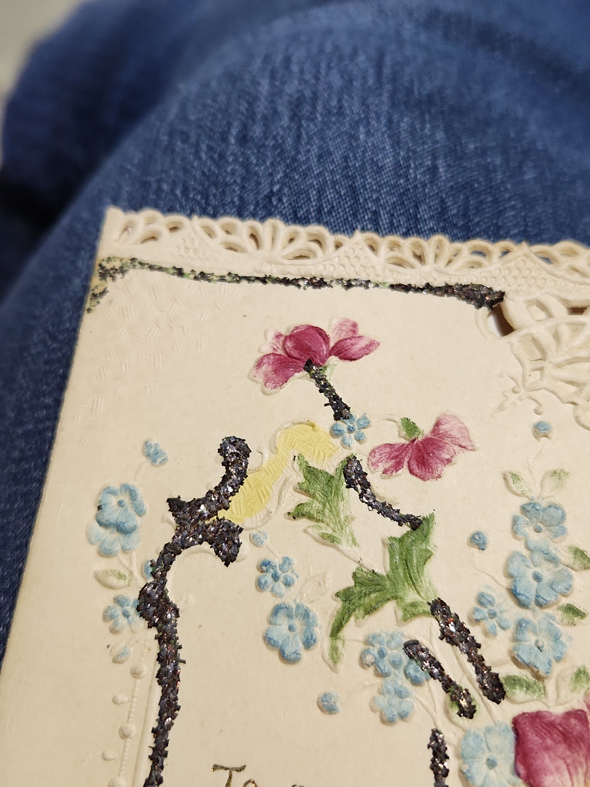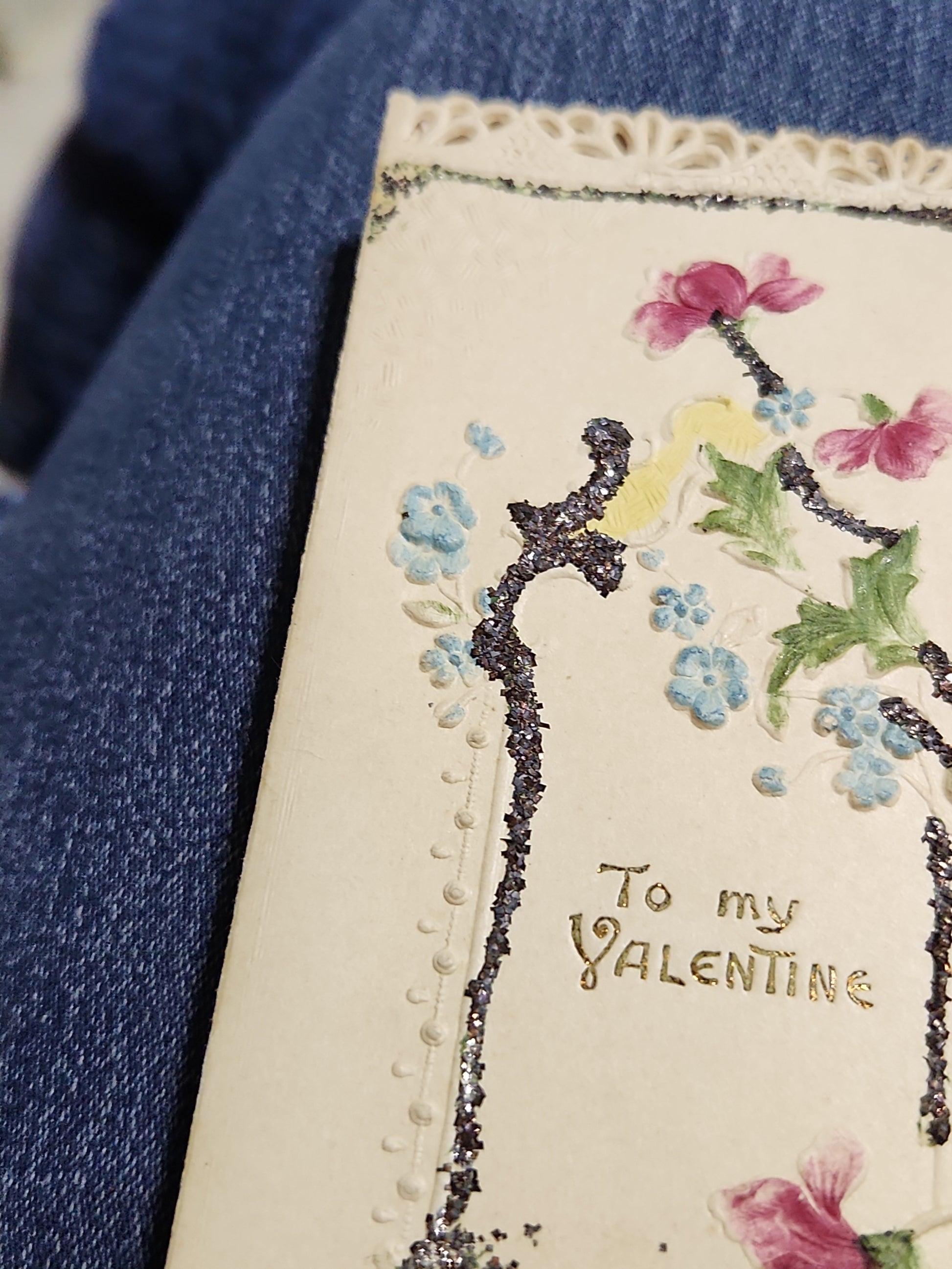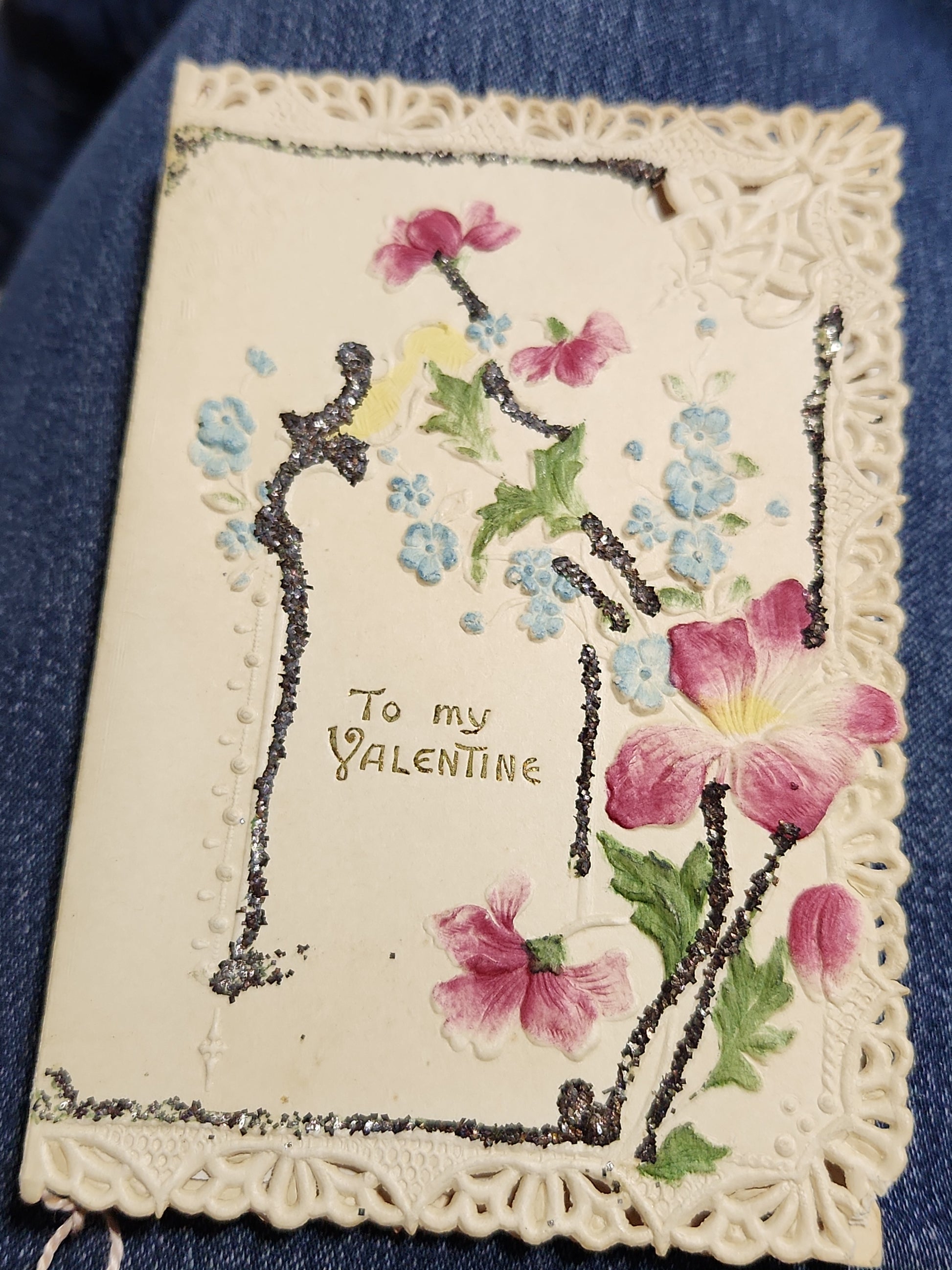 Antique Valentine Card Embossed, Mica, Flowers, To my Valentine