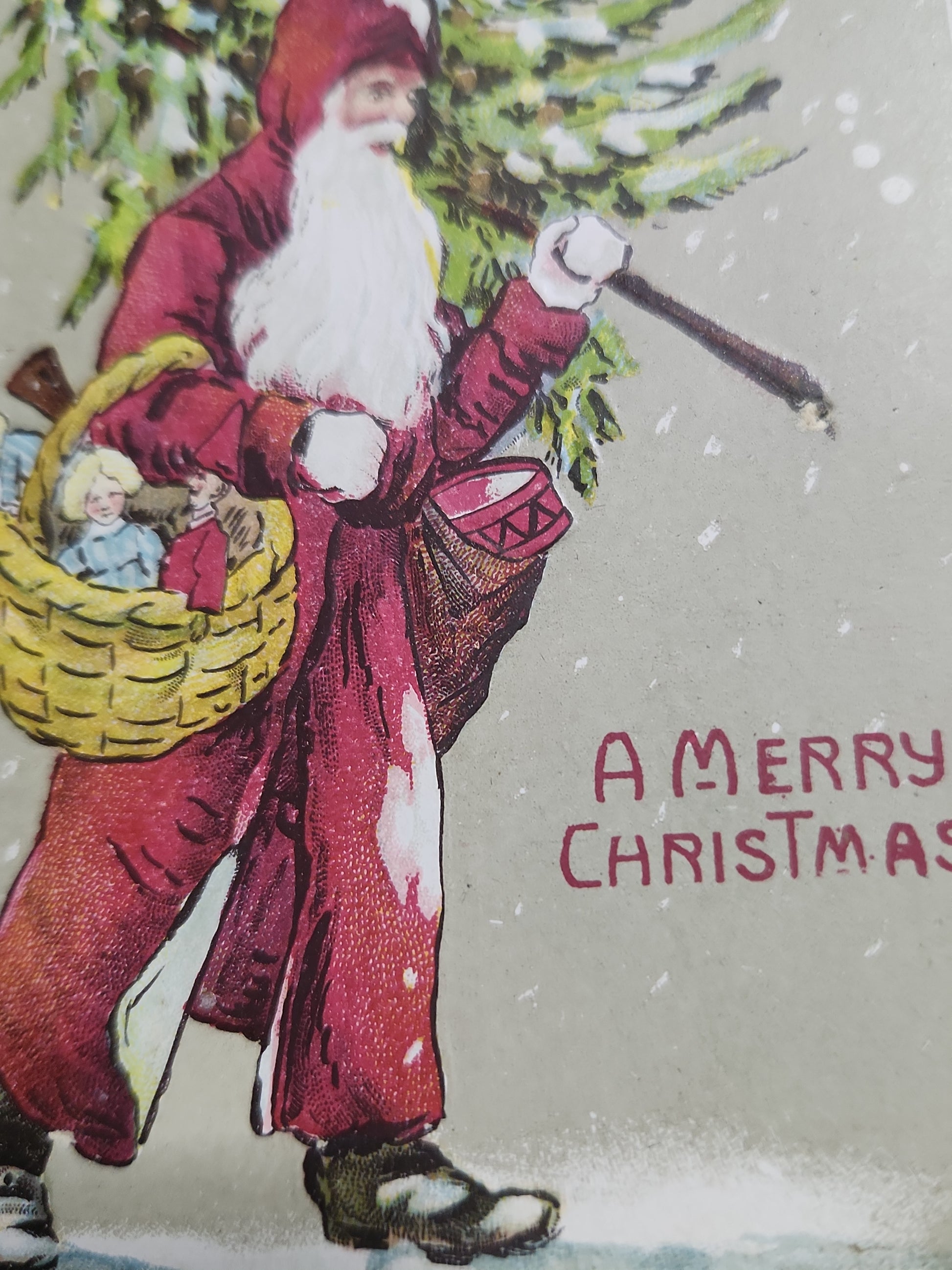 Antique Vintage Postcard A Merry Christmas St. Nicholas Santa Embossed printed in Saxony c1910